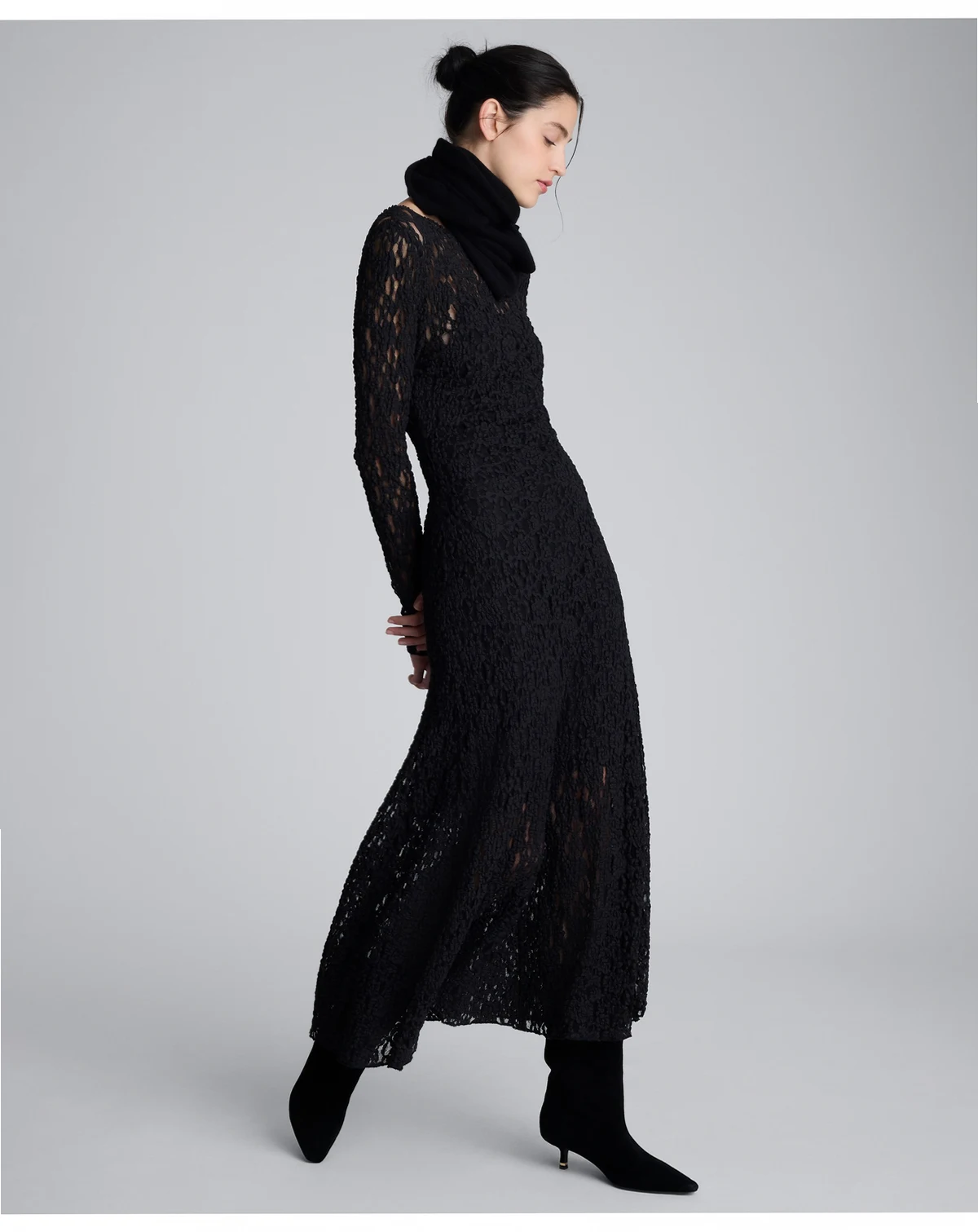 Graceful pull-on design gives this Kenneth Cole maxi dress effortless wear, with long sleeves ensuring comfort. Delicate lace detail adds sophistication, while a scoop back detail offers a refined finish for occasions.