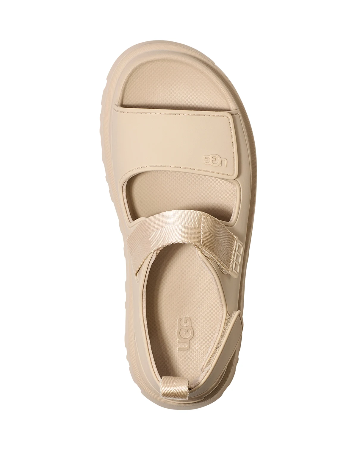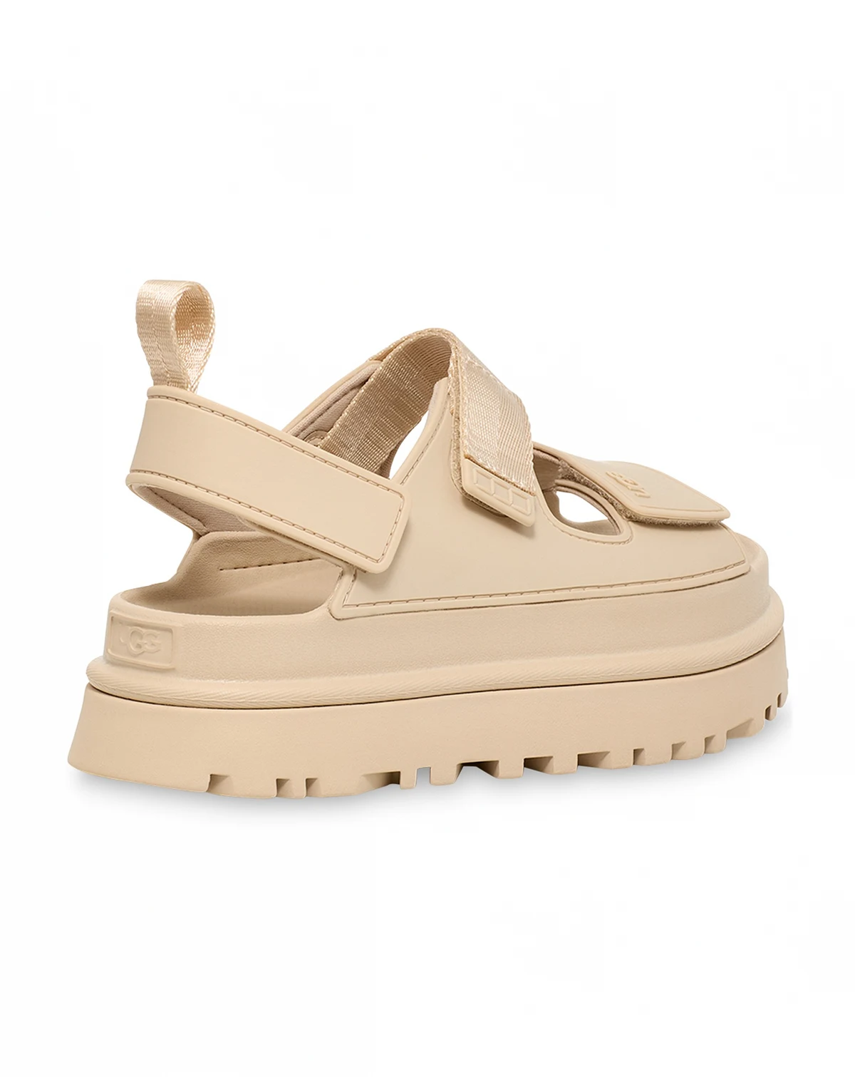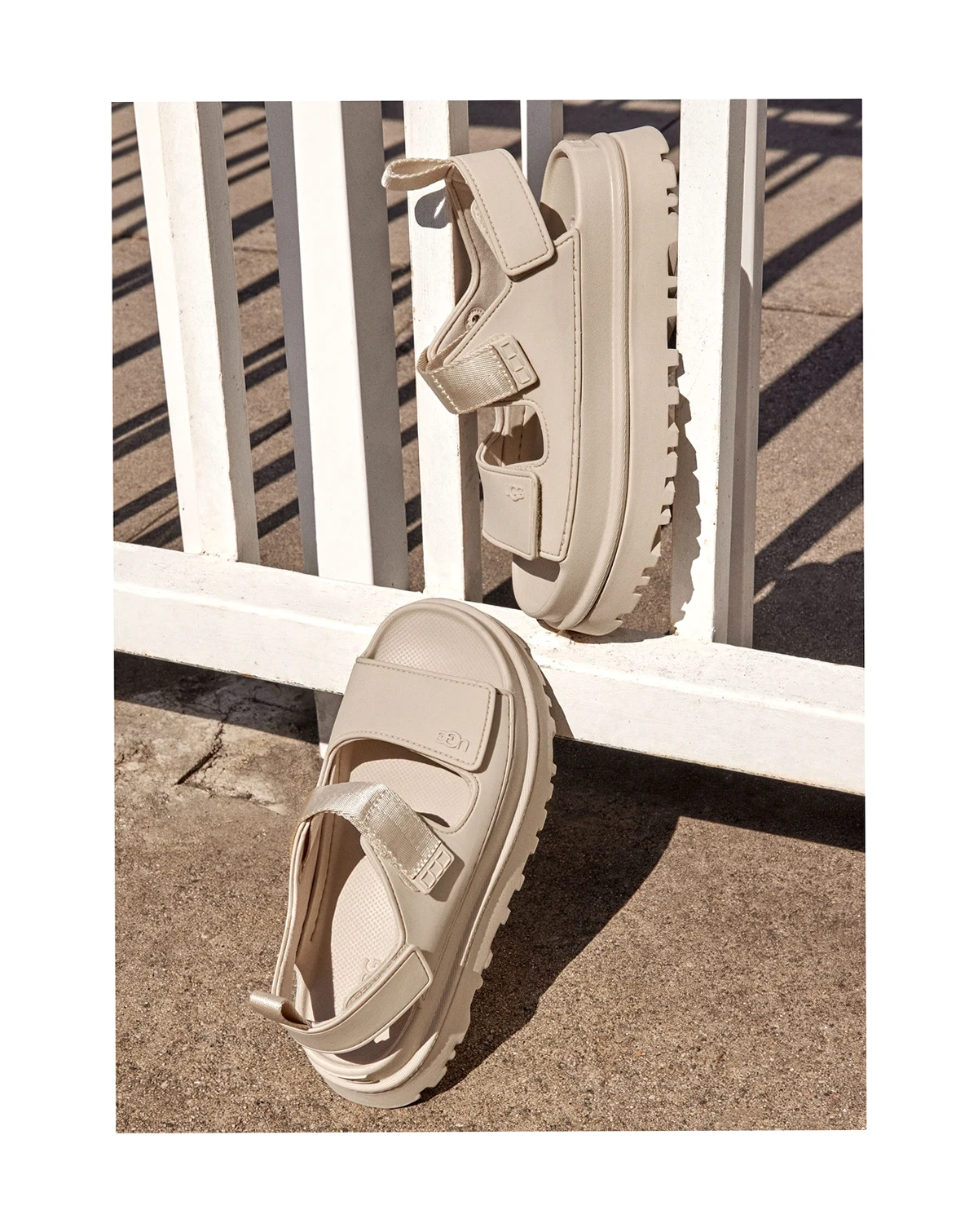 Bask in the GoldenGlow. It's our It-Girl Sandal. Slip right in and go with this super lightweight summer star. You bring the confidence. She'll bring the bold. Our GoldenGlow is a fully adjustable sandal. It's made from springy and supportive sugarcane EVA that's ready to wear through rain and shine. Stacked on a platform with a lug sole and complete with a grippy footbed, this pair looks as dynamic as it'll make you feel.