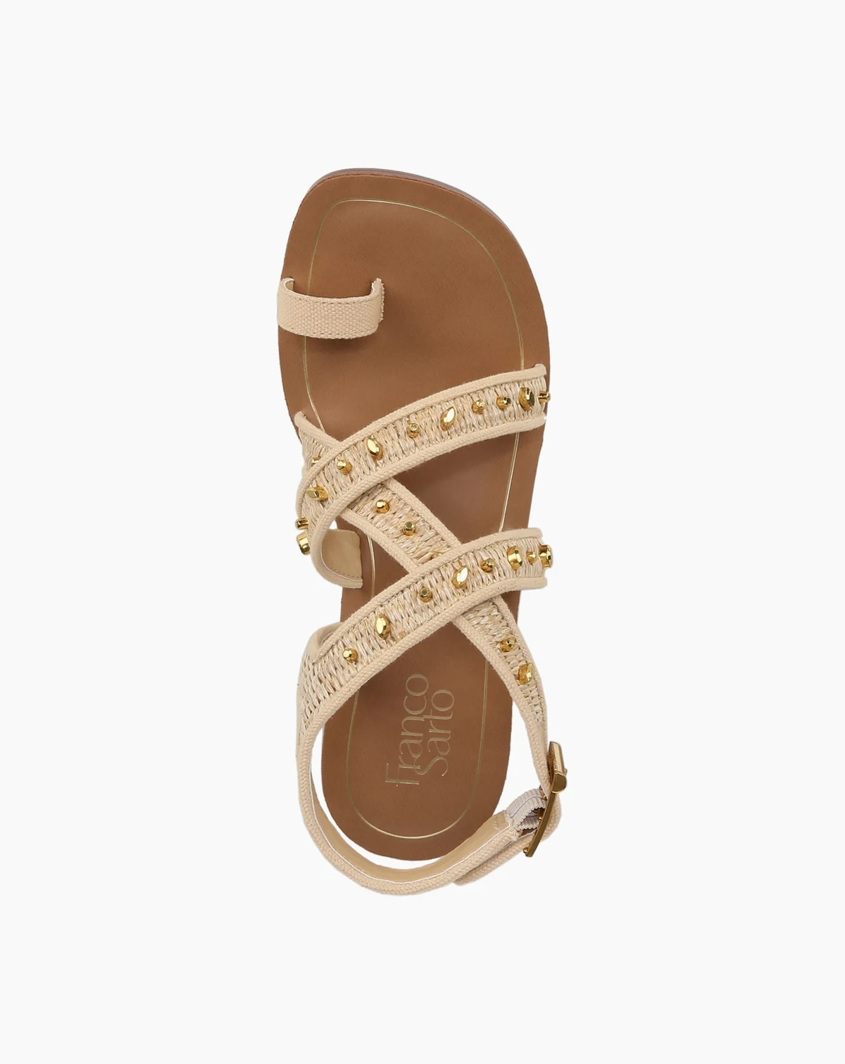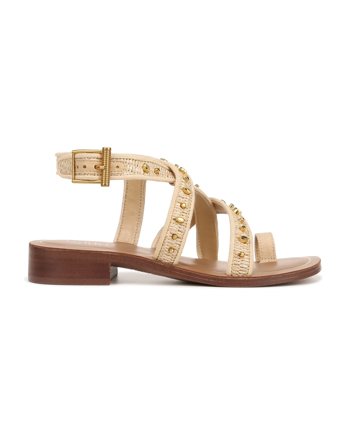 An eye-catching strappy silhouette, artful accents, and haute hardware detailing create these inspired women's sandals.