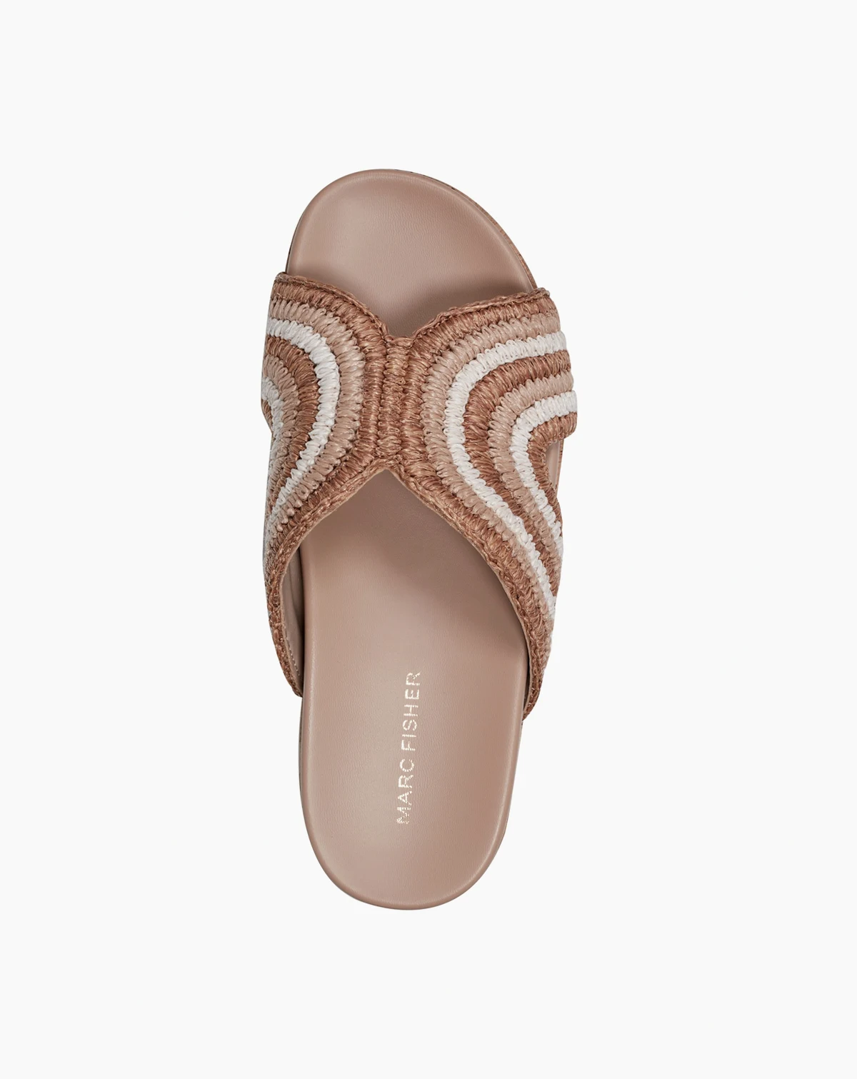 Complete your look in the Marc Fisher Erim flatform sandals. Featuring a slip-on silhouette, woven detailing and a round toe. The Erim is sure to impress designed for the modern woman, Marc Fisher Footwear provides statement shoes for every occasion.