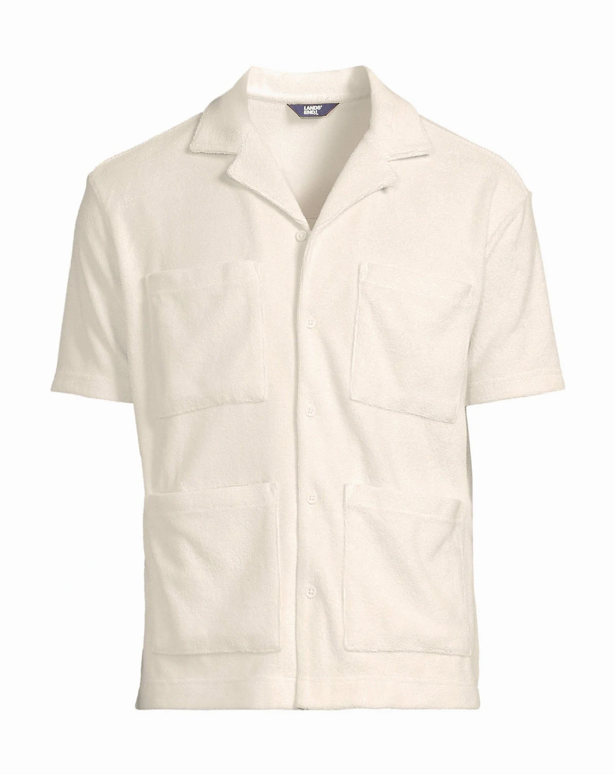 This isn't your average button-up. Crafted from super-soft, textured terry, it brings a casual yet elevated feel to your warm-weather wardrobe. Thoughtfully designed with durable, reinforced seams to hold up in the wash and a total of four pockets (including a hidden zippered pocket at the right hip!) to stash your valuables, it s as functional as it is stylish. Pair with shorts, chinos or even swim trunks for an easy, low-stress outfit..