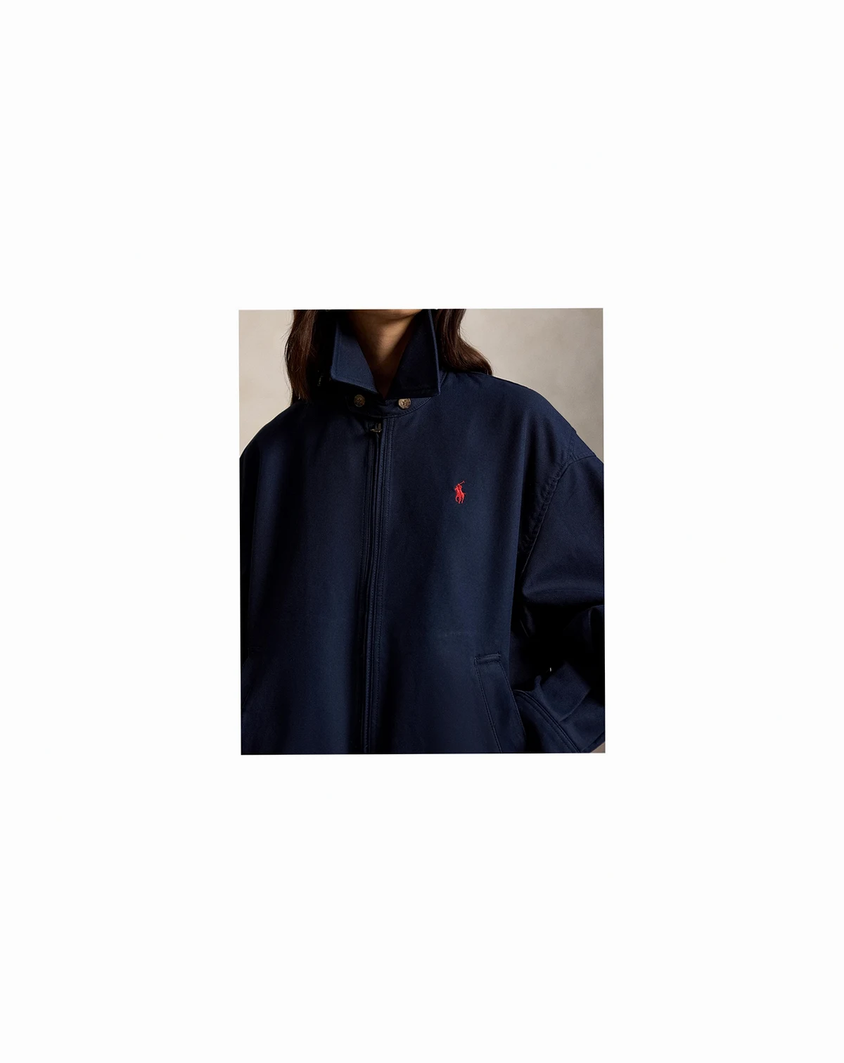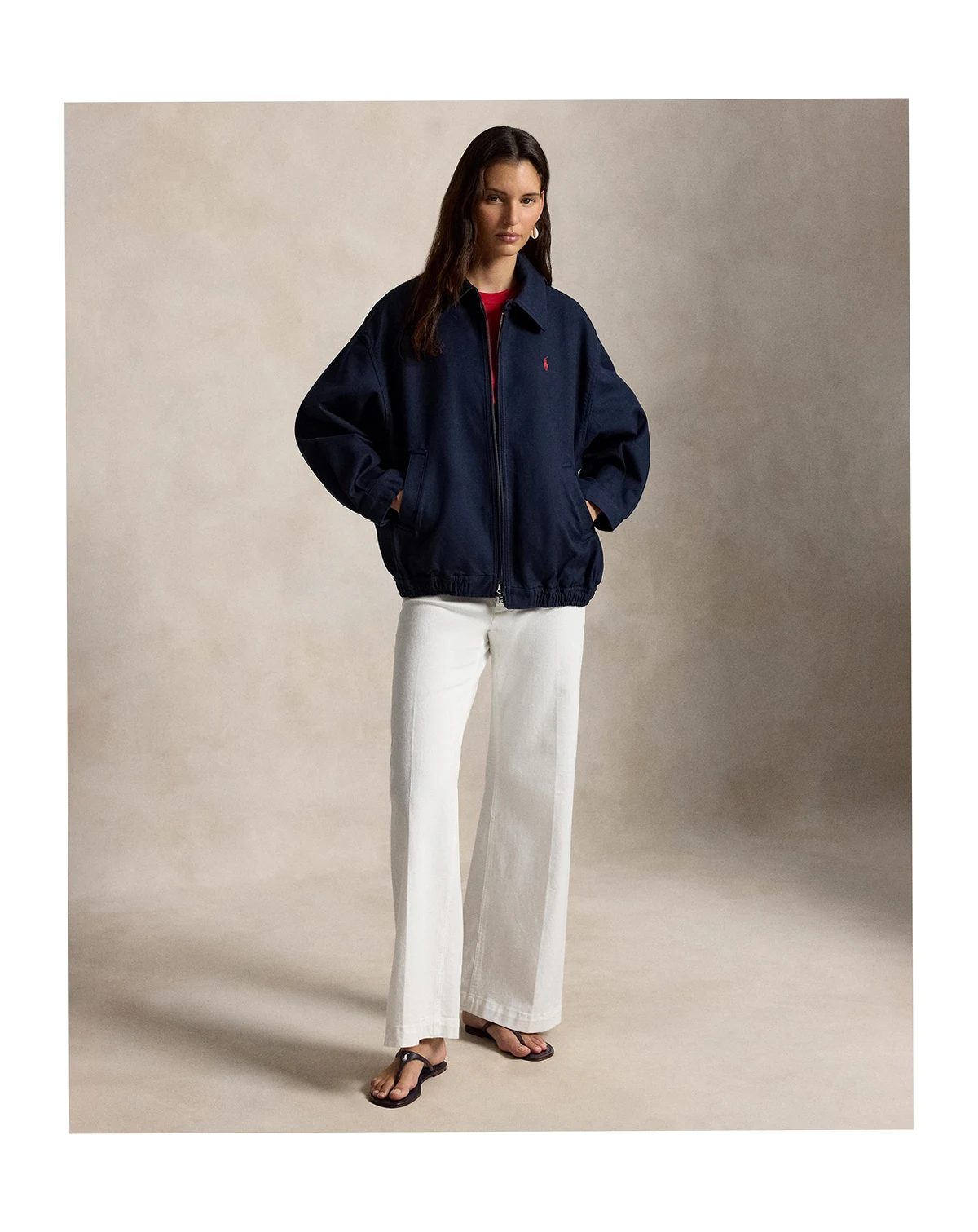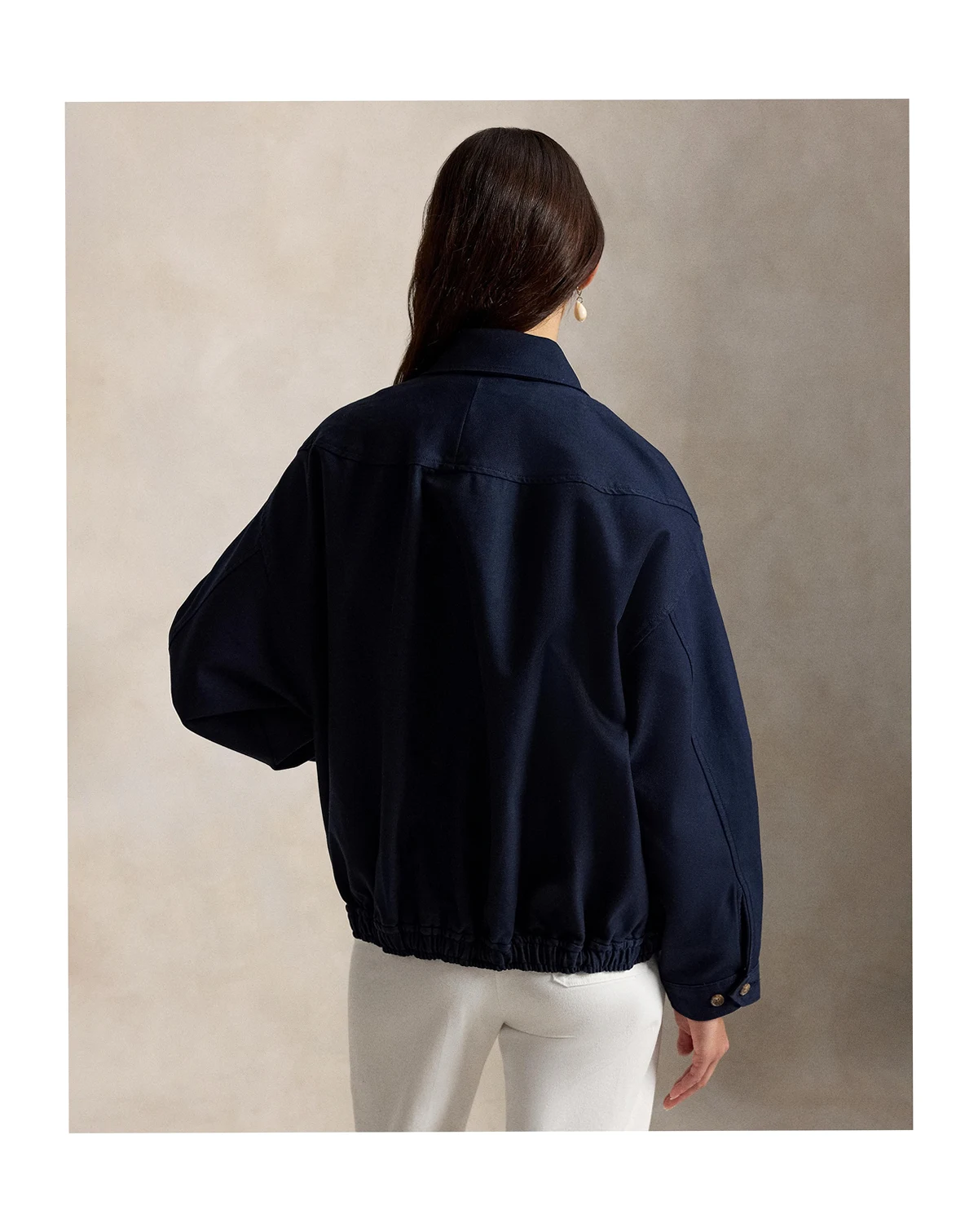 Merging casual style with refined details, this Polo Ralph Lauren bomber jacket features long sleeves with adjustable buttoned barrel cuffs and a spread collar with a throat tab for versatile wear. A dropped-shoulder pattern and elasticized hem provide ease of movement and a relaxed fit.