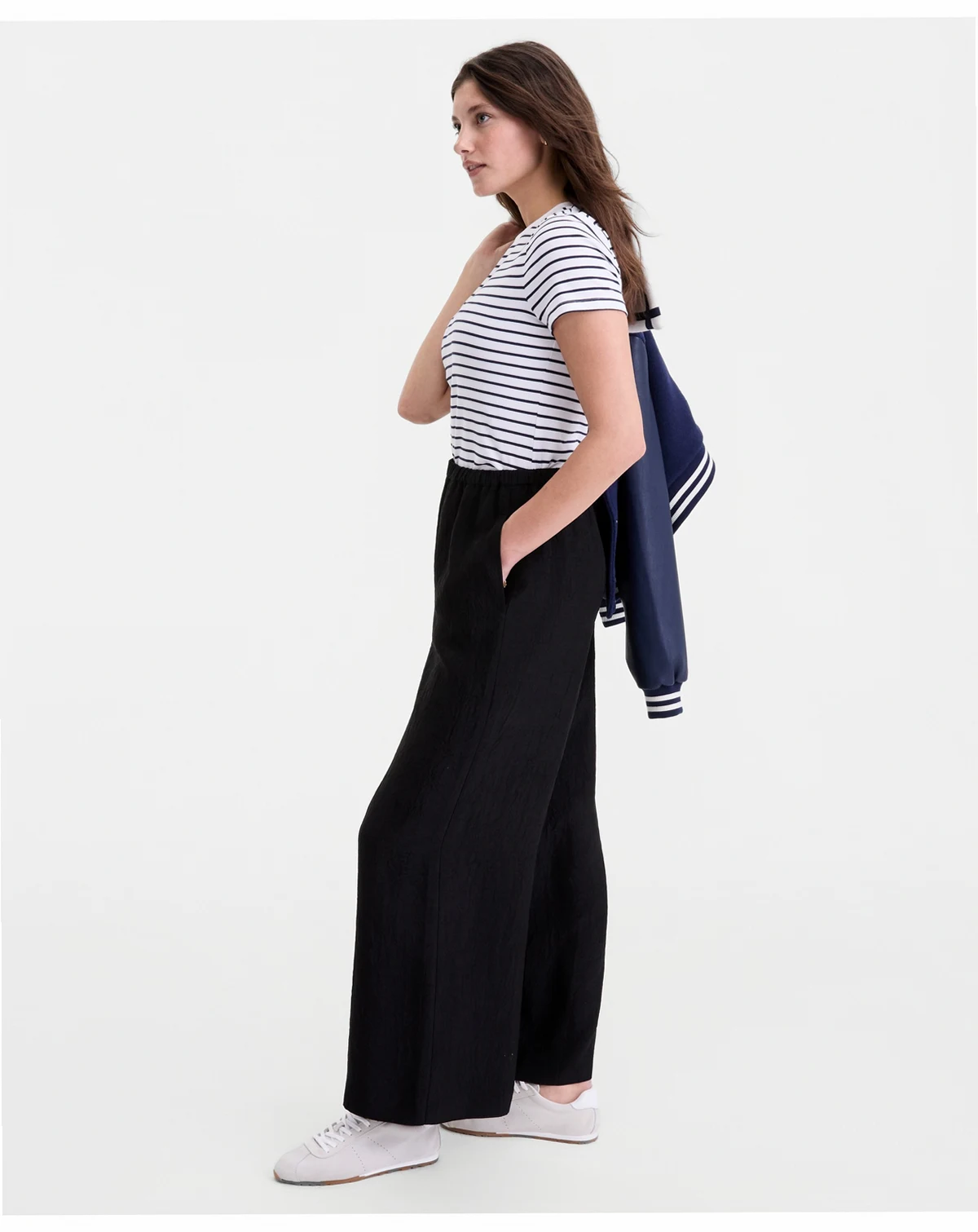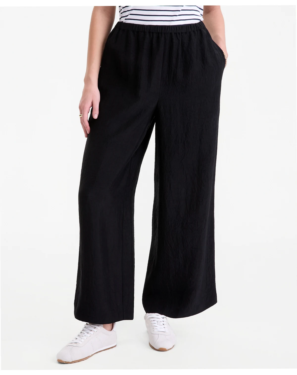 Textural crinkled satin elevates our effortlessly stylish pull-on, wide-leg pants. Wear them with anything from a fluid blouse to a fitted tank. ABOUT THE BRAND: On 34th was designed for and with women like you. Made for your body, your style, and your truth. As your wardrobe's BFF, these mix-and-match pieces work with everything in your closet.