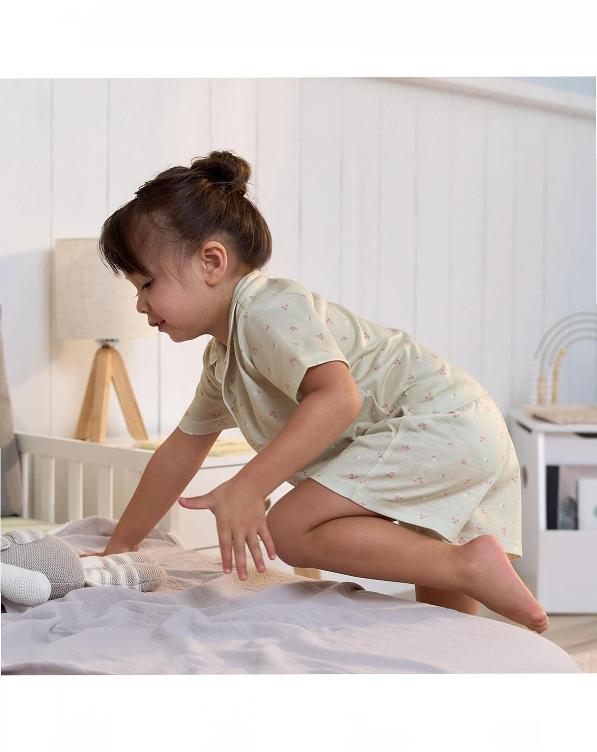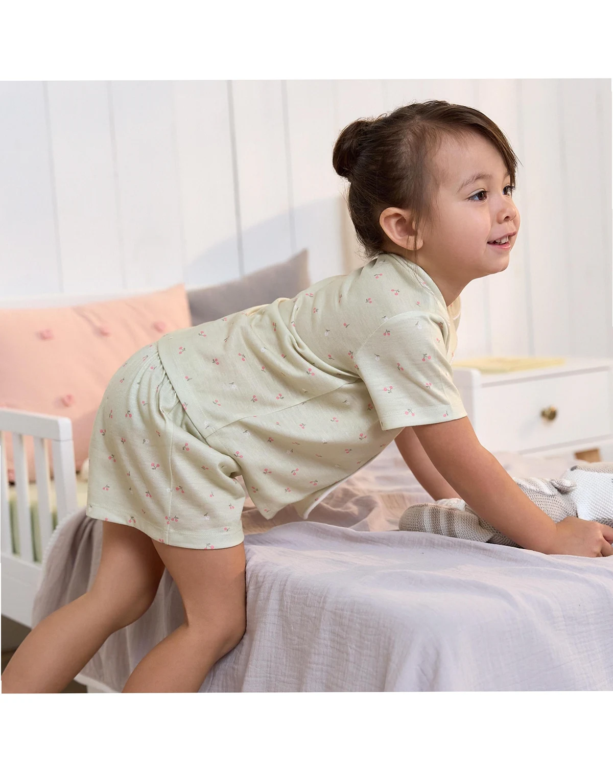 Our baby and toddler girl 2-piece pajama set is perfect for little ones who love a cute look and comfy feel! Made from soft and stretchy material, these pajamas ensure a restful night. The comfort-stretch waistband on the shorts offers a snug fit without pinching, while the soft, rounded collar provides extra comfort. Ideal for keeping cool on warmer nights, this pajama set is the perfect way to slip off to sweet dreams. Our essentials have been independently certified with STANDARD 100 by OEKO-TEX so that you don t have to worry about harmful substances in your baby s wardrobe. Includes one short sleeve top with matching shorts. Flame resistant for child safety.