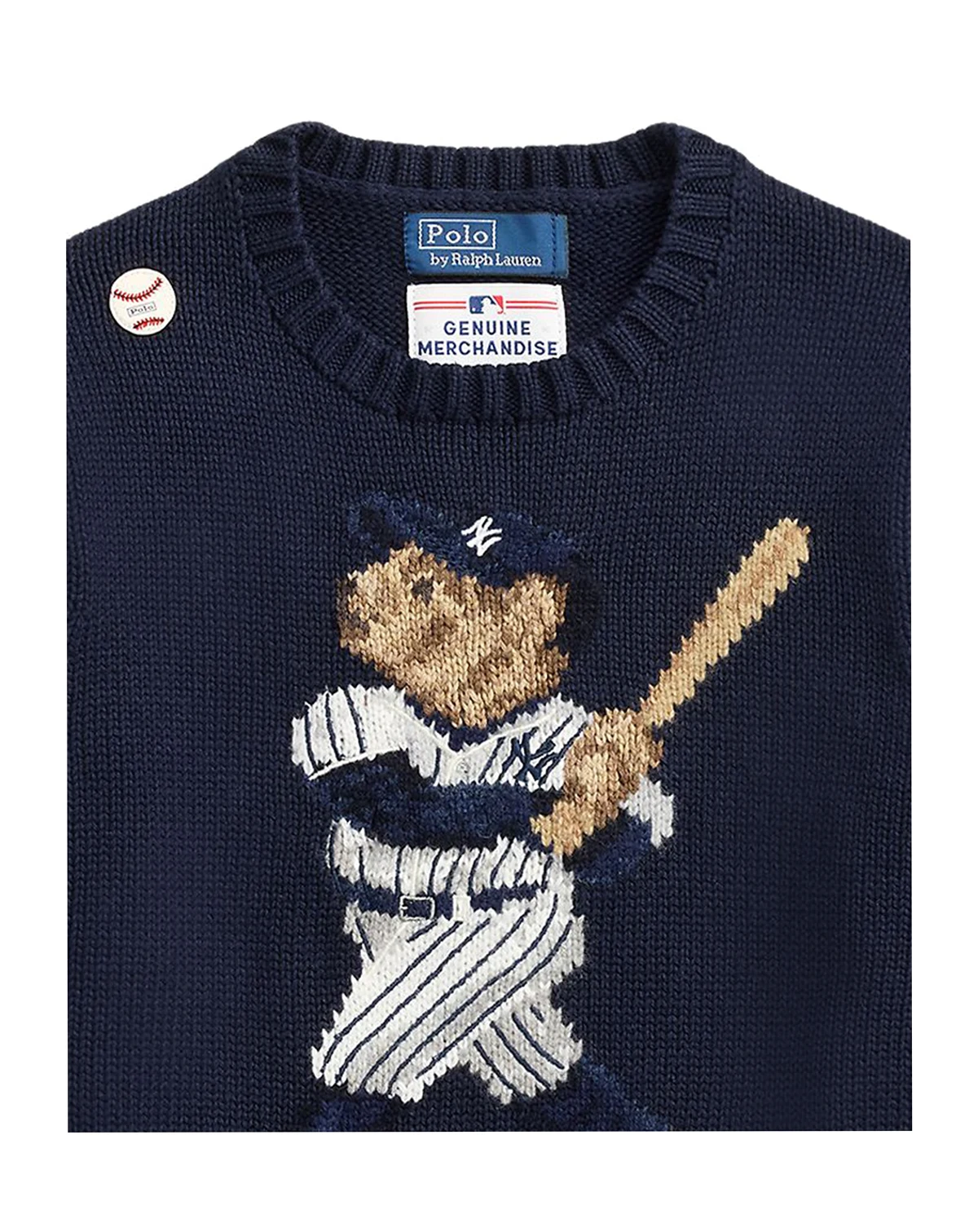 Bring playful style to his wardrobe with this Polo Ralph Lauren sweater, featuring long sleeves and a rib-knit hem for a classic, cozy look. It boasts New York Yankees™ logo patch for a subtle, signature touch.