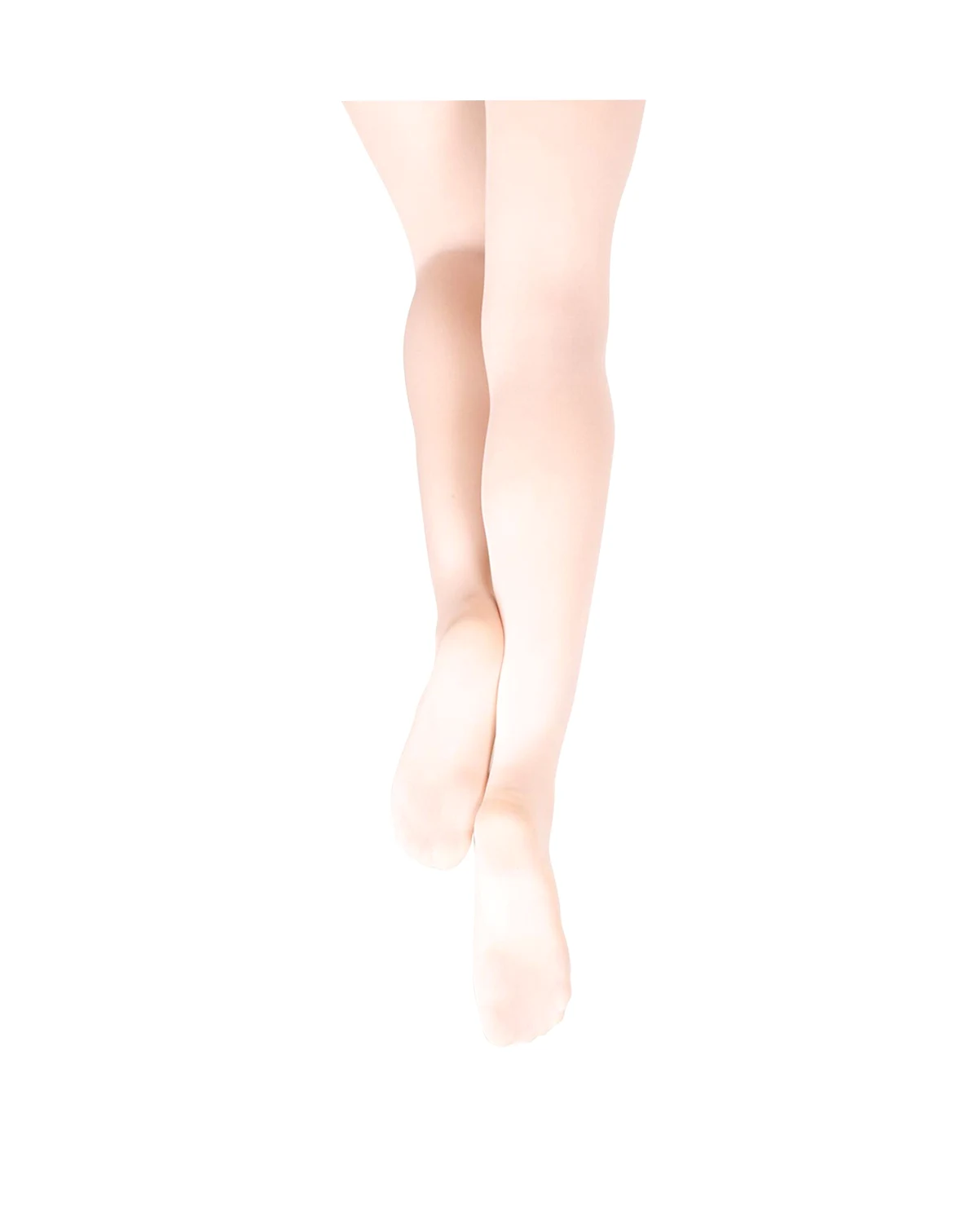 Classic Footed Tight–Child Find superb comfort and dependable performance in the Classic Footed Tight. The matte, semi-opaque fabric is soft and stretchy with a subtle texture ideal for long-lasting wear from studio to stage. Features a self-knit, non-elastic waistband for a comfortable, smooth finish. Dyed-to-match gusset for freedom of movement. Available in both adult and child sizes. Product Features: 88% Nylon, 12% SpandexFooted tightSelf-knit, elastic-free waistbandDyed to match gussetRecommended care: Hand wash cold with mild detergent and allow to air dry. Do not bleach.