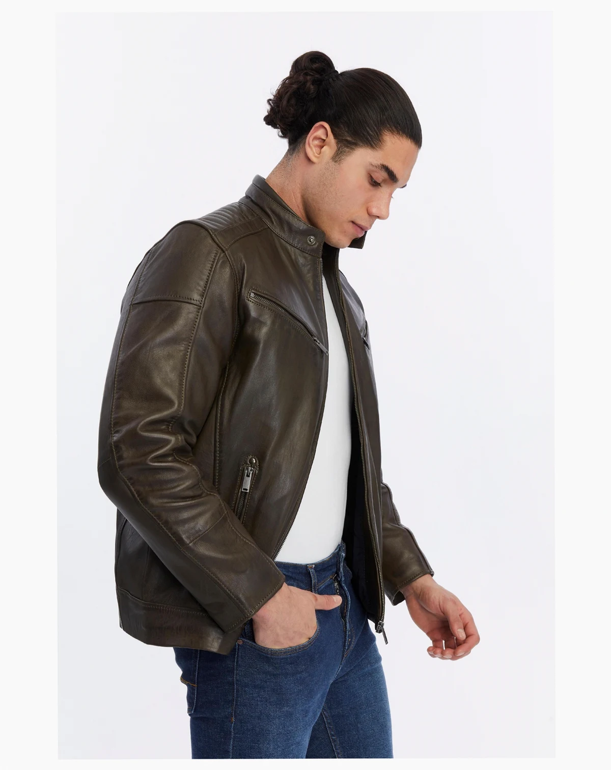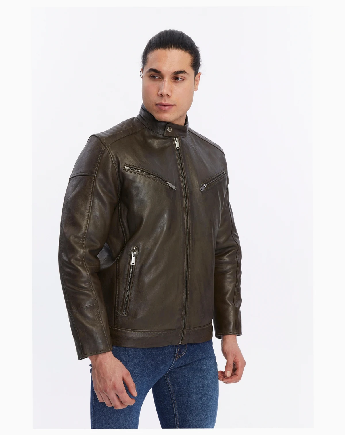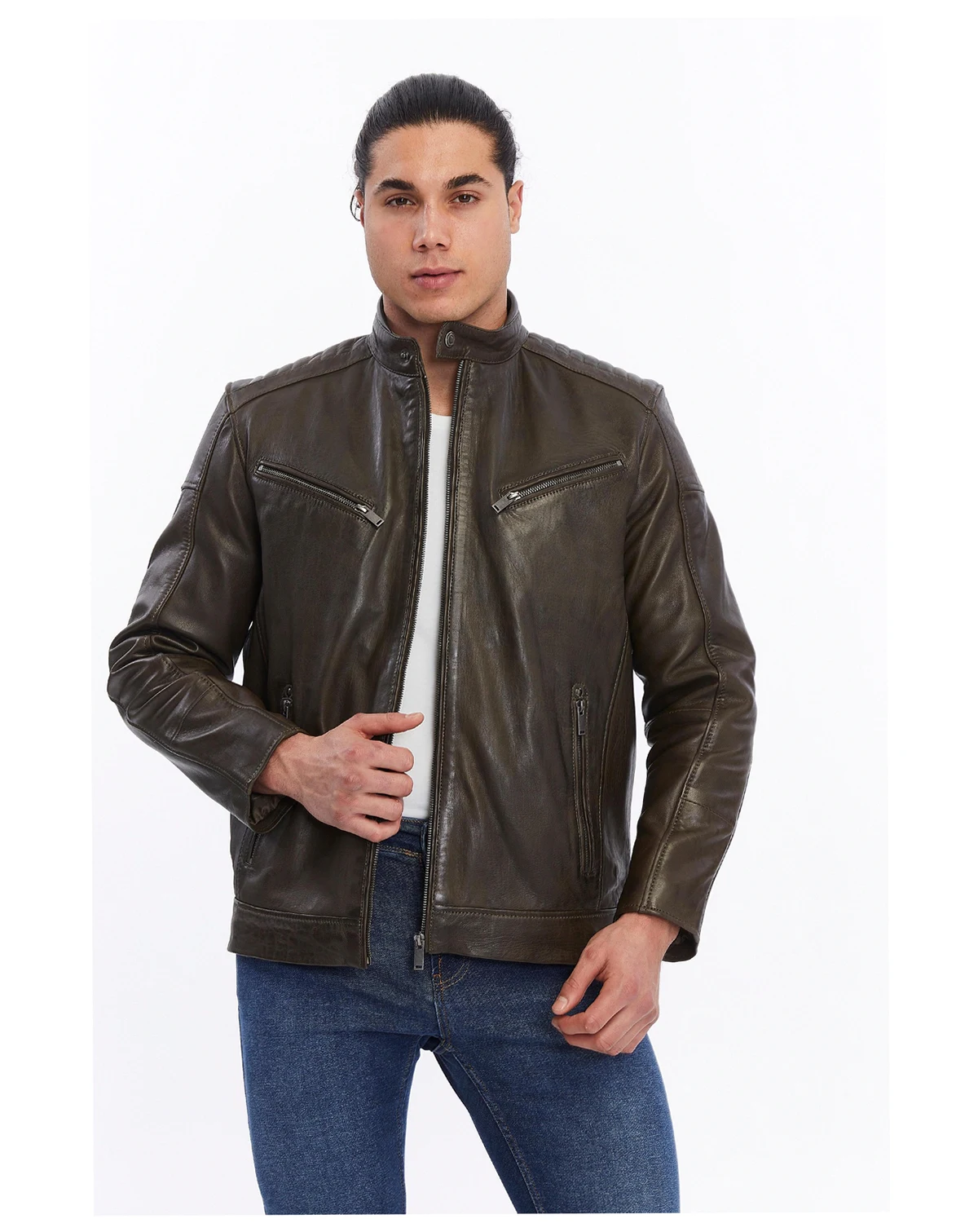 Elevate your look with this Furniq UK Men's Motorcycle Style Leather Jacket in brown. Expertly handcrafted from 100% British leather. Designed to balance rugged character with modern refinement, it features sharp detailing and a slim fit that moves effortlessly from casual wear to elevated occasions.