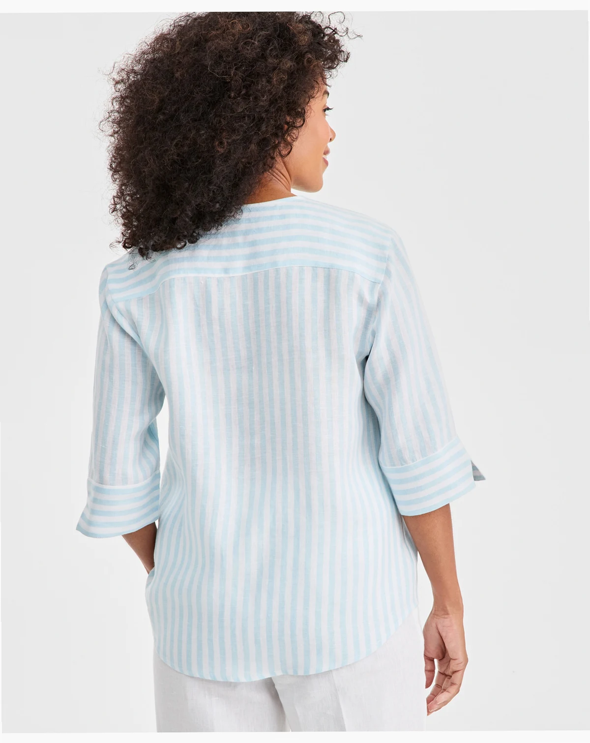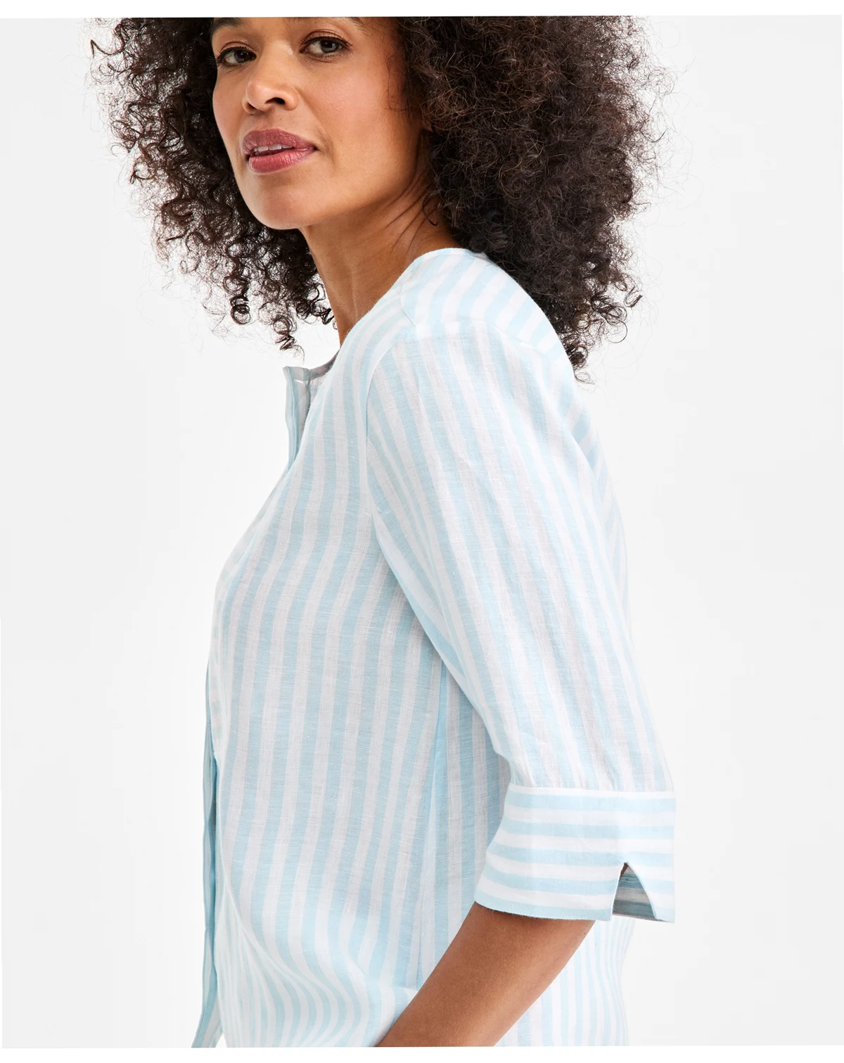 Women's 100% Linen Front-Bib 3/4-Sleeve Blouse, Macy's Exclusive