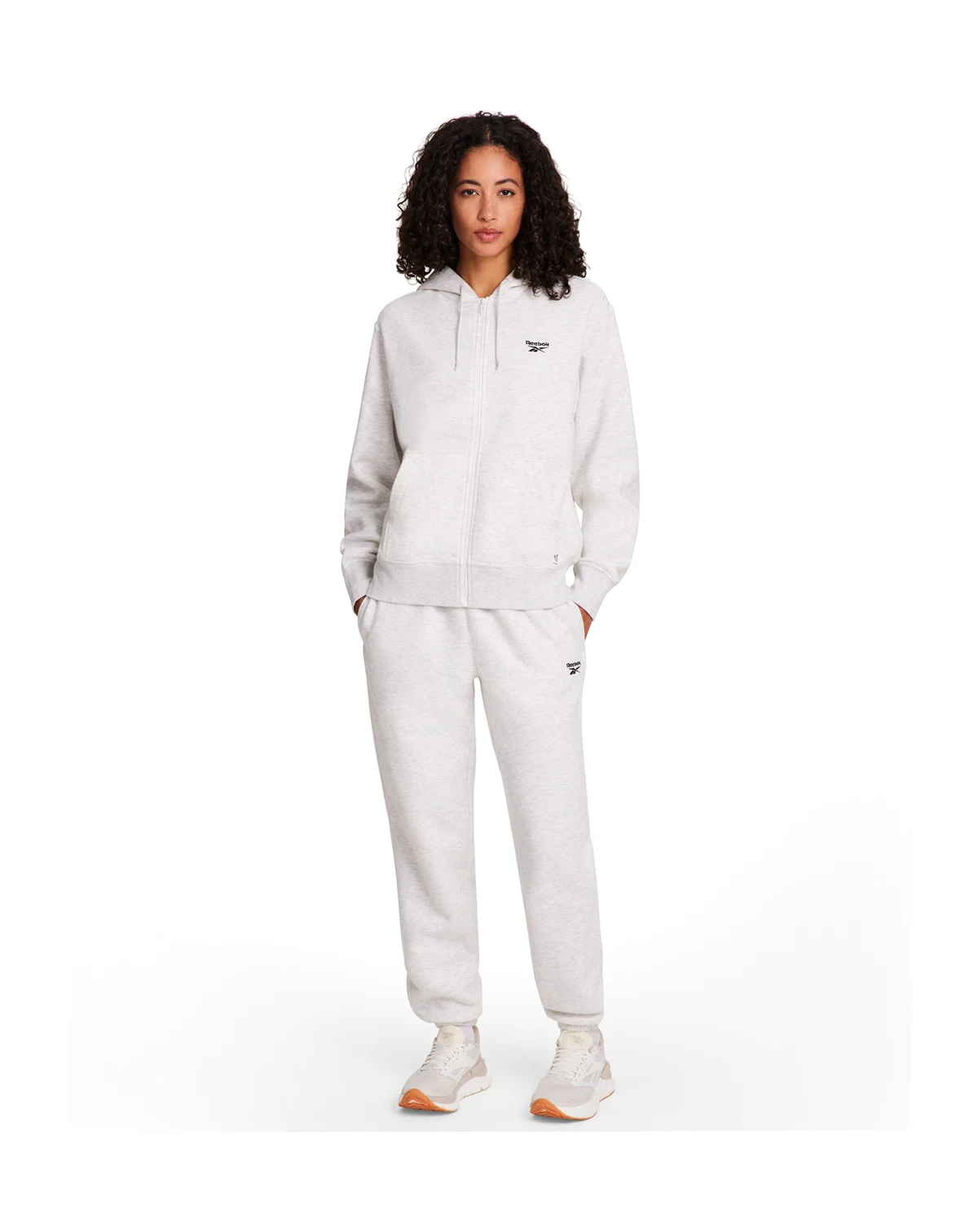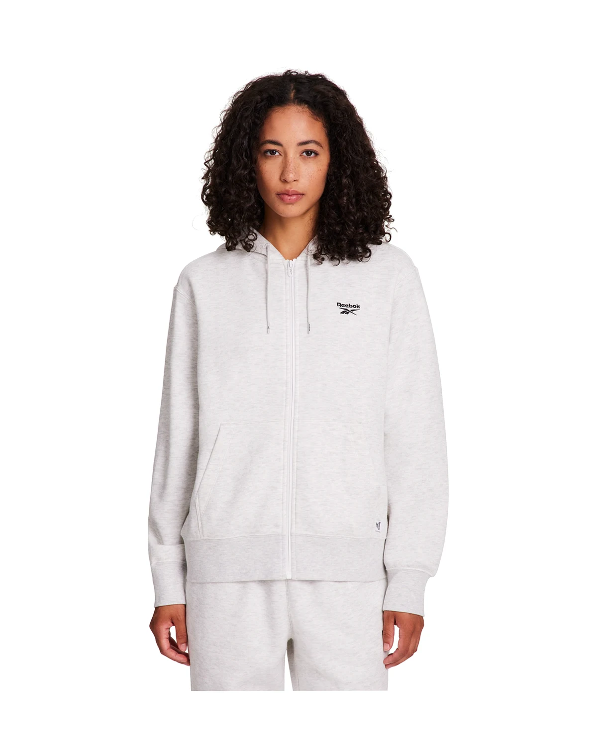 Elevate your everyday look with this Reebok zip-up sweatshirt. The soft hooded neck with adjustable drawcord shields you from the chill, while the kangaroo pocket adds both function and casual flair. Complete with the iconic embroidered stacked logo, it is designed for all-day comfort and easy layering.