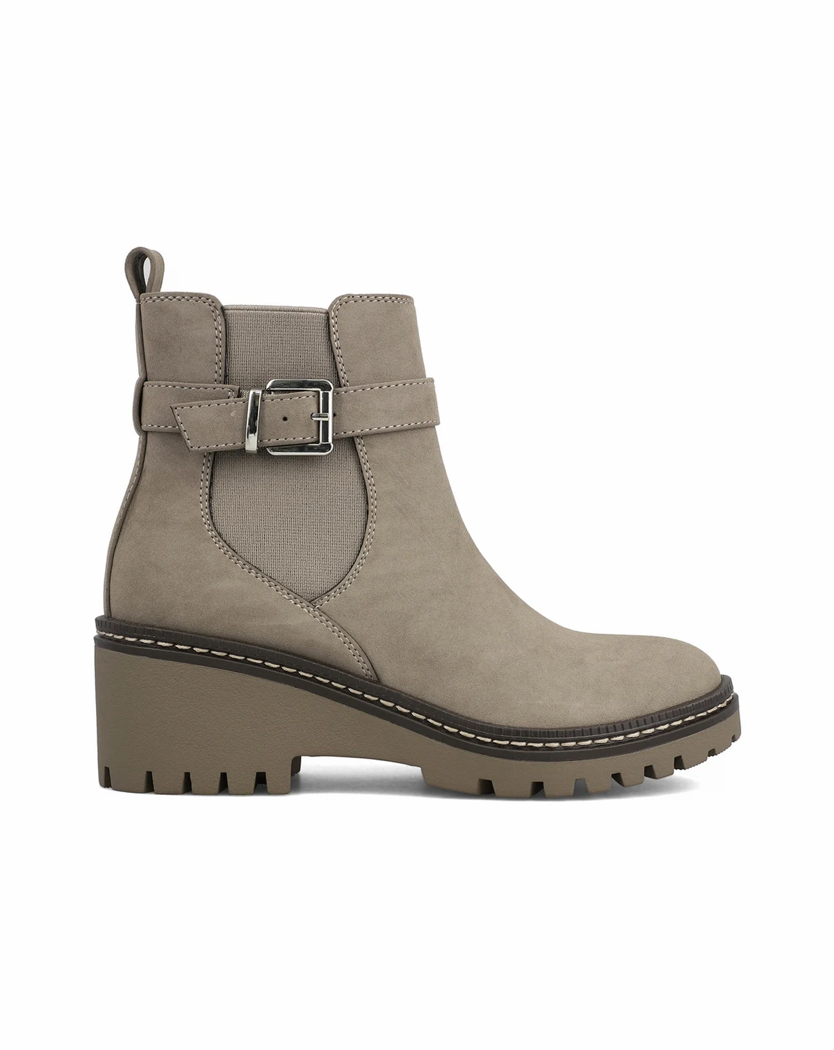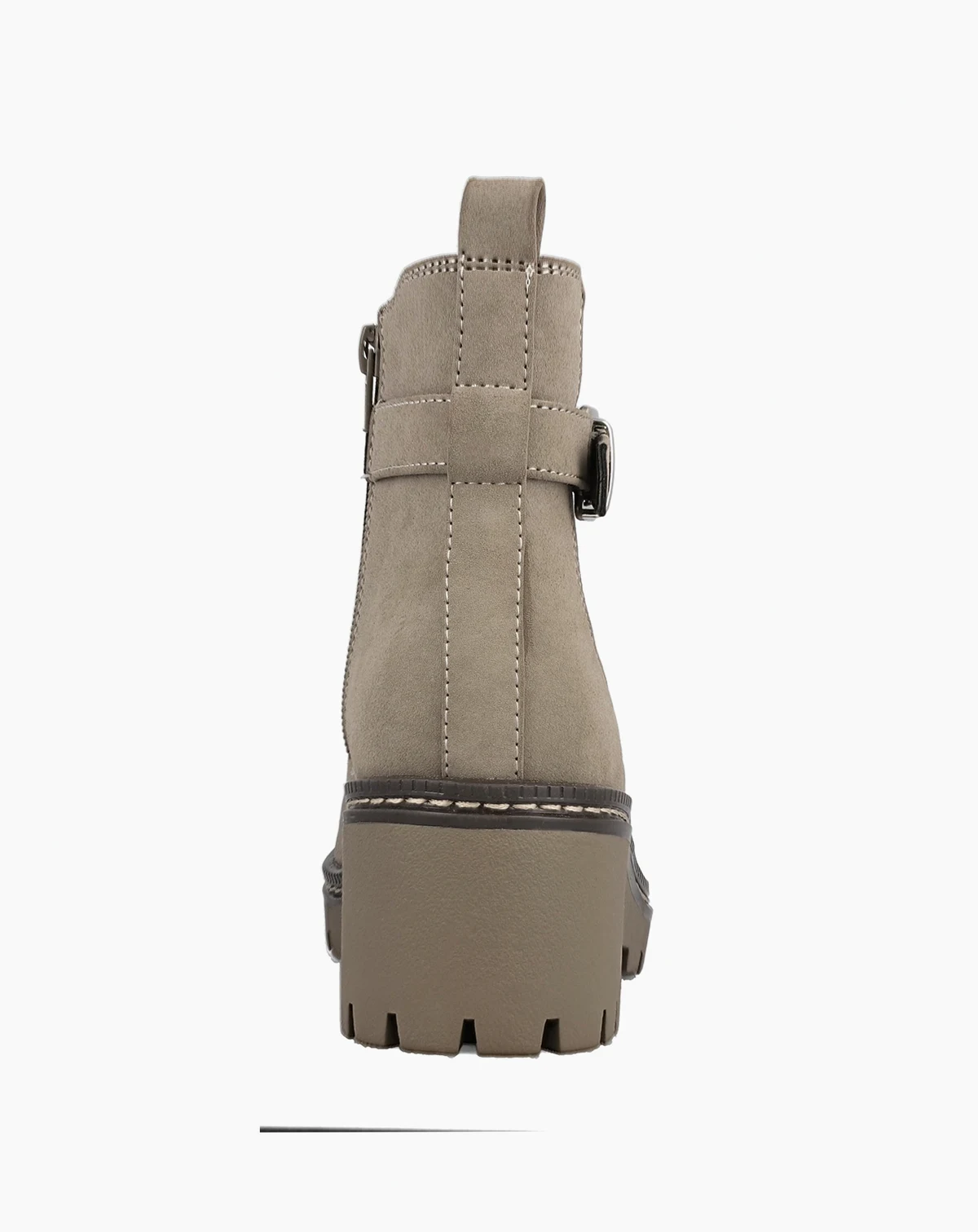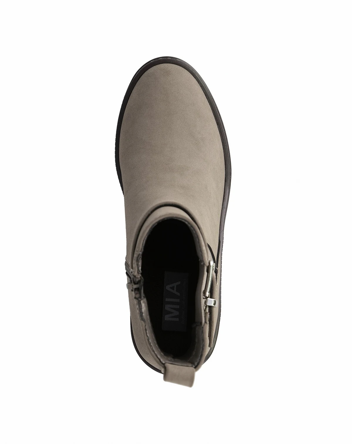 Meet the fall boot that does it all—chunky, chic, and effortlessly wearable. Crafted from soft, faux leather, this ankle boot features a polished silver buckle, a convenient zipper for easy on and off, and a sturdy heel. Inside, the MIA Signature Footbed™ delivers plush, all-day comfort. A true closet essential, Elis adds texture and polish to any autumn outfit.