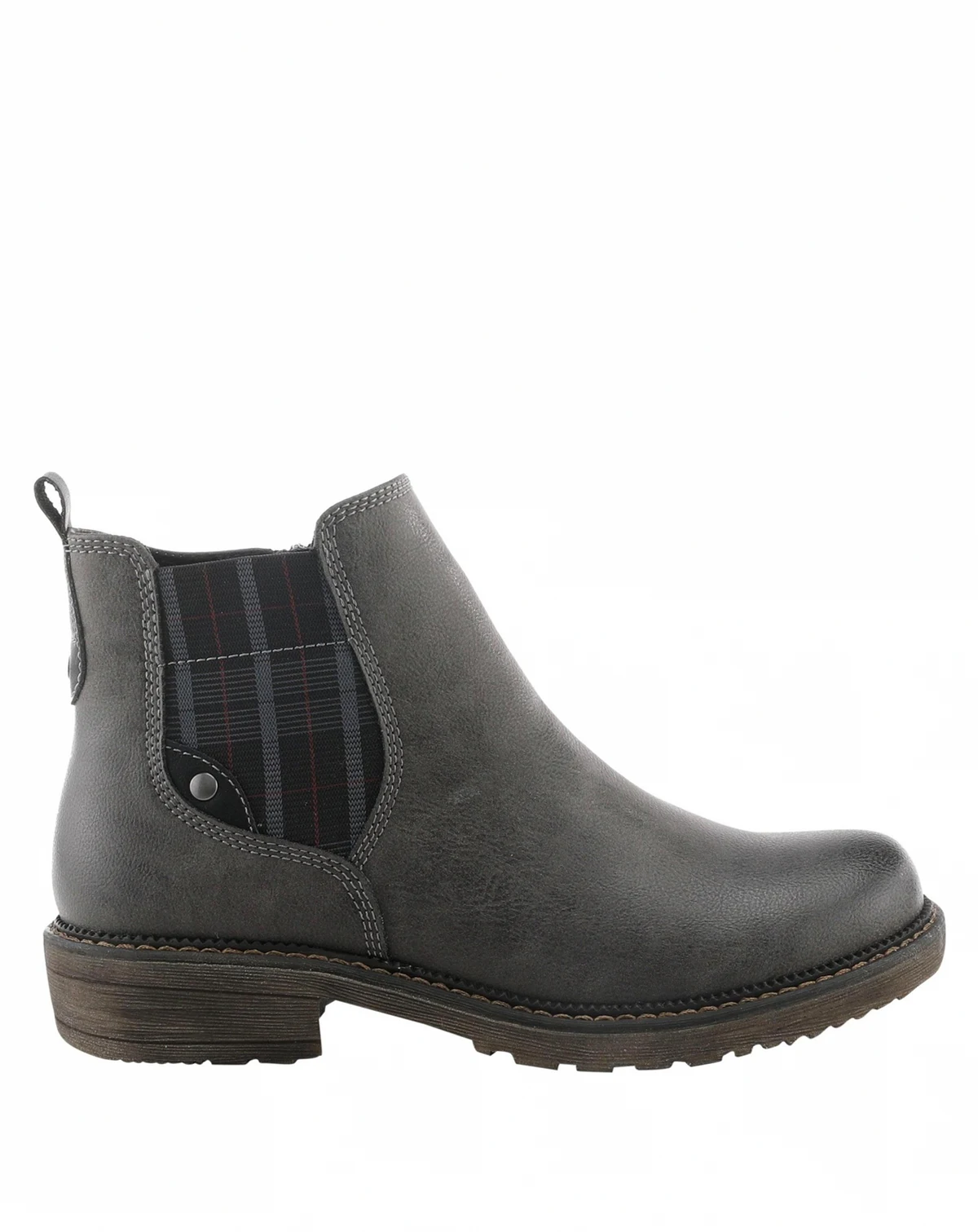 Slip into all-day comfort with this modern twist on the classic Chelsea boot. Featuring plaid stretch side panels, water-resistant materials, and a Relife shock-absorbing sole, this bootie delivers the perfect mix of style, flexibility, and joint-friendly support.