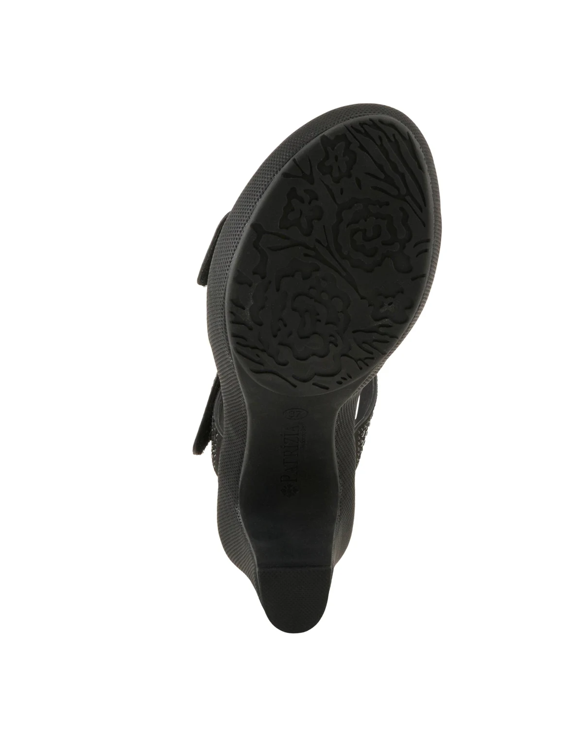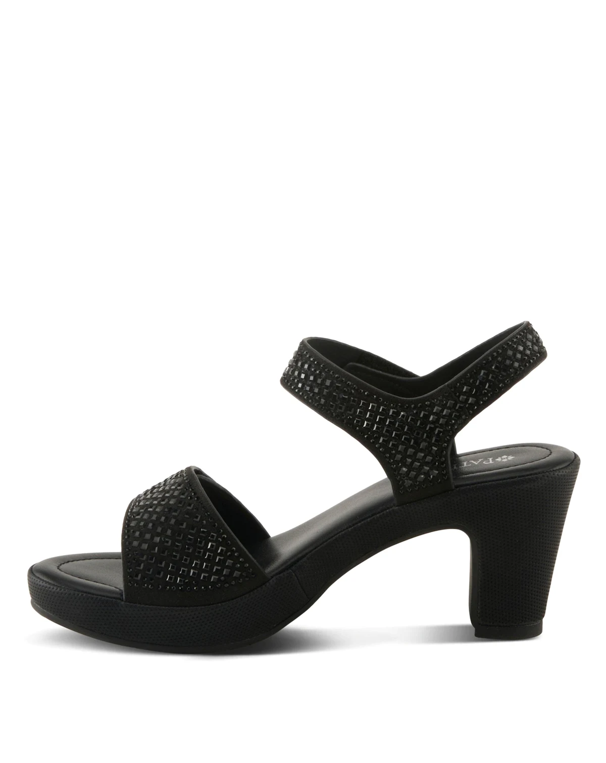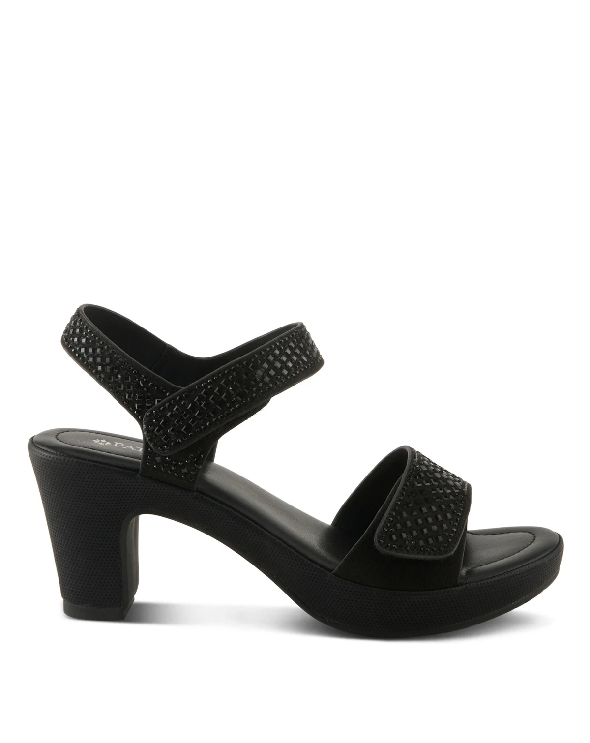 Radiate confidence and elegance in the Patrizia SHINE heeled sandals. Featuring shimmering crystal embellishments across the straps and a comfortable platform sole, these heels offer the perfect combination of fashion and function. A padded footbed cushions each step, while the adjustable hook-and-loop closure ensures a secure fit. Whether you're dressing for a night out or a special occasion, these heels shine with every stride.