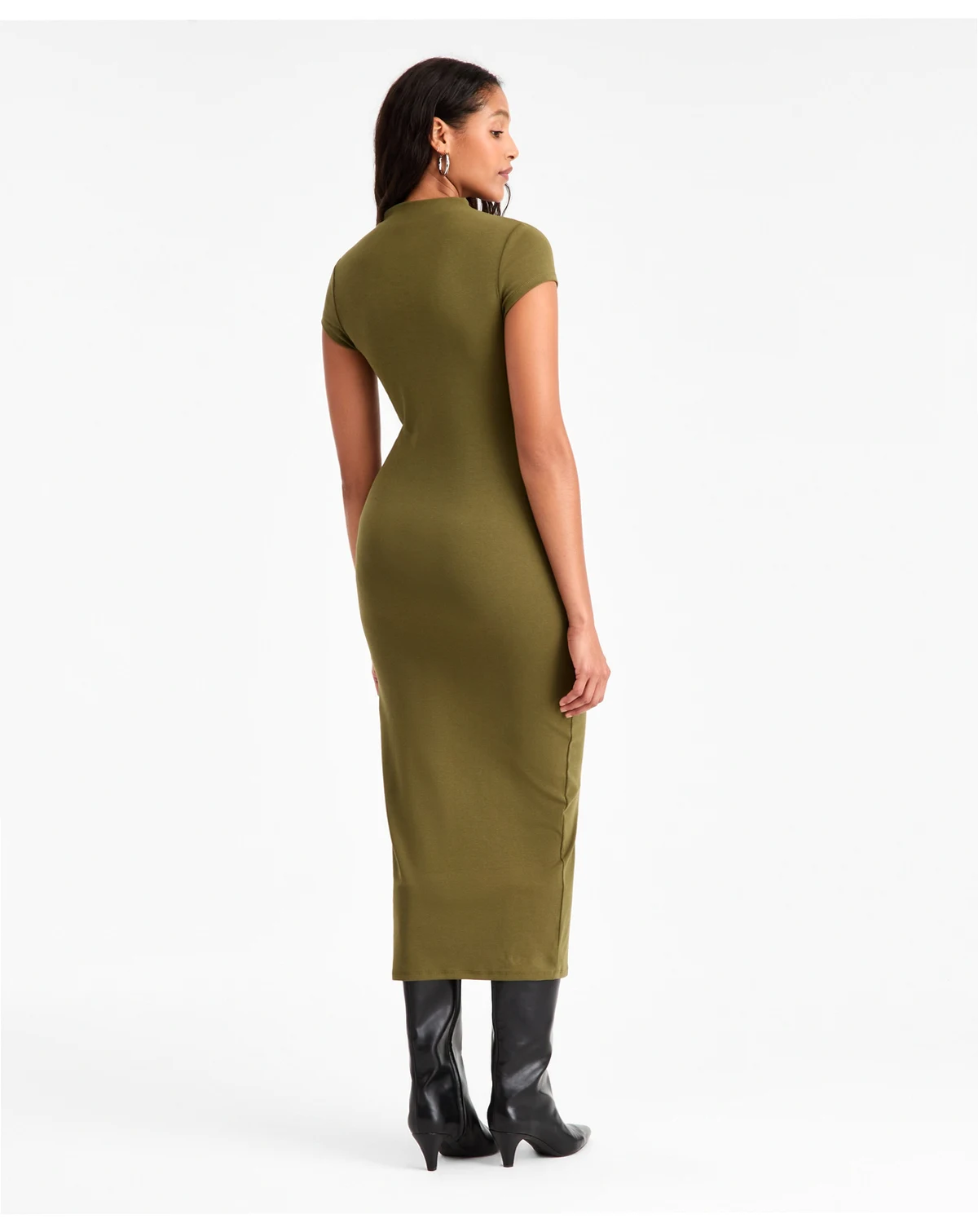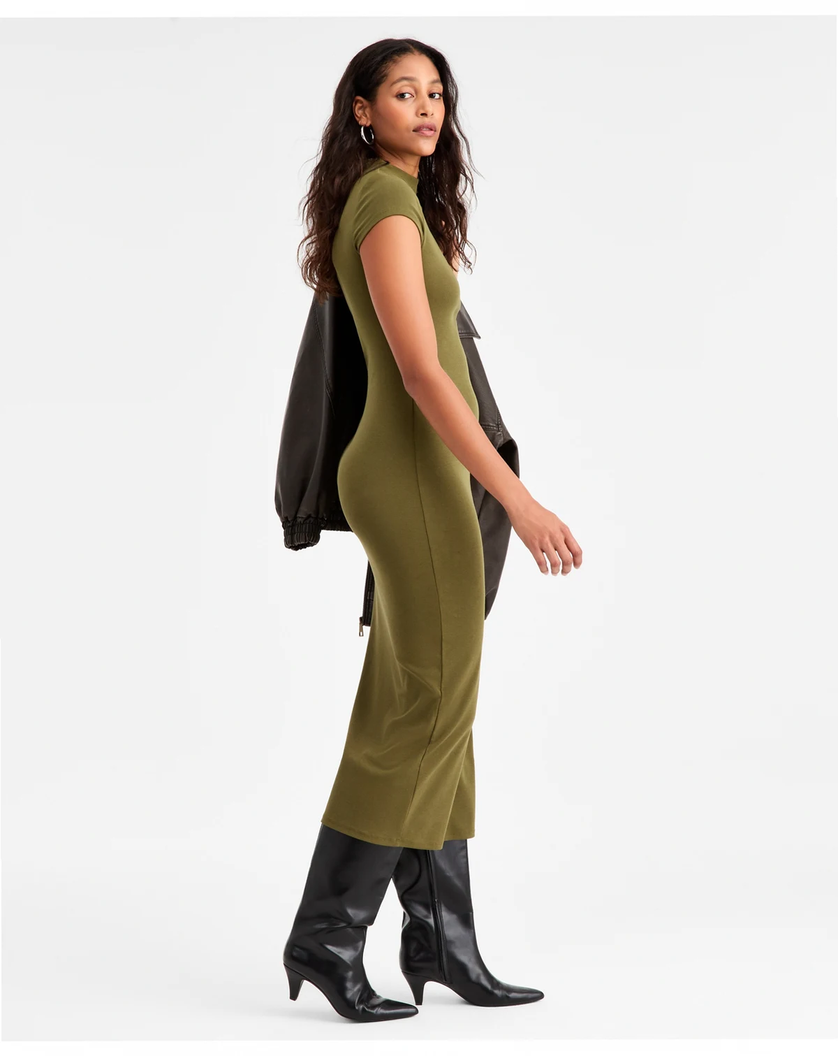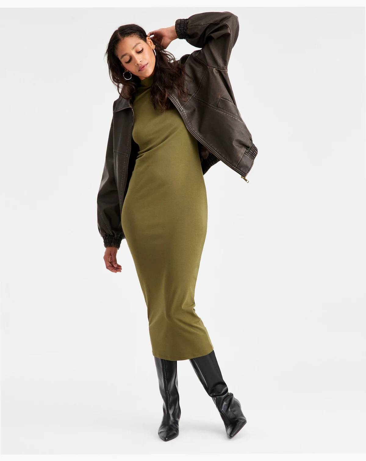 Sleek, simple and oh so sophisticated, this timeless midi by Bar III® is chicly finished with a polished mock neck silhouette and classic cap sleeve.