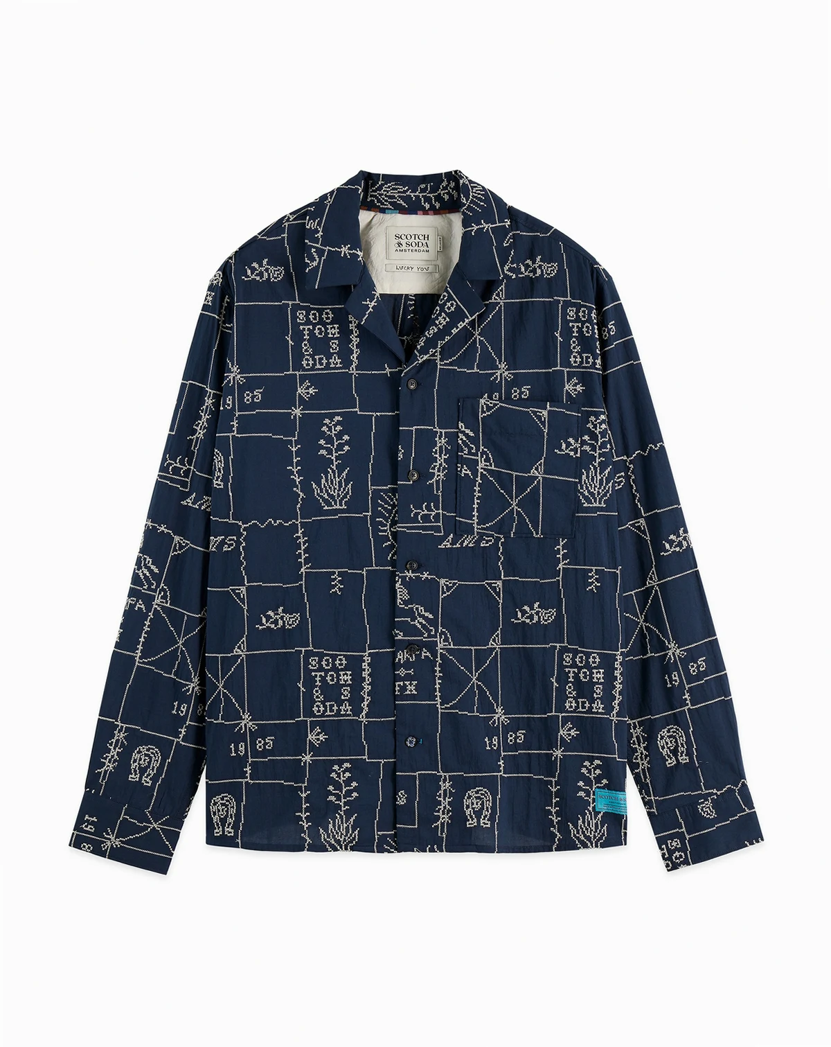 Adorned with an allover digital print design, this long-sleeve shirt from SCOTCH & SODA offers a relaxed and artistic aesthetic. A spread collar, chest pocket, and button tab cuff provide refined details.