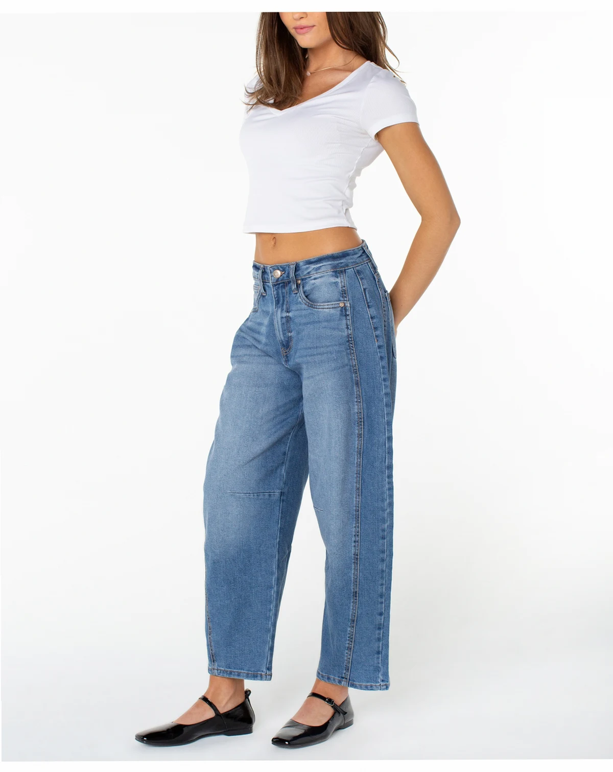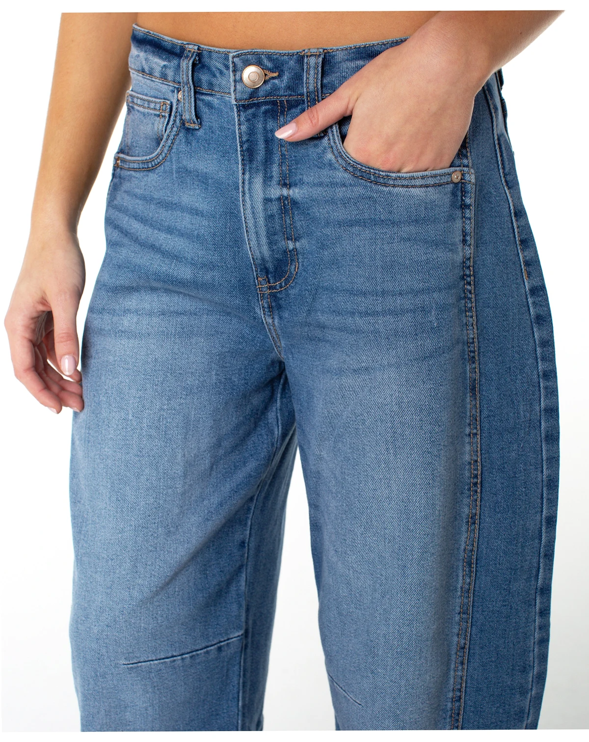 Refresh your denim rotation with the modern barrel-leg shape of these high rise jeans from Celebrity Pink.