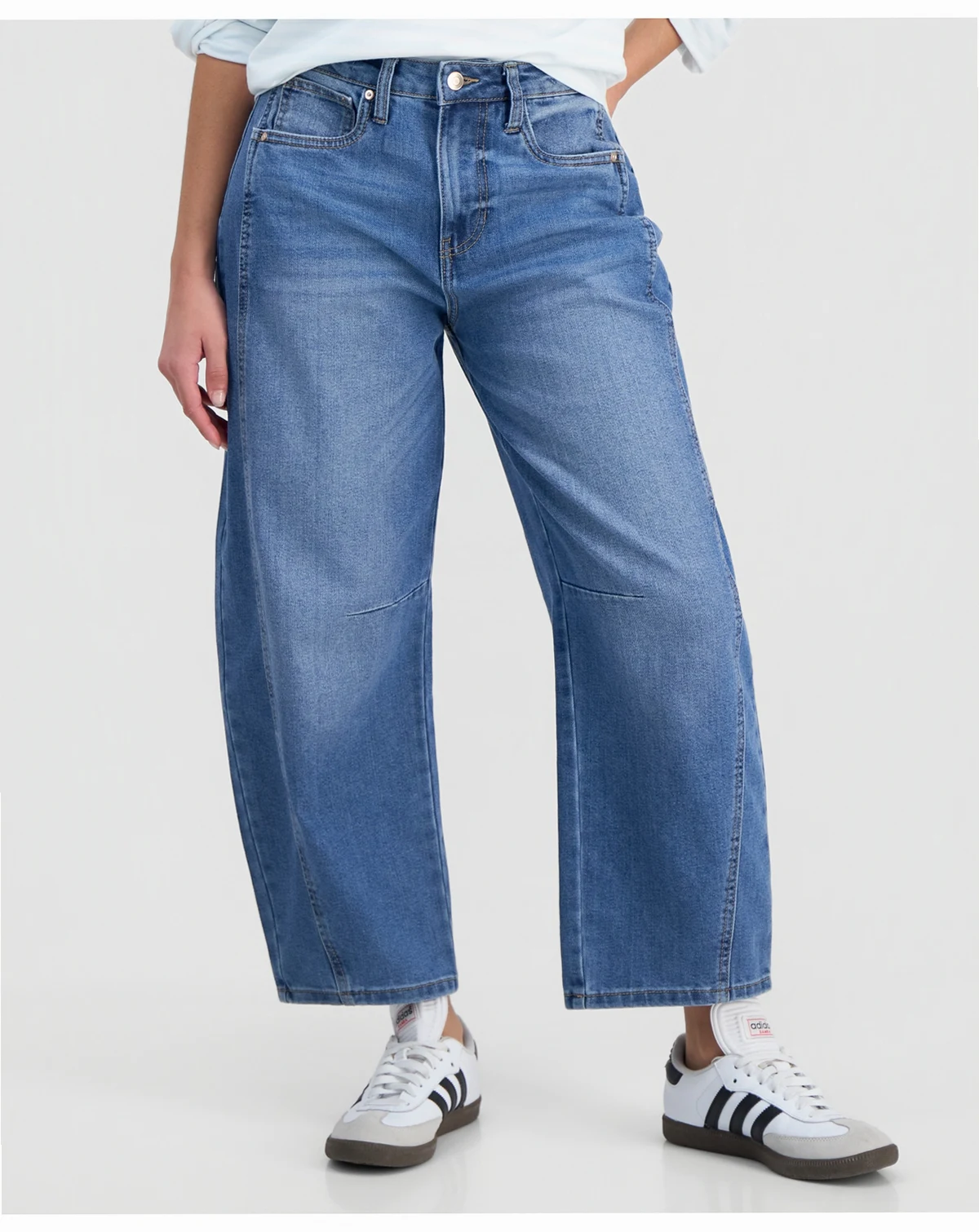Juniors' High-Rise Barrel-Leg Jeans