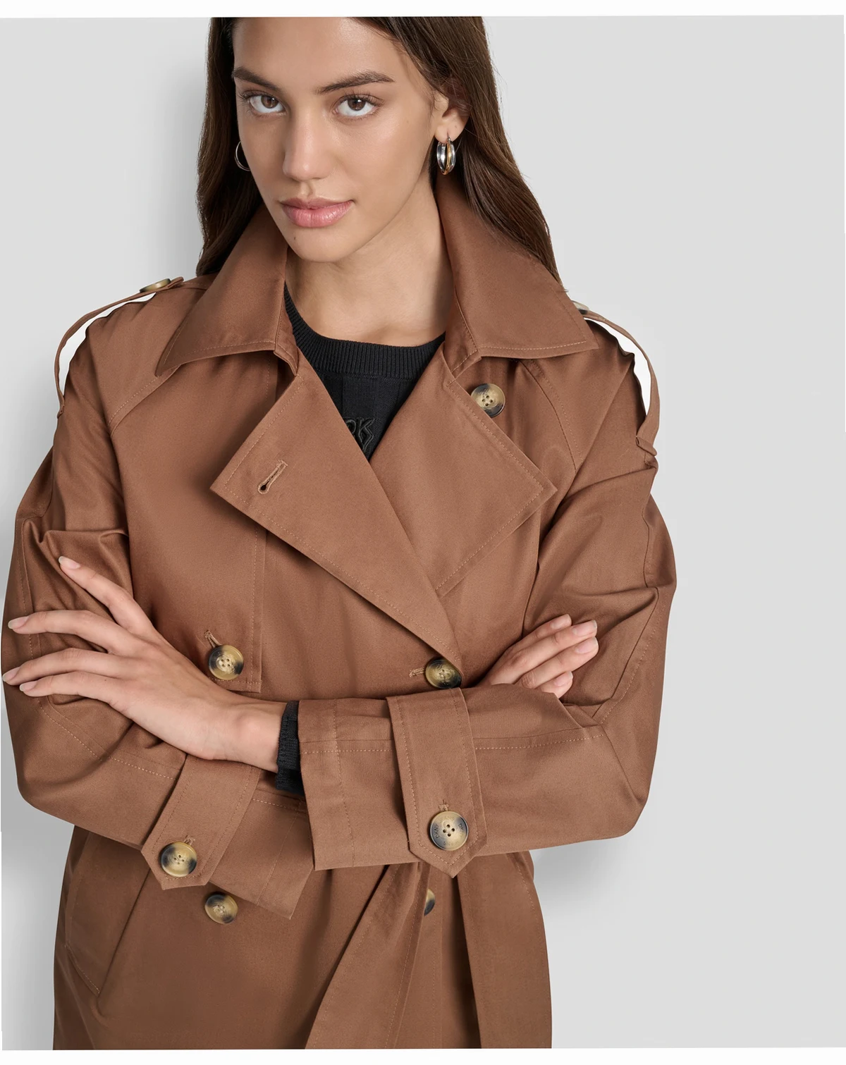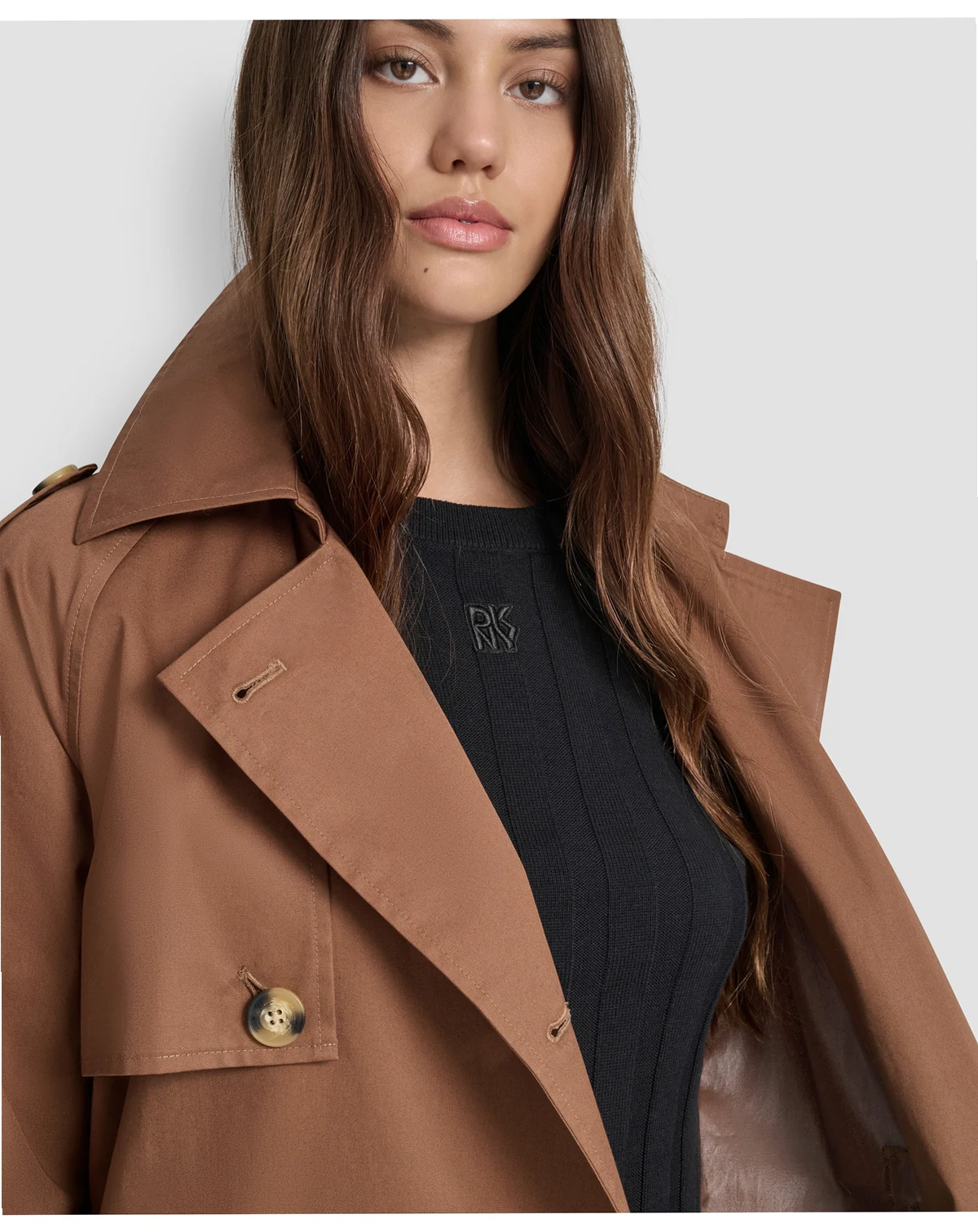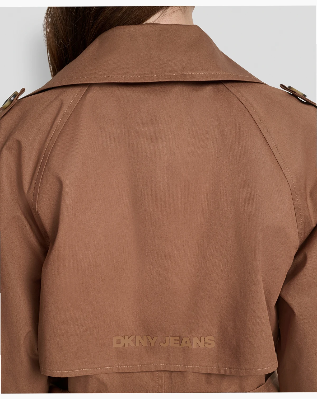 The iconic trench coat, as done by DKNY Jeans. This lighter cotton version features all the classic details in a midi-length silhouette.