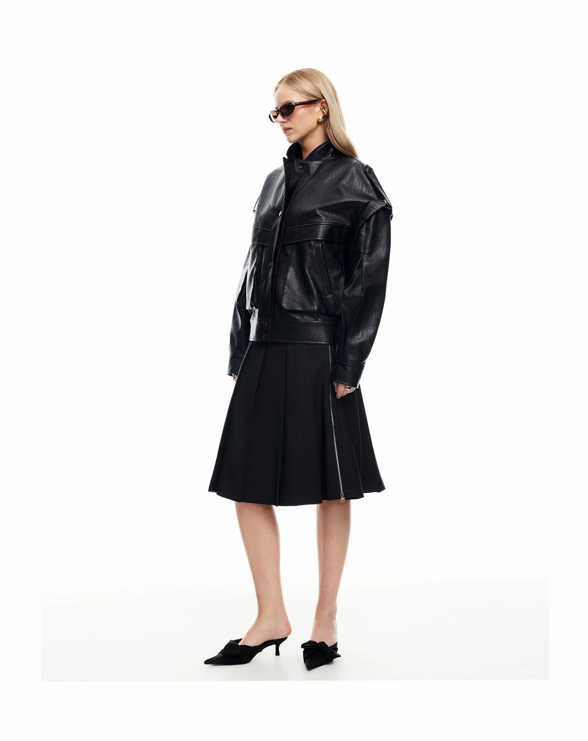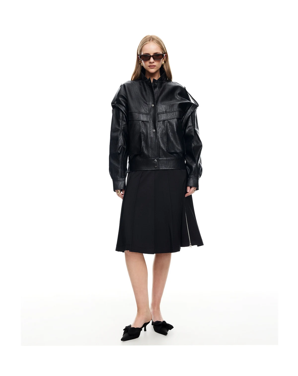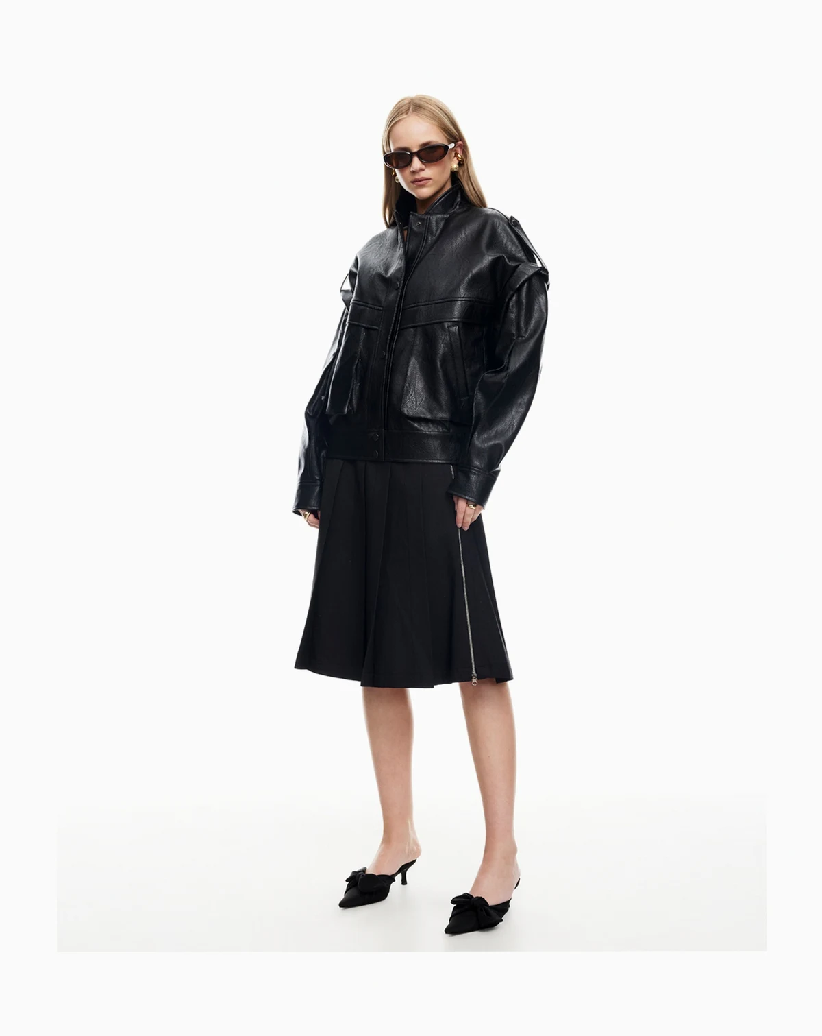 Offering a modern and polished look, this Madame Bomber jacket from Lioness features a sleek button-front design and is crafted from a smooth PU and polyester blend. This lined jacket is designed for comfortable wear, making it a stylish addition to your wardrobe.