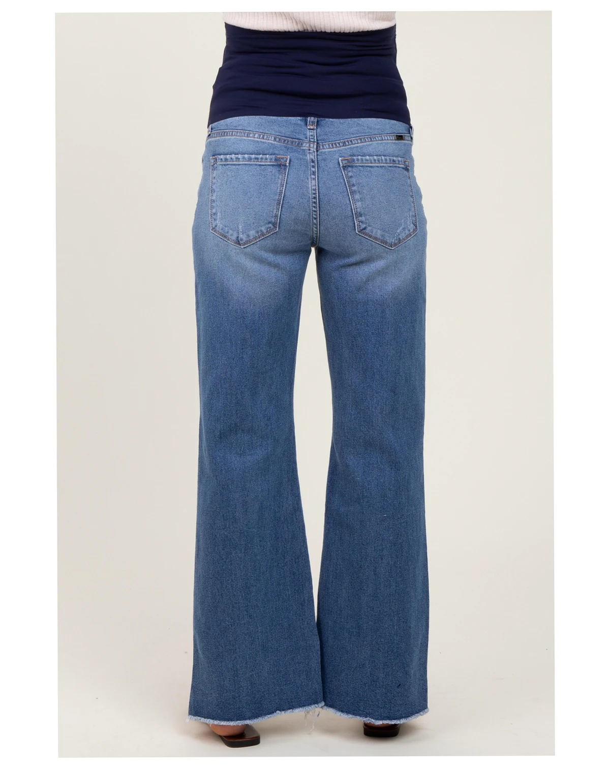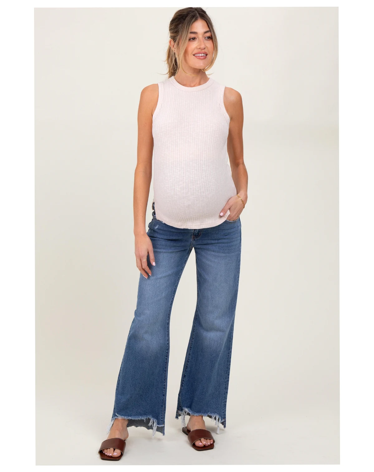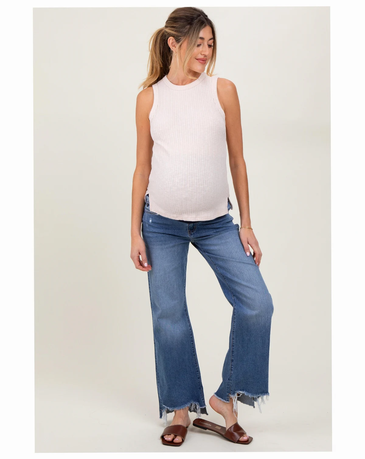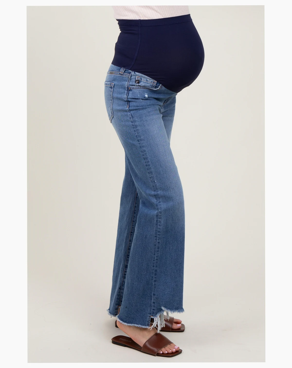 Step up your maternity style with these Distressed Fringe Hi-Lo Hem Cropped Flare Jeans! Designed for both comfort and trend, these jeans feature a soft, stretchy panel that grows with your bump. The high-low raw fringe hem and distressed detailing add a fashionable edge, while the cropped flare cut flatters your silhouette. Perfect for pairing with your favorite tee or a flowy blouse, these jeans take you from errands to date night with ease. Feel confident, stylish, and comfortable throughout your pregnancy. Machine washable for easy care. Elevate your maternity wardrobe today!