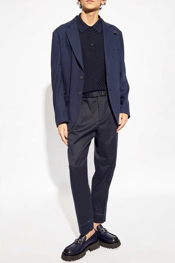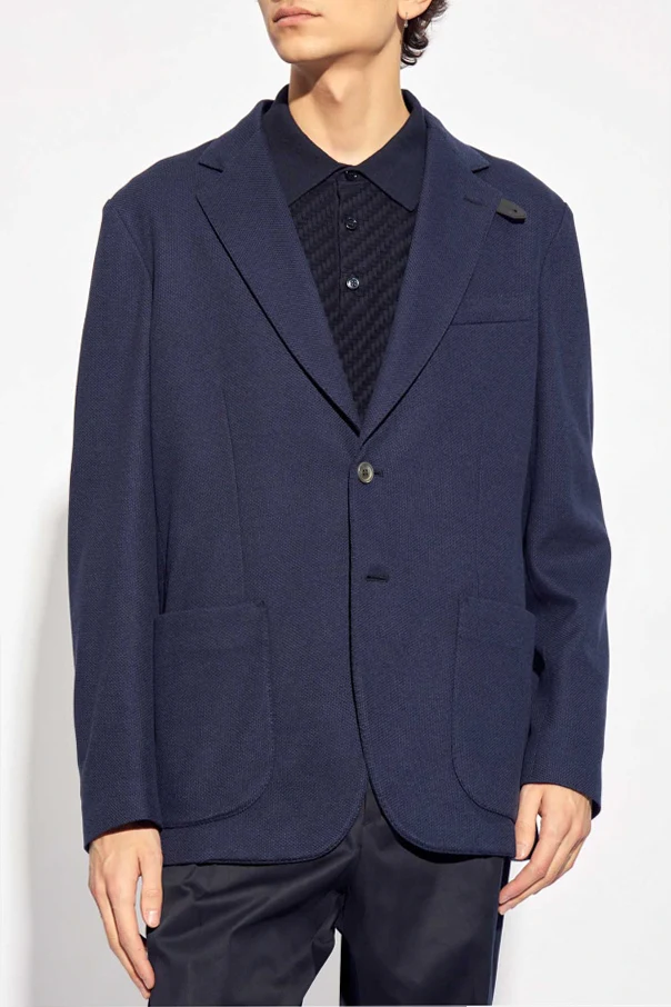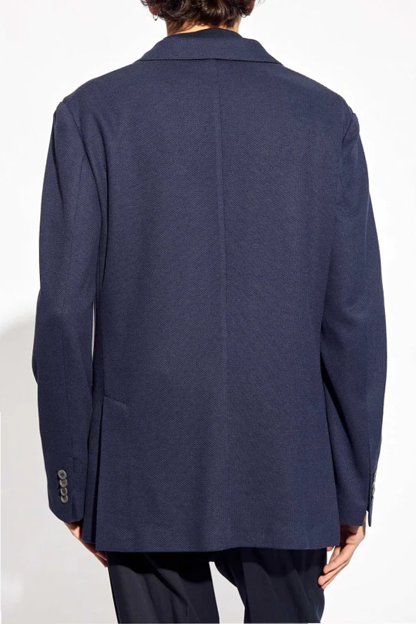 Navy blue blazer from Brioni. Made from a silk and cotton blend, this style features a double back vent, notch lapels, button fastenings, three frontal pockets and long sleeves.
