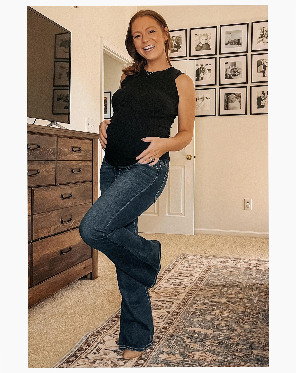 Step into effortless style with our Flare Leg Maternity Jeans! Crafted with ultra-soft, stretchy denim, these jeans are designed to grow with you, offering unbeatable comfort and a flattering fit at every stage of pregnancy. The classic wash pairs beautifully with any top, while the trendy flare leg silhouette elongates your look and adds a touch of retro-chic flair. The elastic waistband sits comfortably under your bump, ensuring support without pressure. Perfect for casual days or dressing up for a night out, these jeans are a must-have for every stylish mom-to-be.