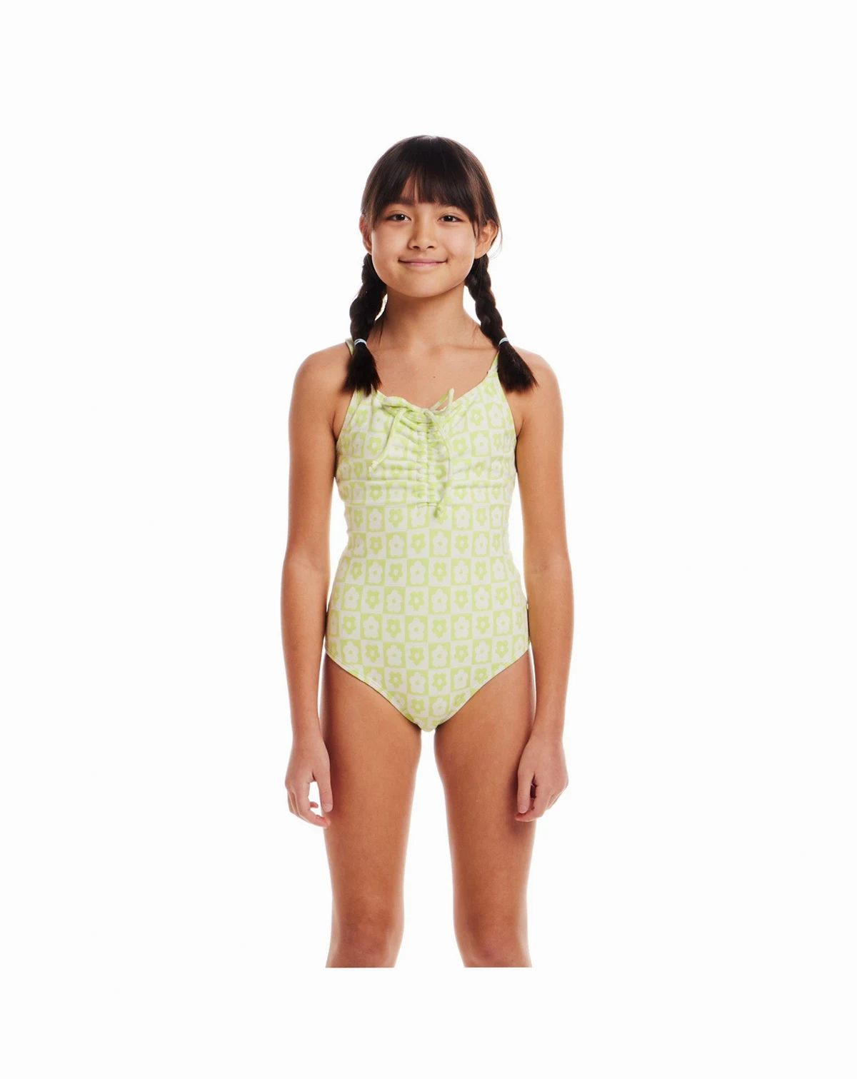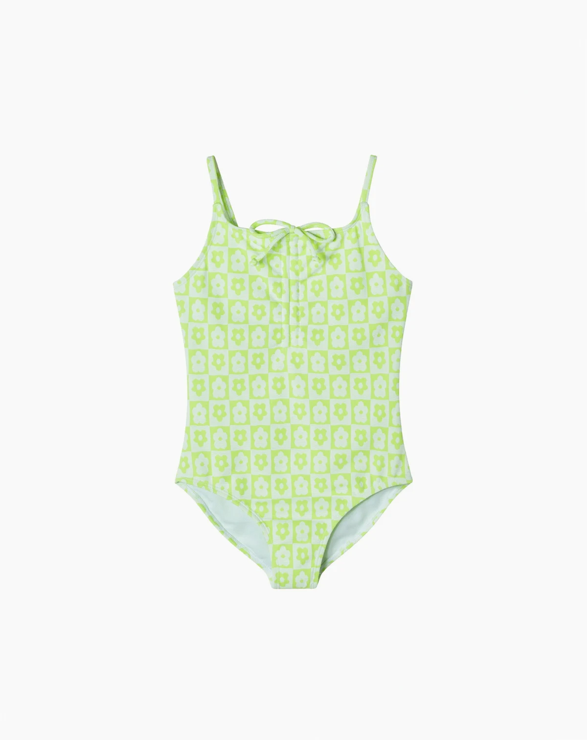 Brighten up the summer with timeless style! This classic one-piece swimsuit combines retro charm with modern comfort, featuring a fun floral print and a cute bow accent for extra flair.