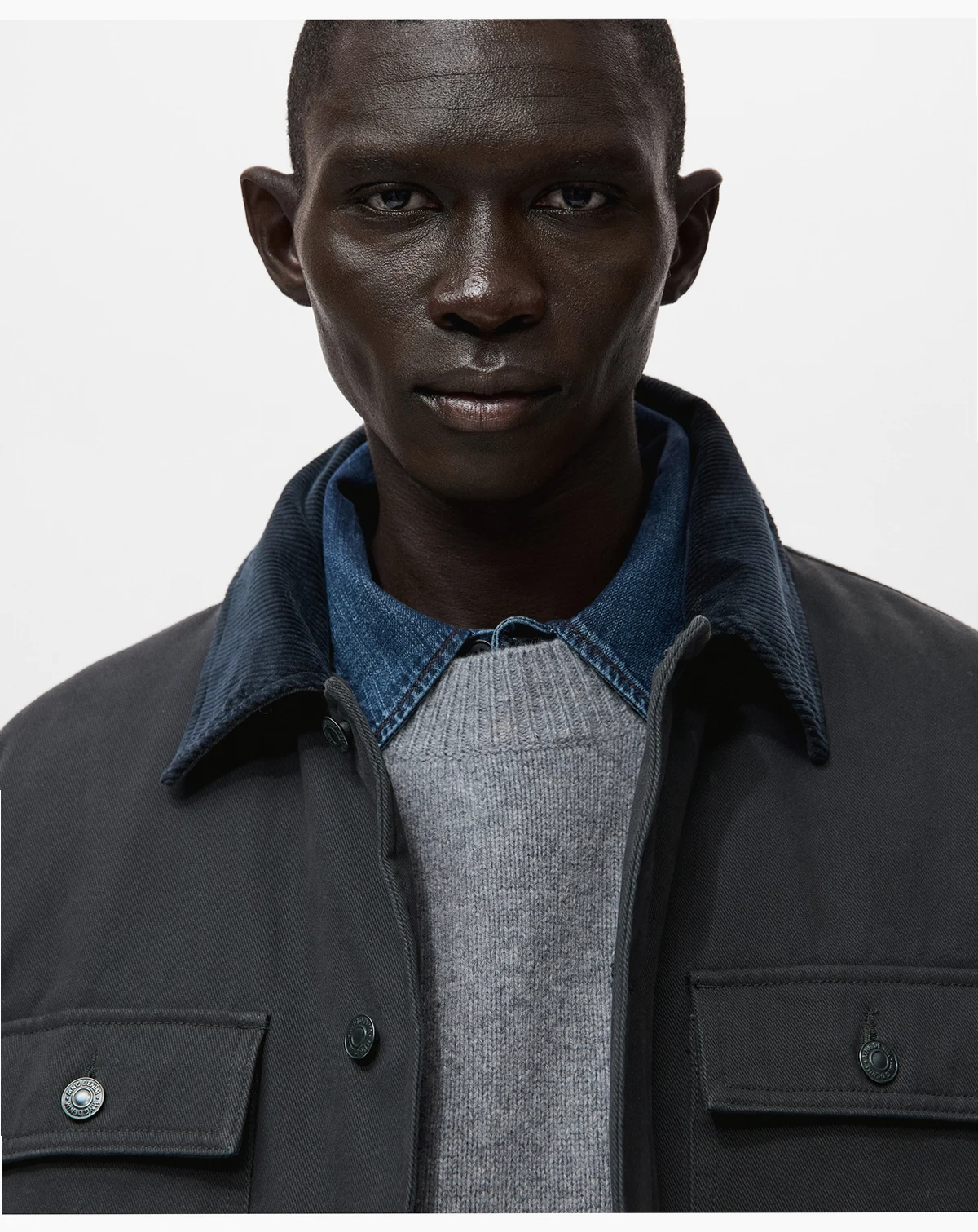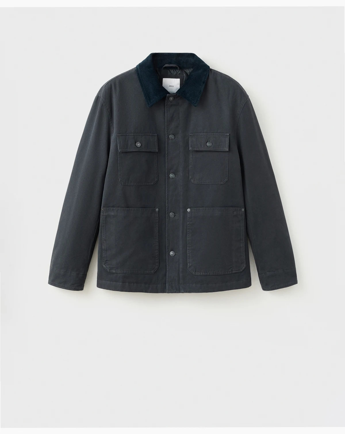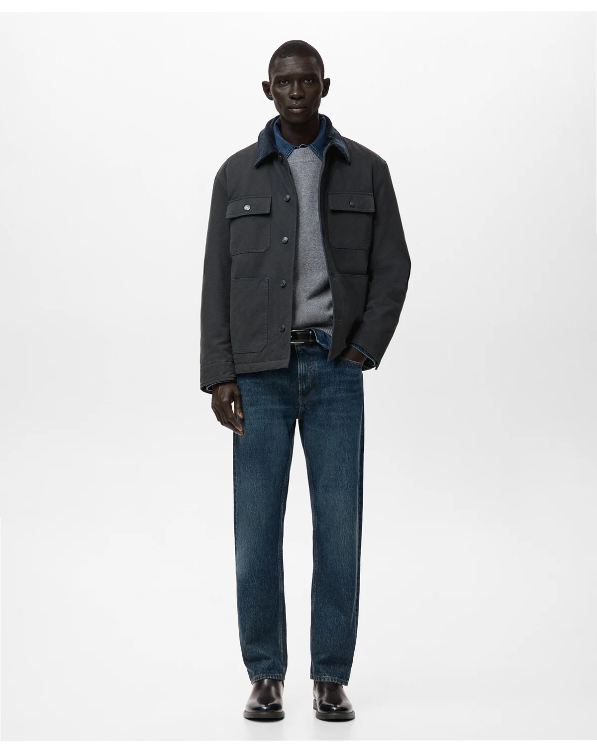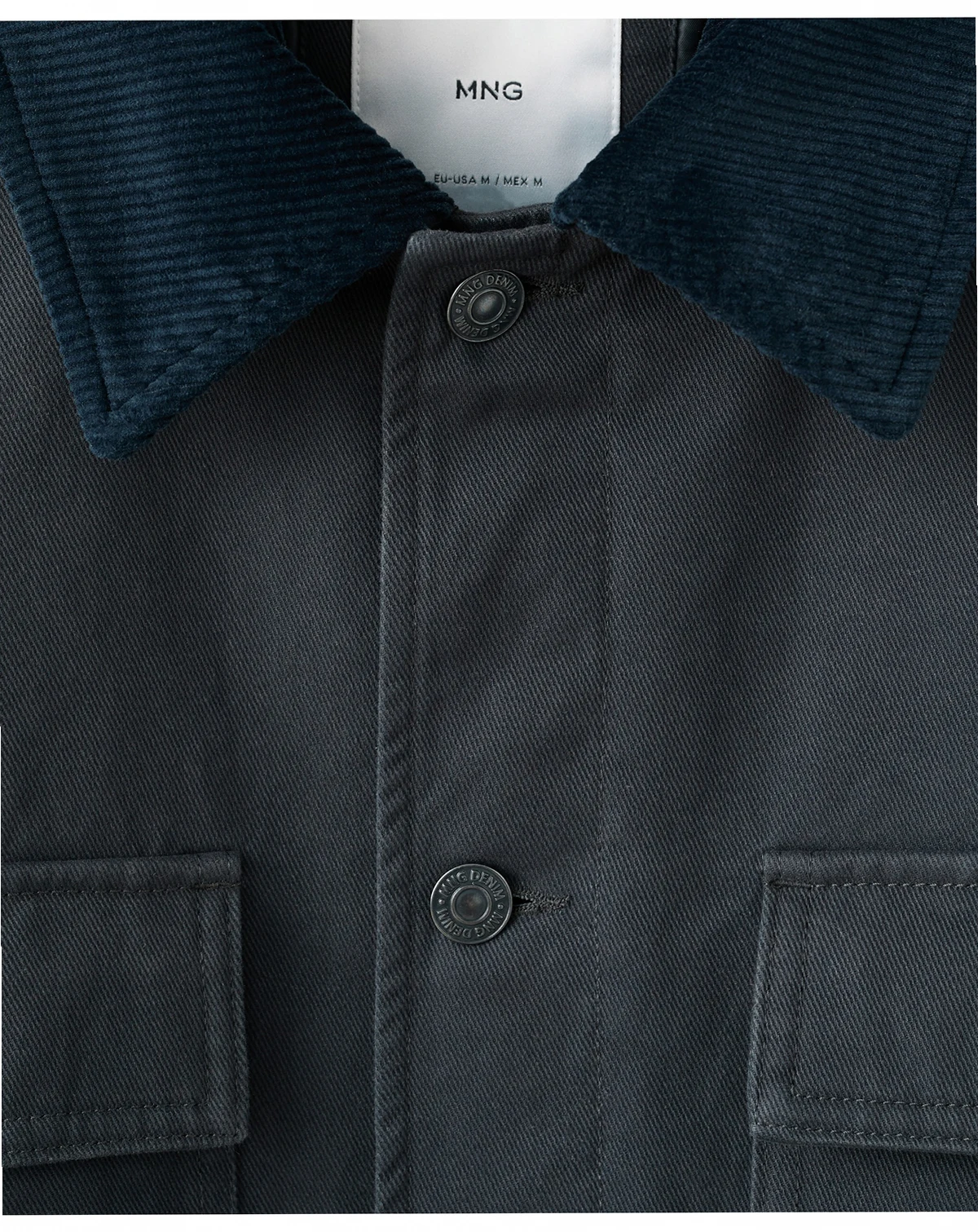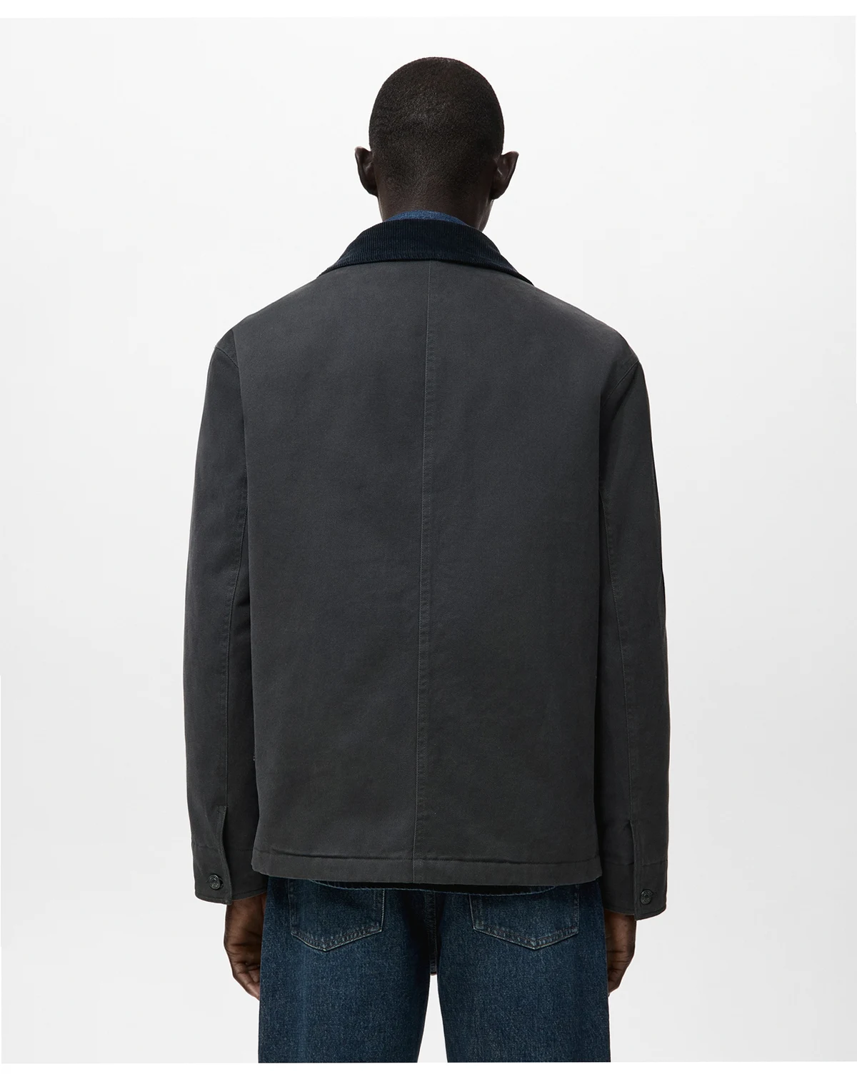 Utility meets texture in the Quilted Jacket With Corduroy Collar from Mango. Made from cotton fabric with quilted lining, this jacket features straight silhouette with corduroy quilted inner lining, interior pocket, and long sleeves with buttoned cuffs.