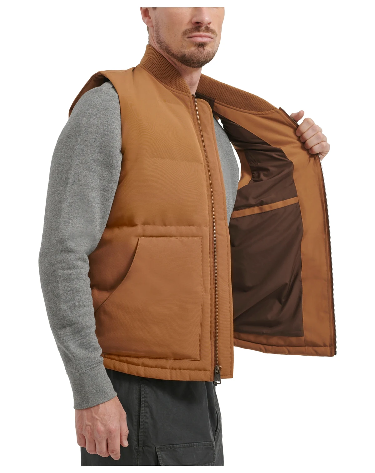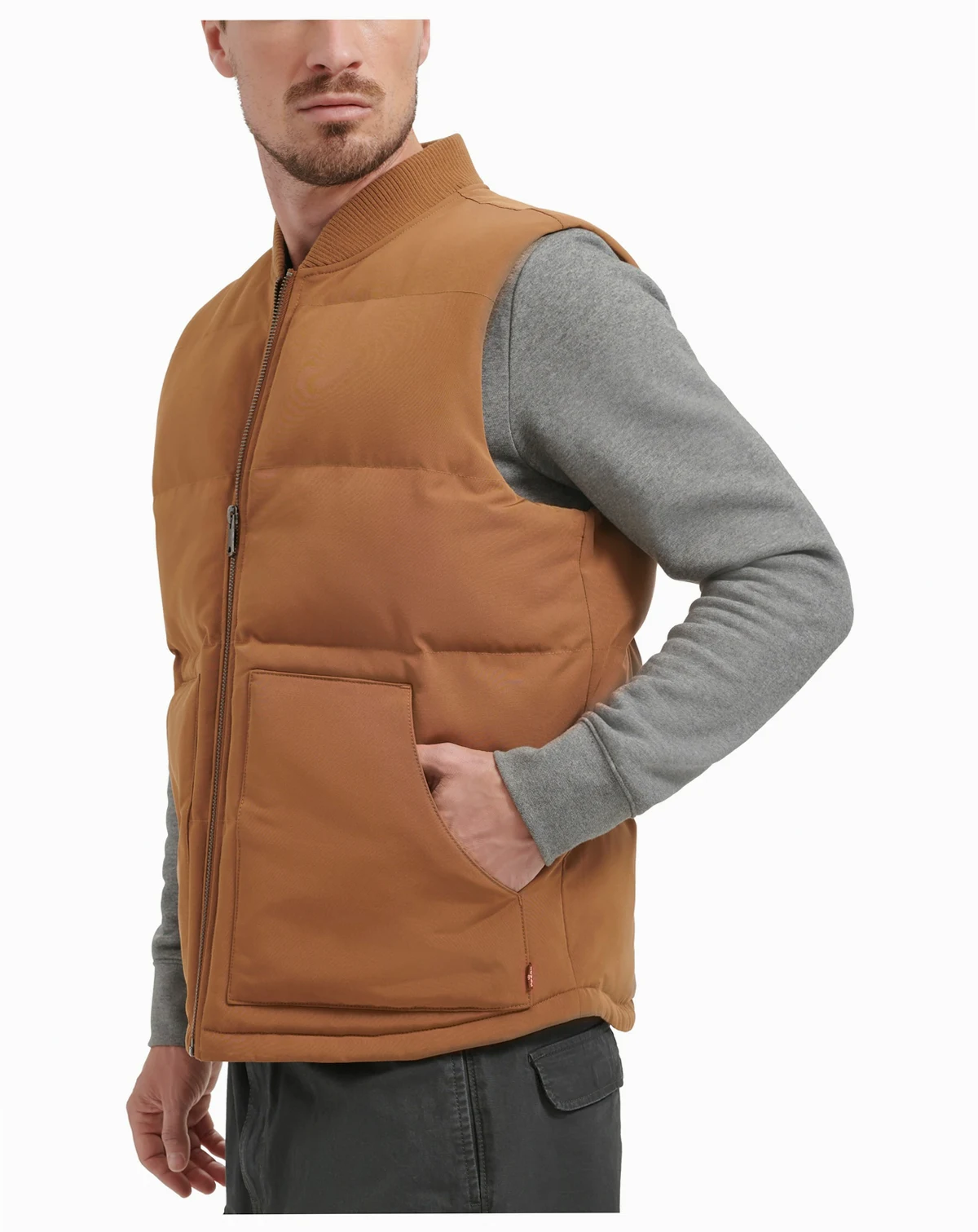 Built for in-between days and on-the-go moments, this Levi's aviator jacket delivers effortless utility with a cool, casual edge. A zip-up front, rib-knit collar, and roomy pockets add function and style, while the sleeveless design makes layering easy.