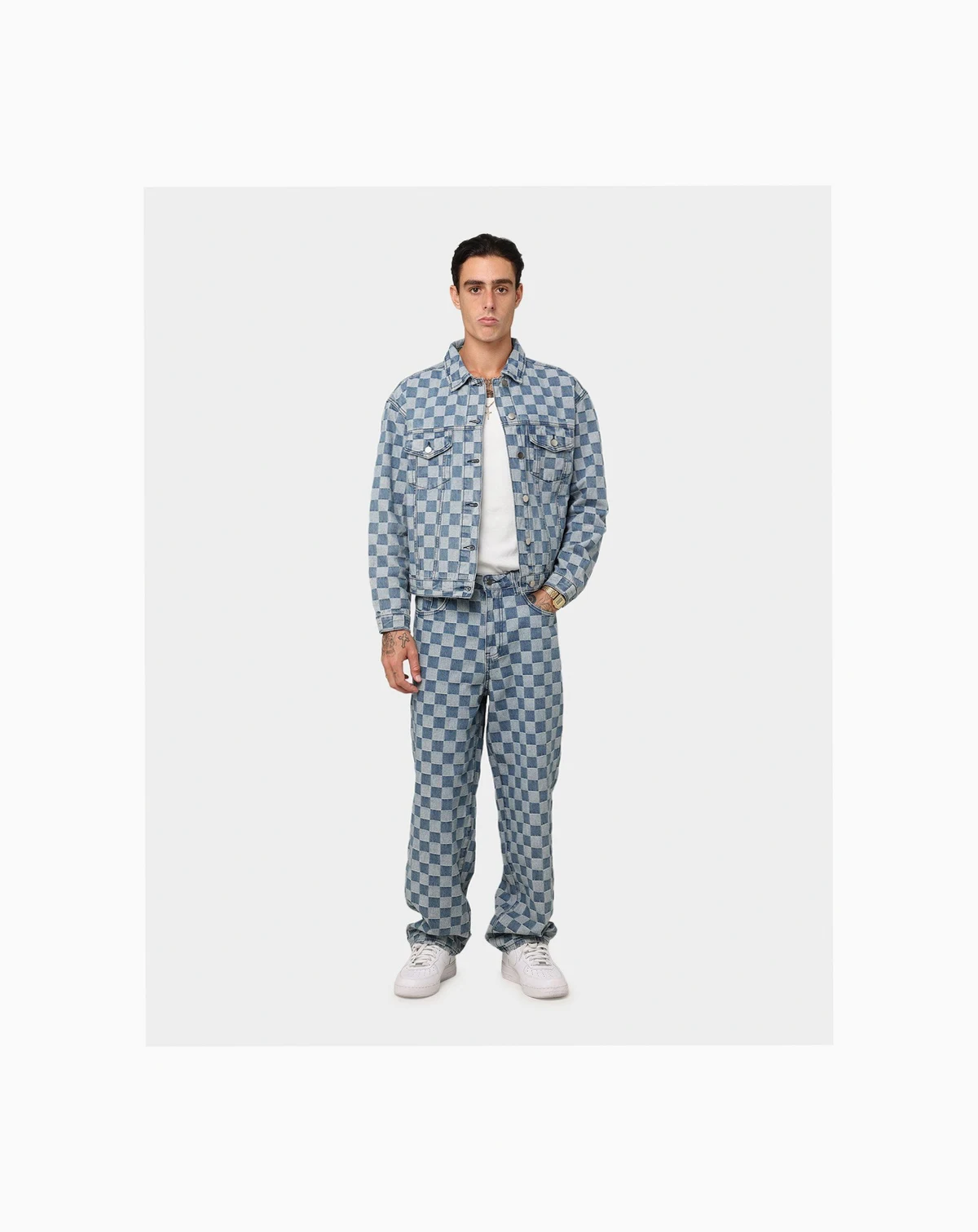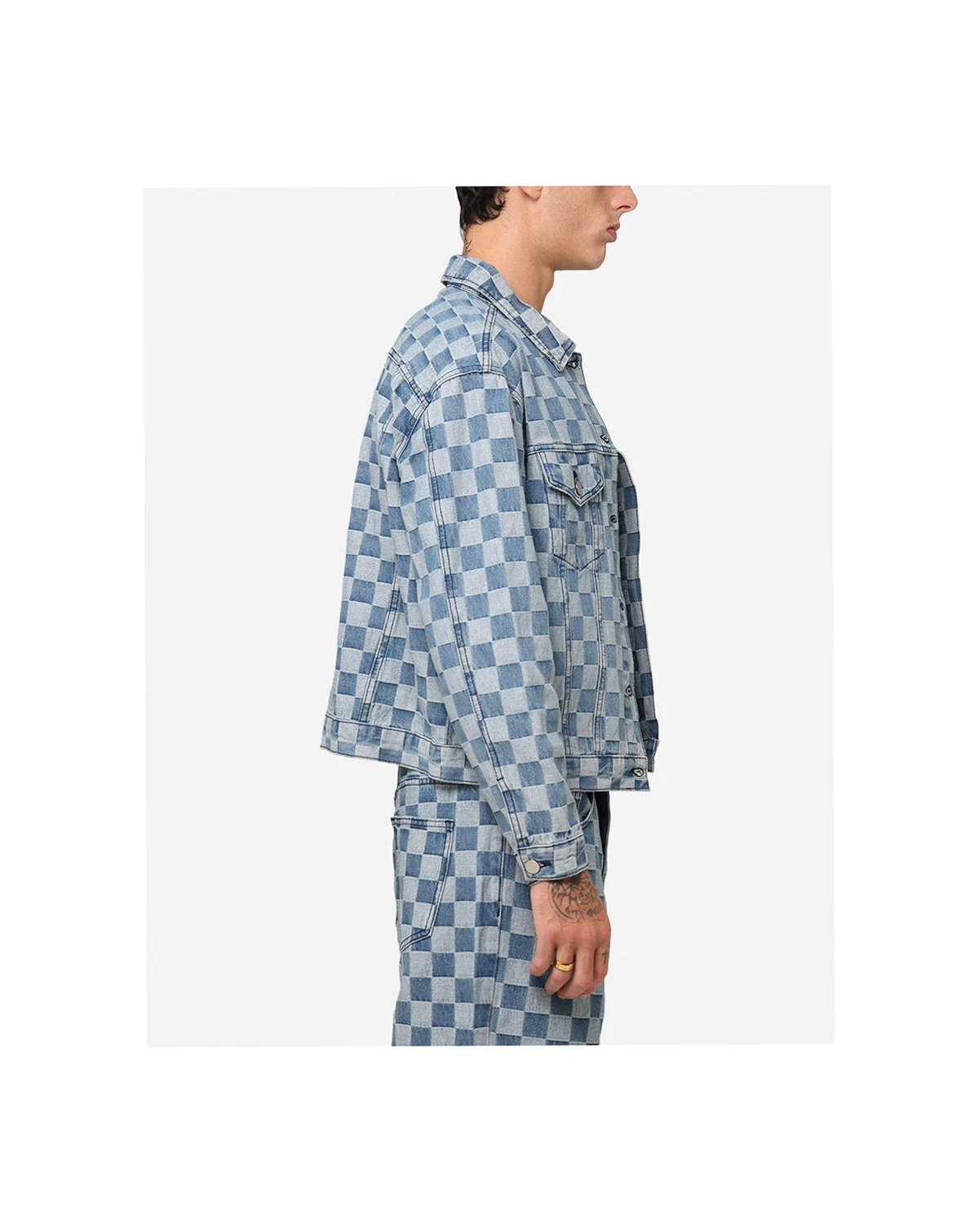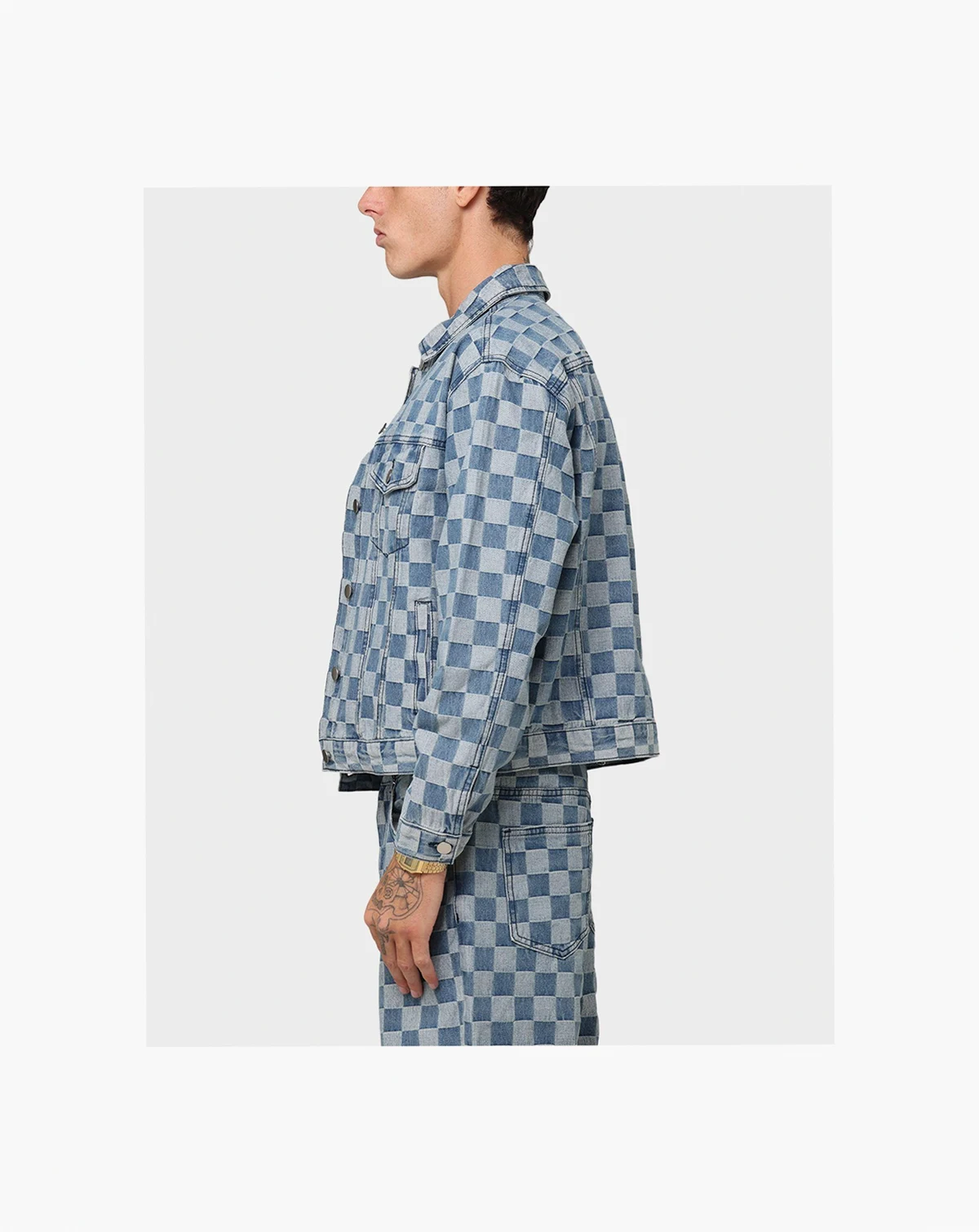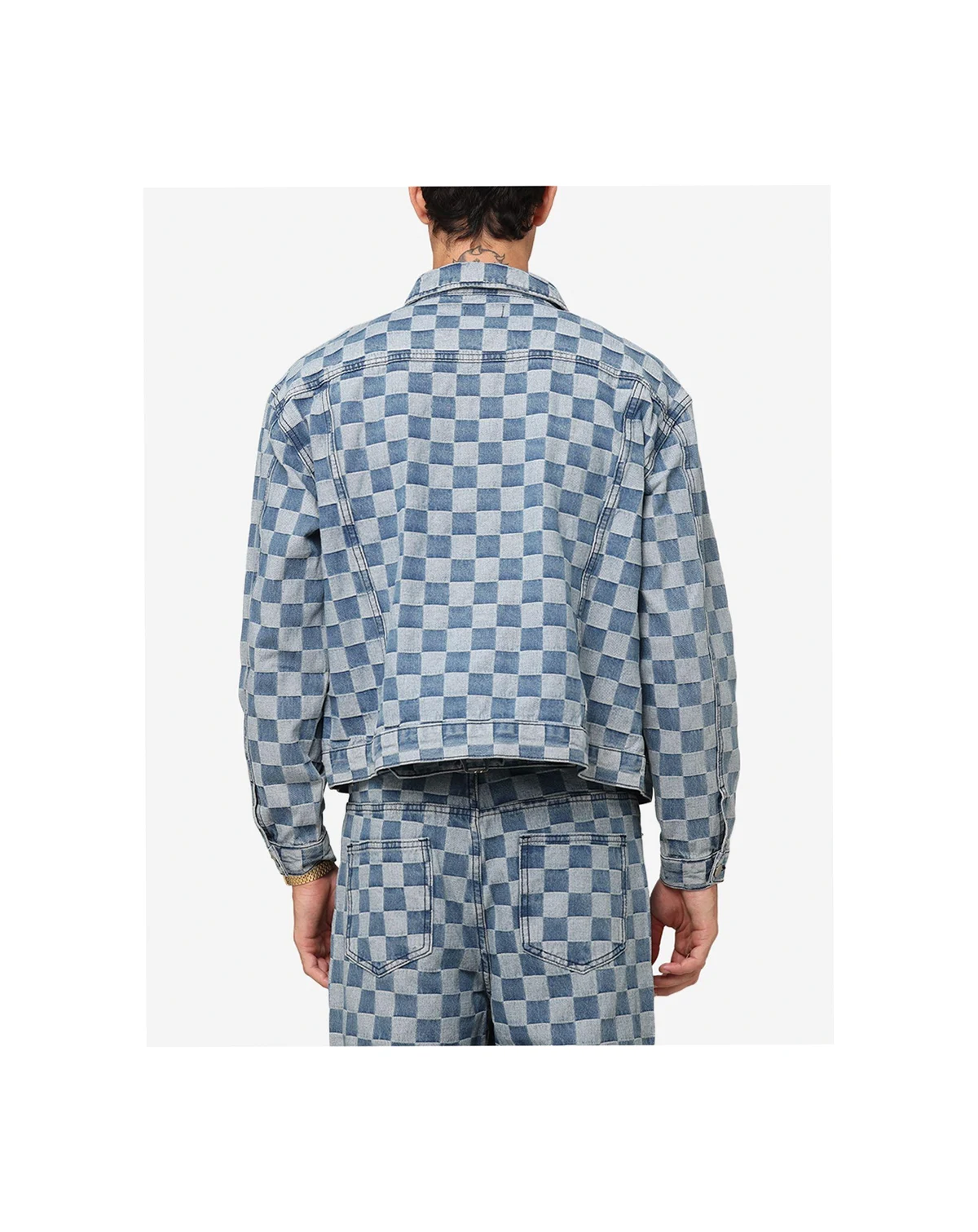 Layer up in style with the Checker Board Trucker Jacket by XXIII. The washed denim with an all over checkered print provides a classic look and the full button close allows you to customize your streetwear look. Finished off with dual chest pockets for your daily essentials.