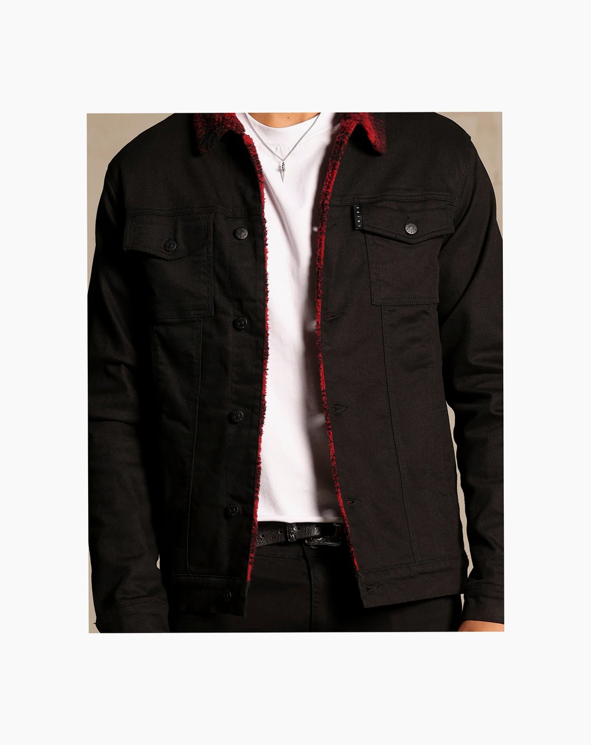 Big & Tall Tartan Faux Sherpa Denim Jacket