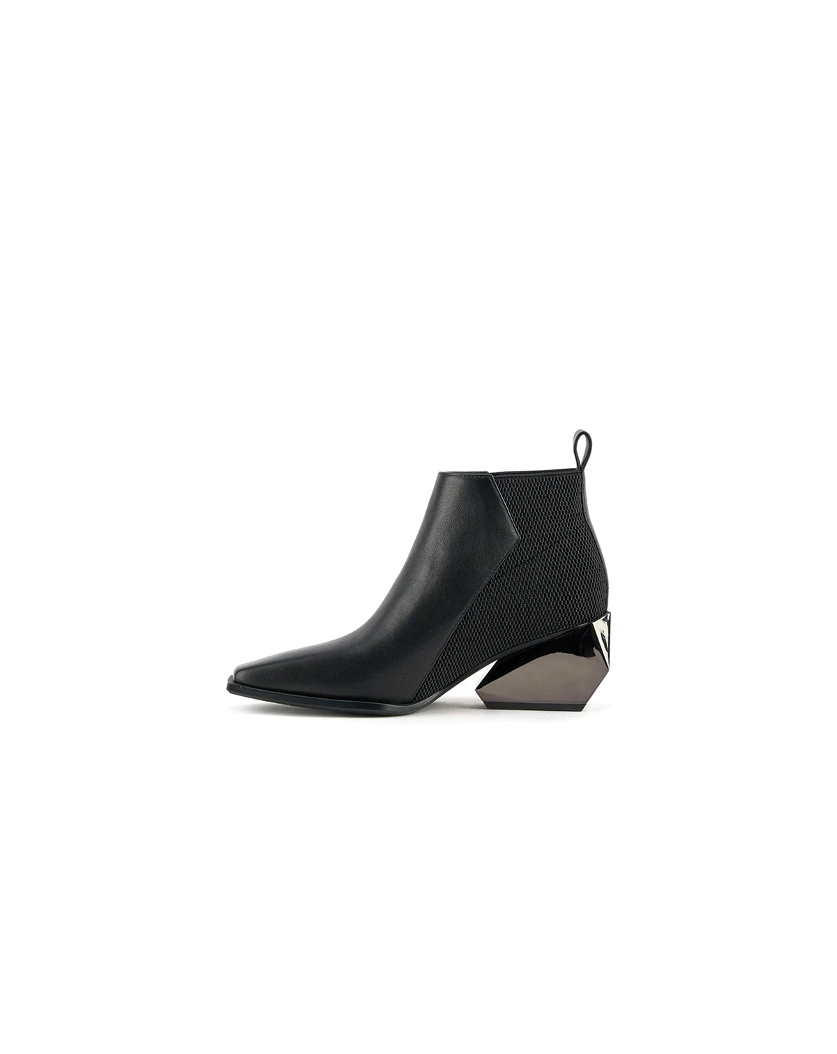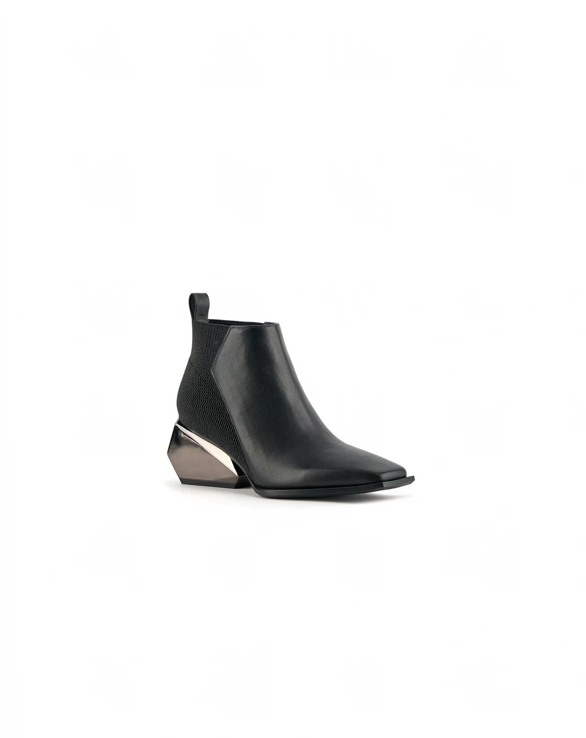 The Ricky Mid features an elasticized upper, a smooth leather vamp, and a uniquely sculpted, geometric block heel. This multifaceted, architectural heel adds a touch of futuristic flair and elevates the boot from simple to statement-making, while the elasticized panel and pull tab at the heel ensure easy on and off wear. The Ricky Mid is perfect for those seeking a versatile and stylish boot that effortlessly blends classic design with contemporary details.