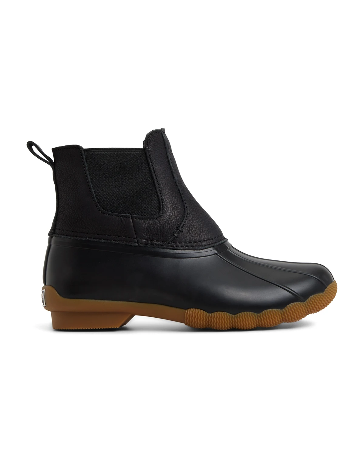 The Saltwater Chelsea Duck Boot combines two iconic styles to create a modern boot fit for colder and wetter weather. These boots feature a leather slip-on Chelsea boot upper, with a rubber duck shell adding a preppy touch. The waterproof upper and thermal lining provide comfort and keep your feet warm and dry, no matter the weather, while a molded Wave-Sipping™ outsole offers traction in wet and dry conditions. These smart boots are perfect to pair with your favorite pair of jeans and be dressed up for a coffee date or worn around the yard.