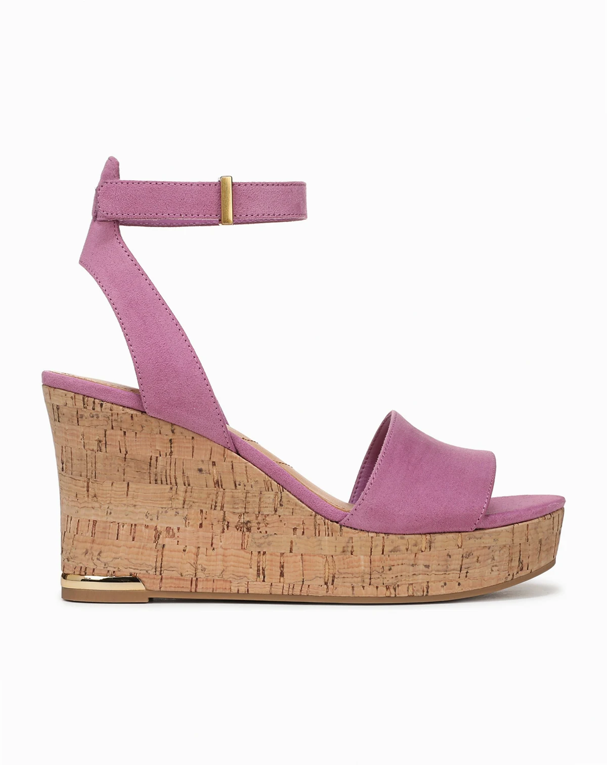 With their sophisticated gold-toned hardware and chic ankle strap, these stunning wedge sandals are the perfect wear-with-anything silhouette.
