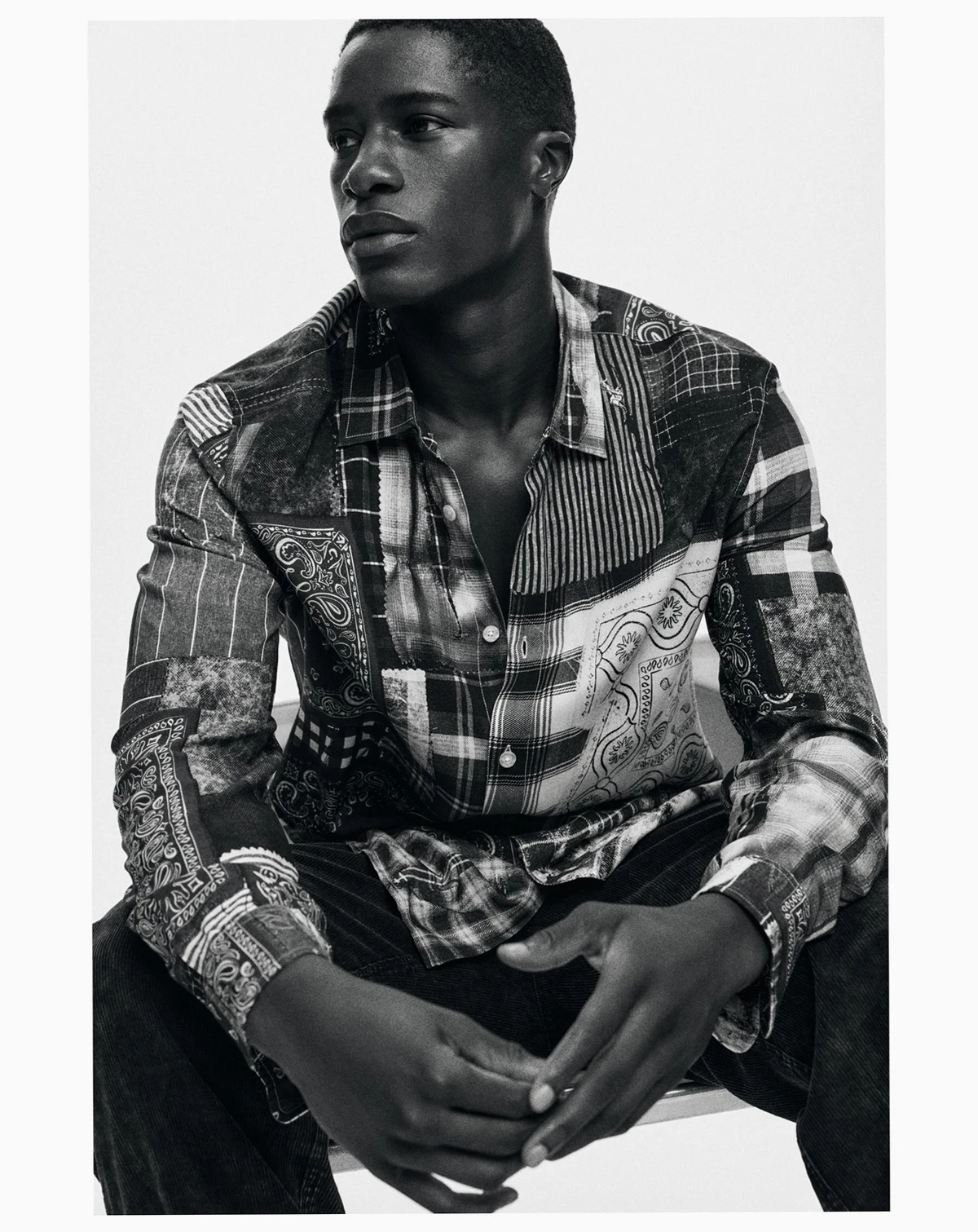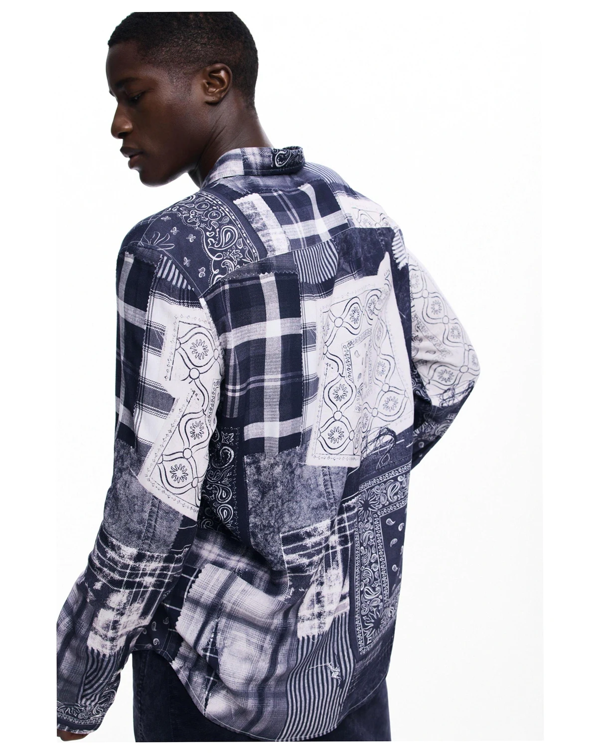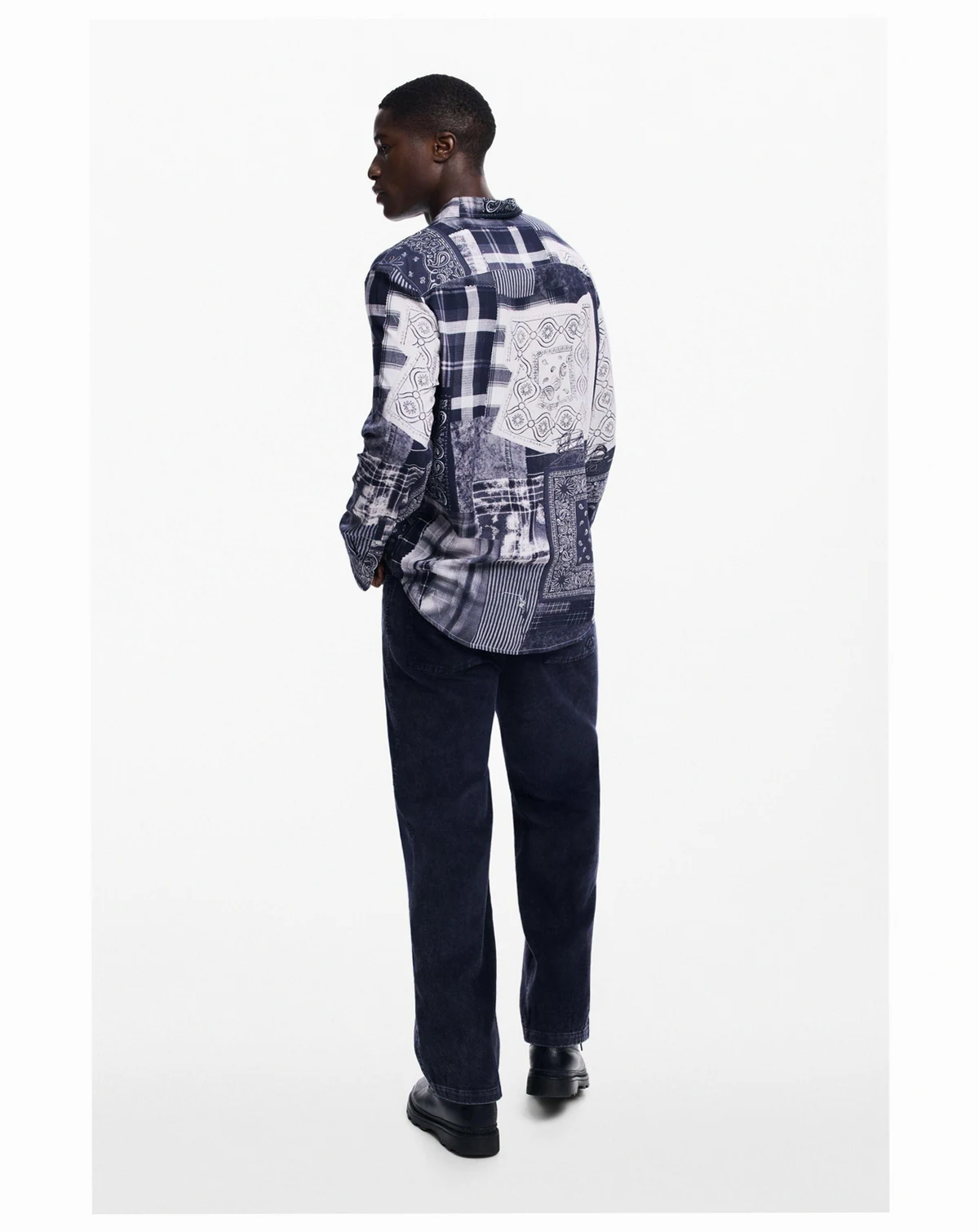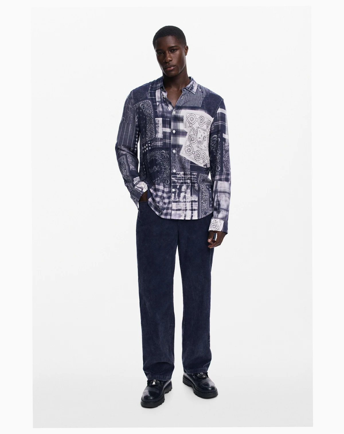 Regular-fit long-sleeved shirt made of cotton fabric, with a paisley-style print.