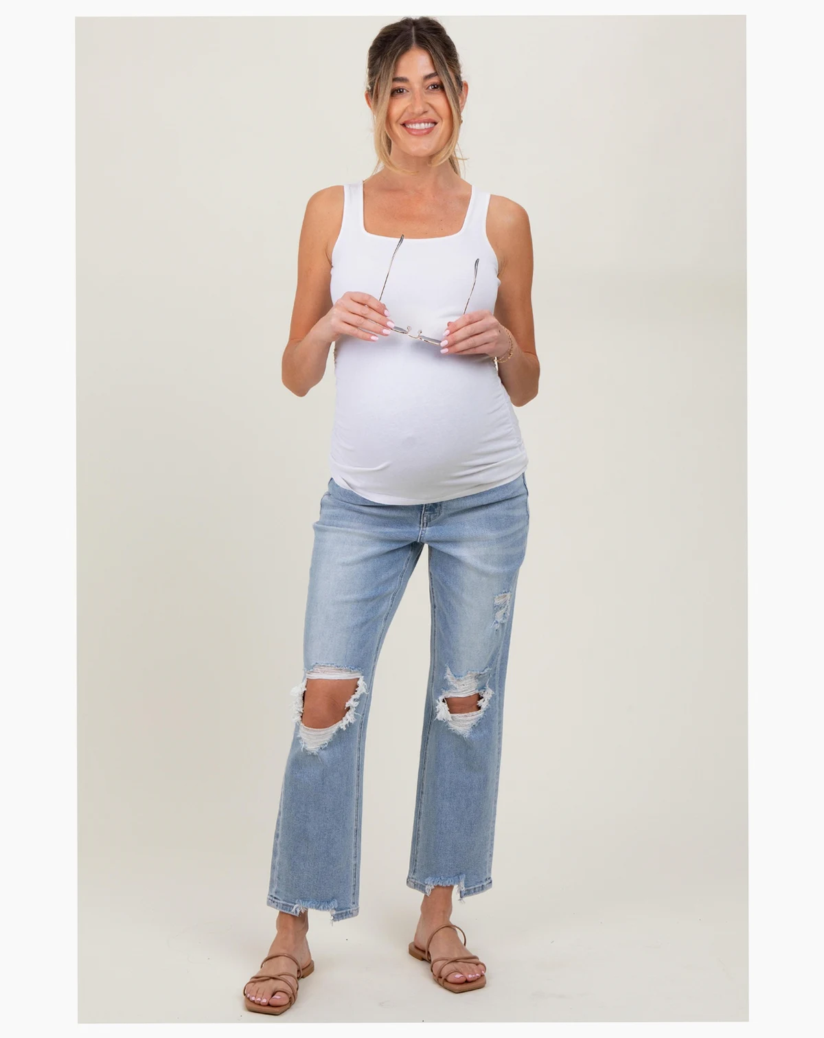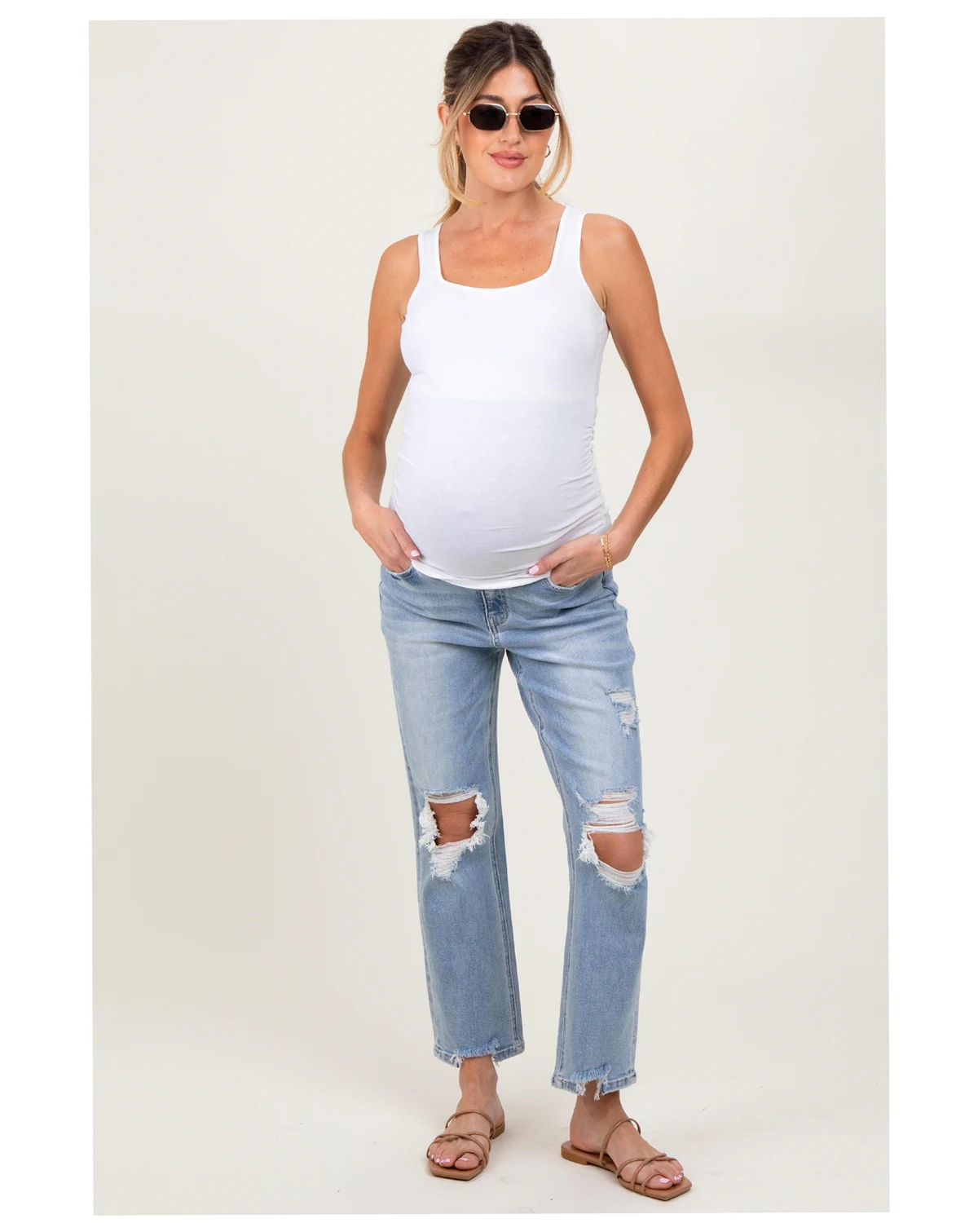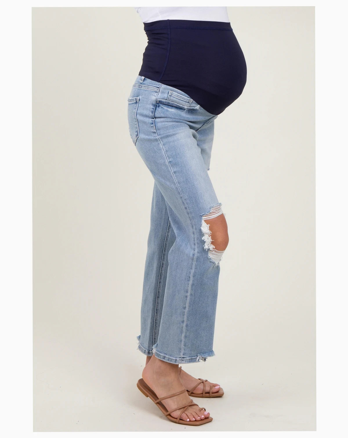 Step up your maternity style with these Distressed Cutout Maternity Straight Leg Ankle Jeans! Designed with a trendy cutout detail and gentle distressing, these jeans offer effortless cool while keeping you comfortable. The stretchy, soft denim and elastic waistband adapt to your changing shape and provide all-day support. The straight-leg fit and ankle-length cut are perfect for pairing with sneakers or sandals for a fresh, modern look. Whether running errands or out to brunch, these jeans are your go-to for chic maternity fashion. Embrace comfort and style, all in one versatile pair!