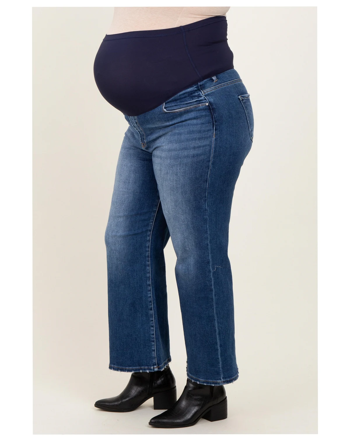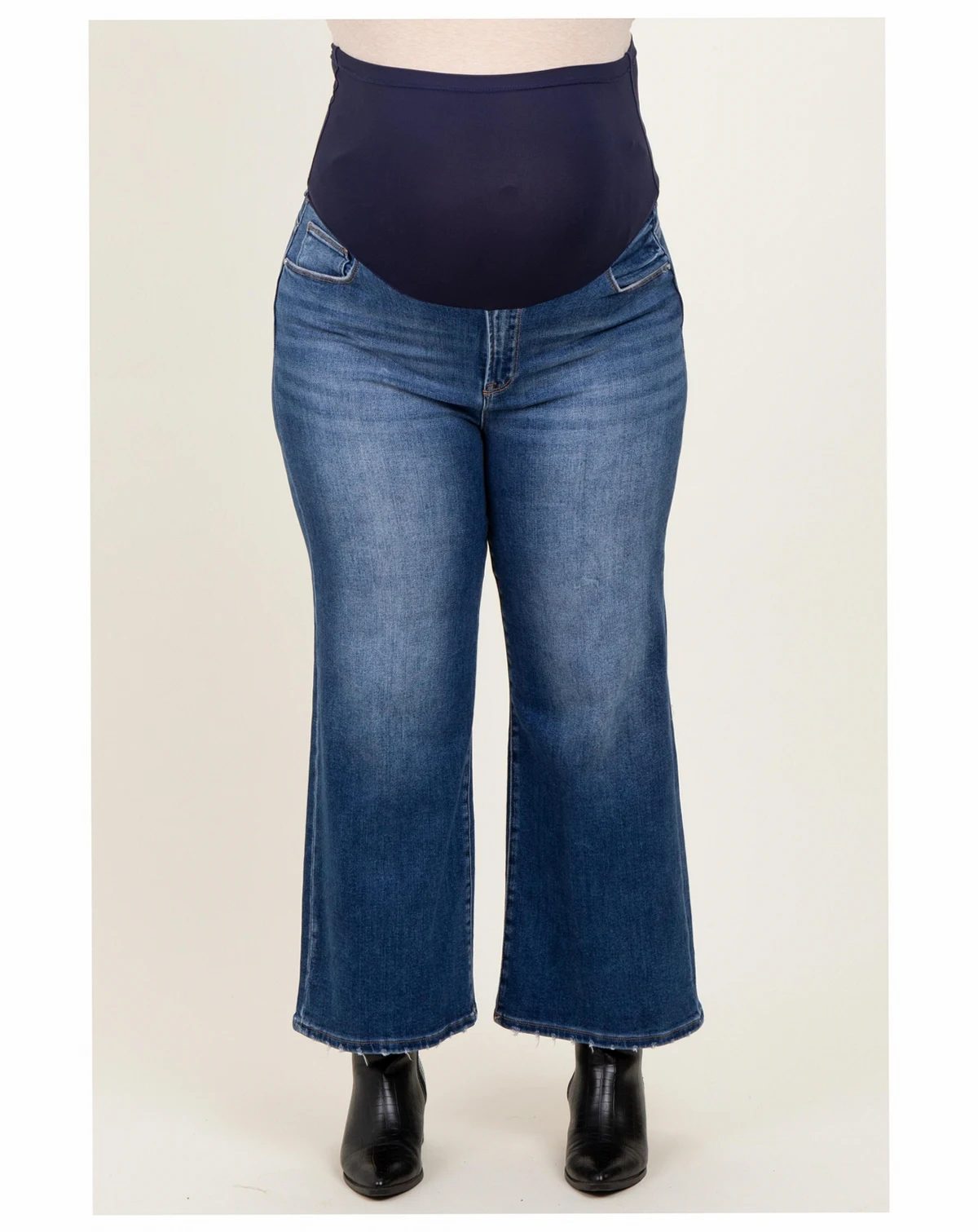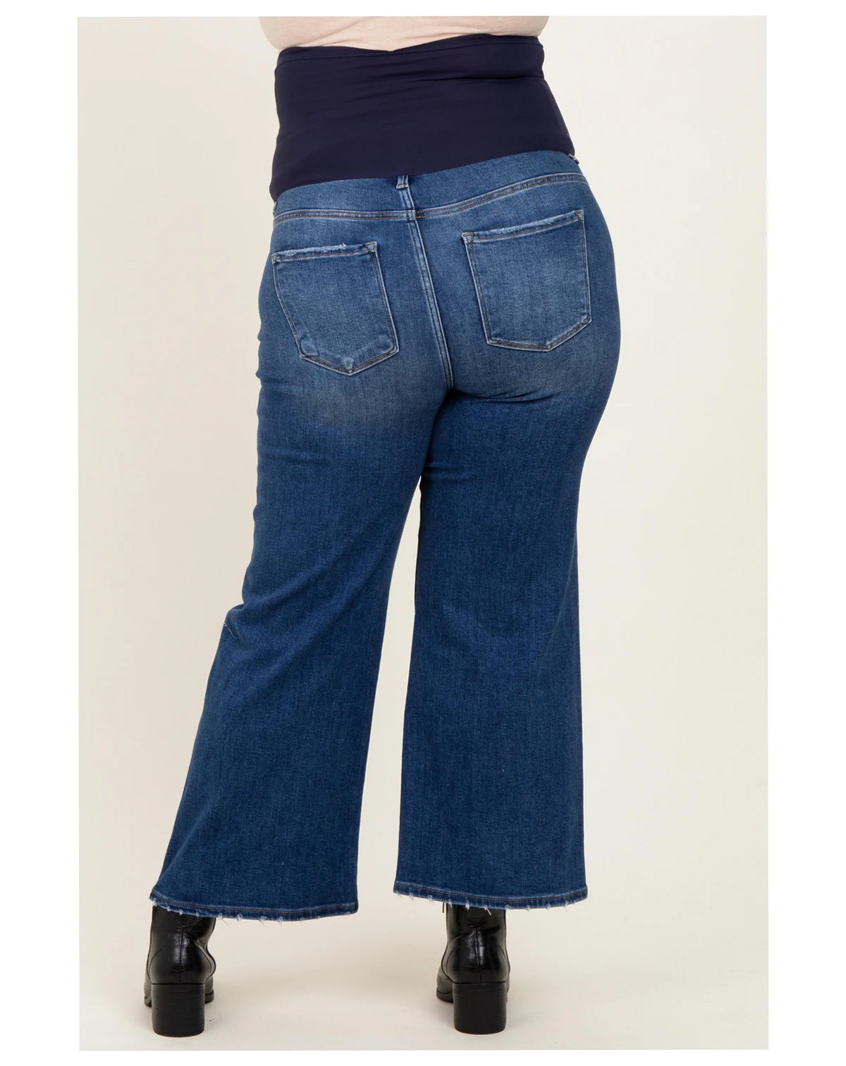 Upgrade your maternity wardrobe with our Blue Distressed Wide Leg Maternity Plus Jeans. Designed for ultimate comfort and modern style, these jeans feature a stretchy, full-panel waistband that grows with you through every trimester. The on-trend wide leg fit and distressed detailing add a chic edge to any outfit, whether you re dressing up or keeping it casual. Crafted in soft, breathable denim, these jeans keep you feeling confident and supported all day. Perfect for moms-to-be who want fashion and function, these jeans are a maternity must-have! Shop now for flattering, feel-good denim you'll love wearing.