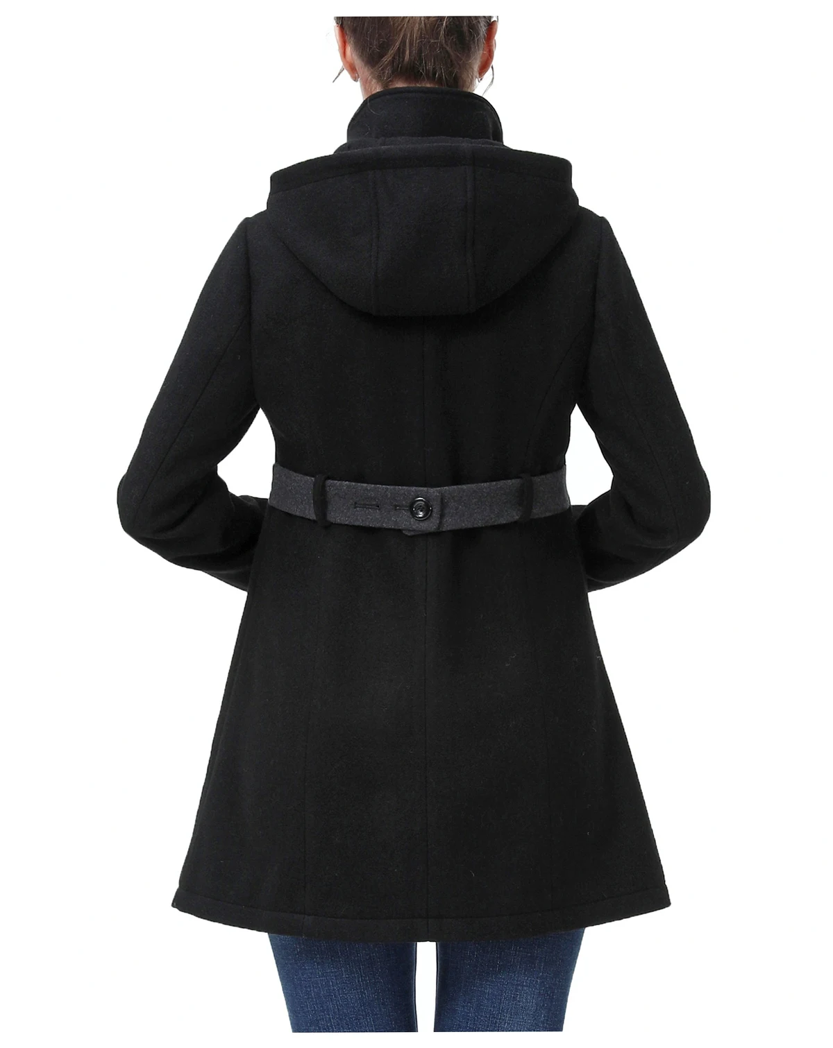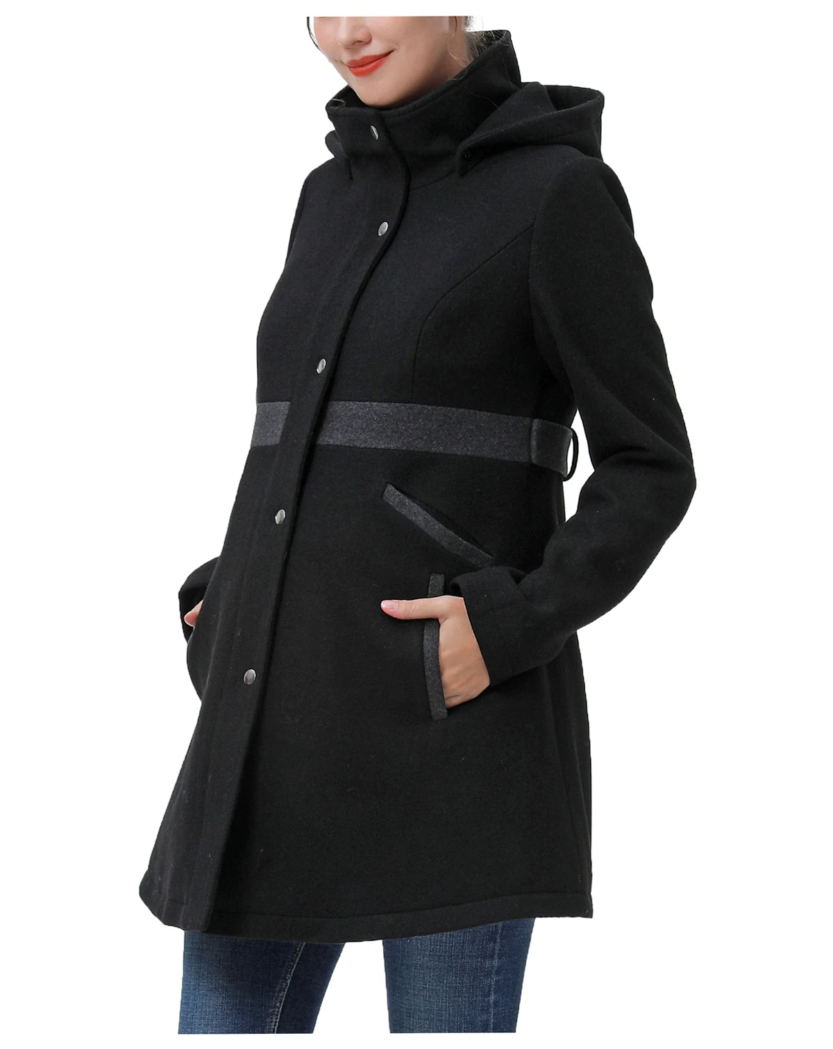 Look cool and classy in color-block. This on-trend asymmetrical zip wool blend coat adds a dash of flare to any attire. Featuring a removable hood, convertible stand collar, and four exterior pockets.