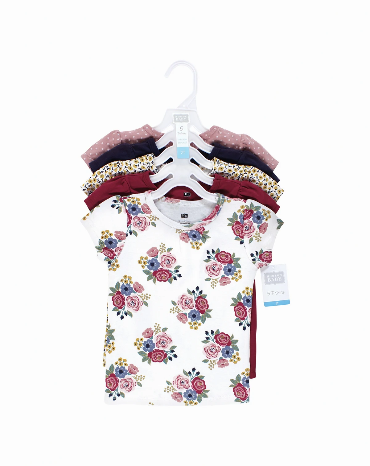 Hudson Baby t-shirts are great everyday tops for your little ones. Featuring fun prints and patterns, our t-shirts are made with comfortable, soft cotton poly fabric that feels wonderful on children's skin. Our sets include five t-shirts so you can mix and match with your child's wardrobe for fun everyday outfits.