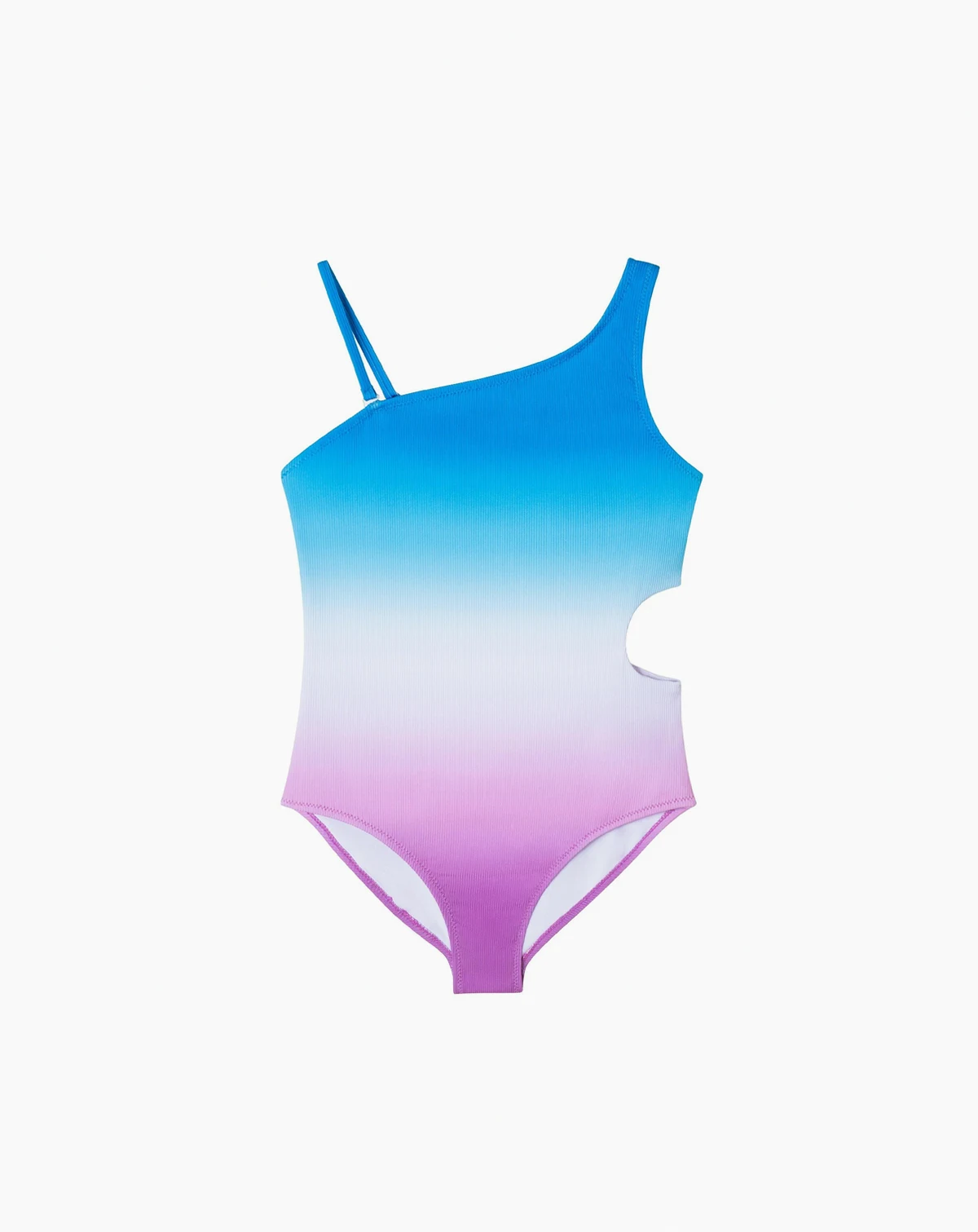 Make waves with bold, colorful style! This one-shoulder ombre swimsuit brings modern flair with a chic cutout and a vibrant gradient design, perfect for fun-filled days in the sun.
