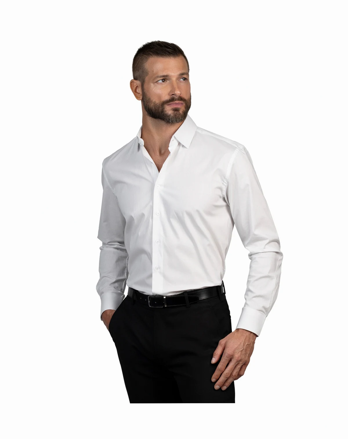 Stay cool and confident in this Vince Camuto dress shirt, designed with moisture-wicking and temperature-control features. Its slim-fit and spread collar lend a crisp, contemporary finish.