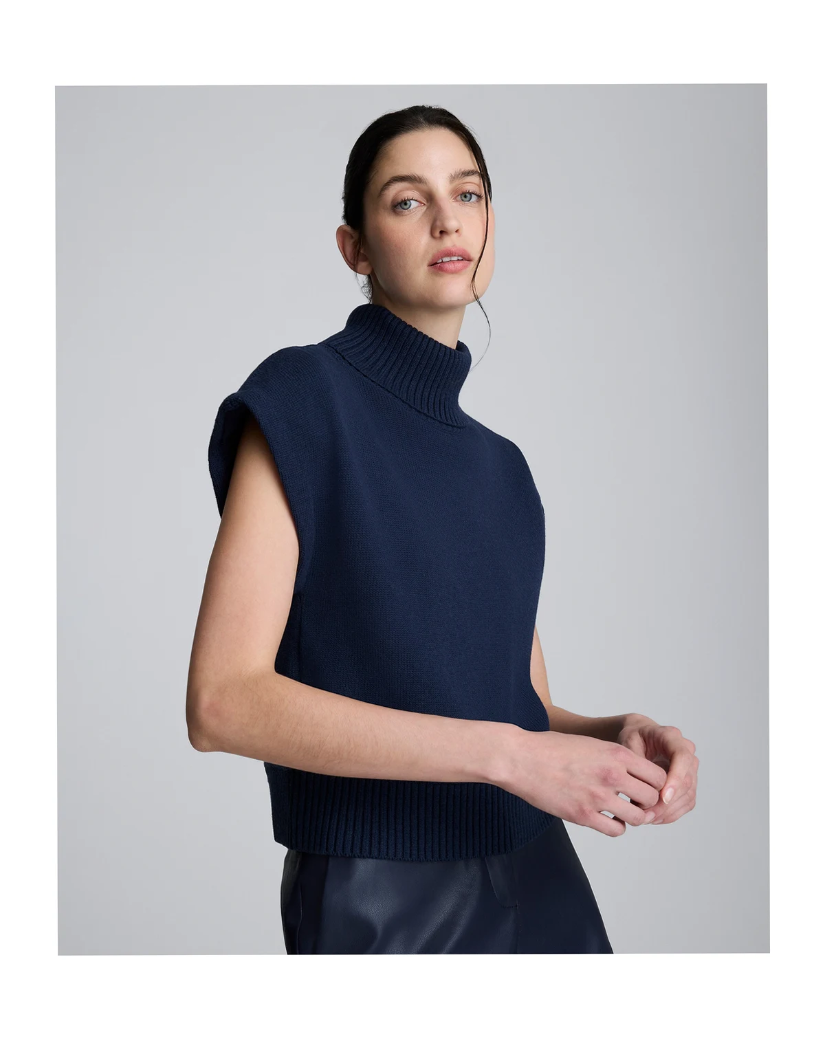 Combine coziness, warmth, and comfort with this turtle neck sweater by Kenneth Cole. The structured shoulder pads create a more defined and balanced silhouette.
