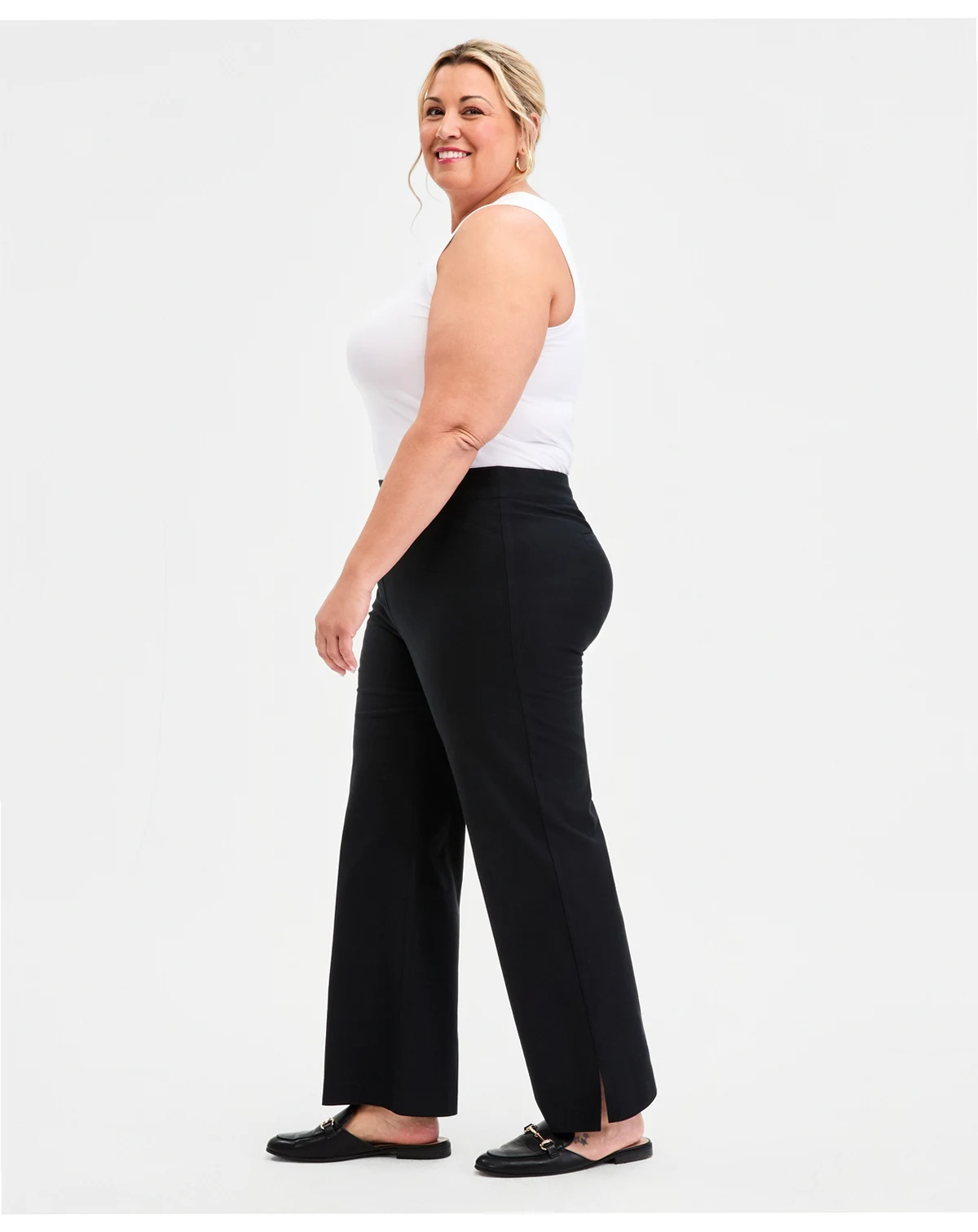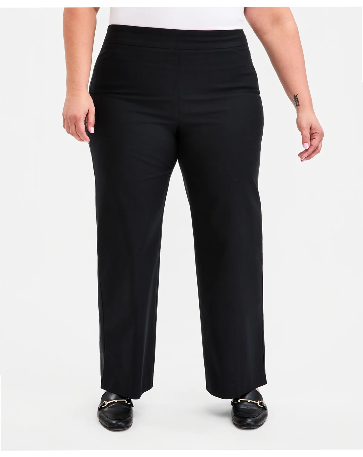 Put together so many sleek looks starting with these plus size pants from JM Collection, a mid-rise pair in a classic wide-leg silhouette.