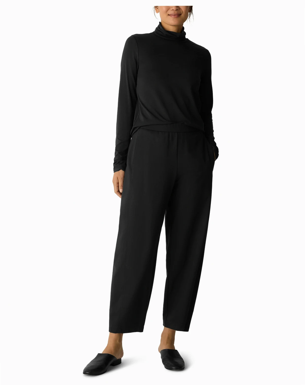 Effortless elegance meets comfort in these ankle-length lantern pants by Eileen Fisher. The pull-on waistband ensures easy dressing and a flexible fit, while the lightweight fabric drapes gracefully. The tapered silhouette and cropped hem highlight your shape, making them versatile for both casual days and refined settings.