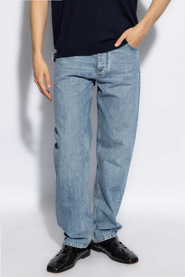 Introducing Bottega Veneta's Straight-Leg Jeans , a masterpiece of casual elegance and undeniable quality. Crafted from 100% cotton, these jeans exude a timeless appeal with their distinctive blue hue, accented by artful fading that lends a subtly aged look. The traditional denim texture, visible in every thread, confirms the exceptional craftsmanship behind this piece.