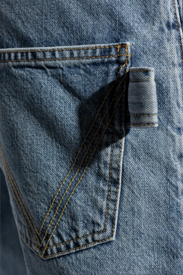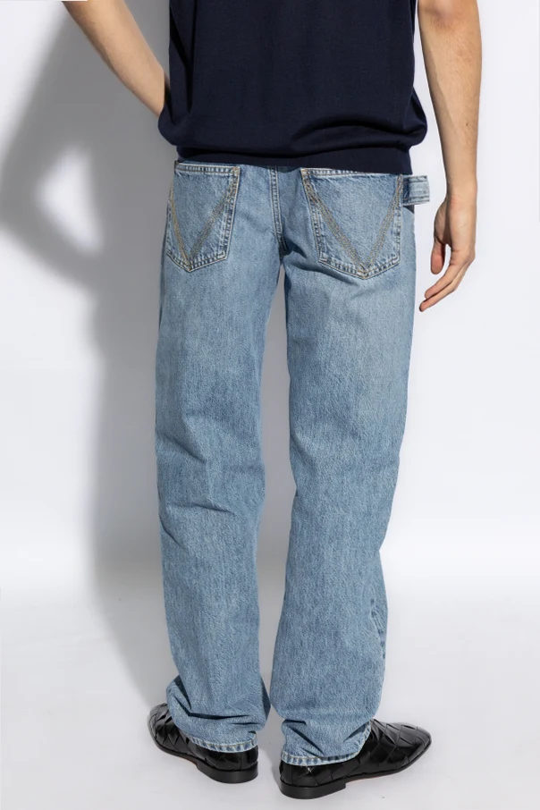 These jeans are not only a testament to Bottega Veneta's commitment to luxury and durability but also a nod to functional fashion with their button closure and classic rear pockets, featuring the iconic arched stitchwork.