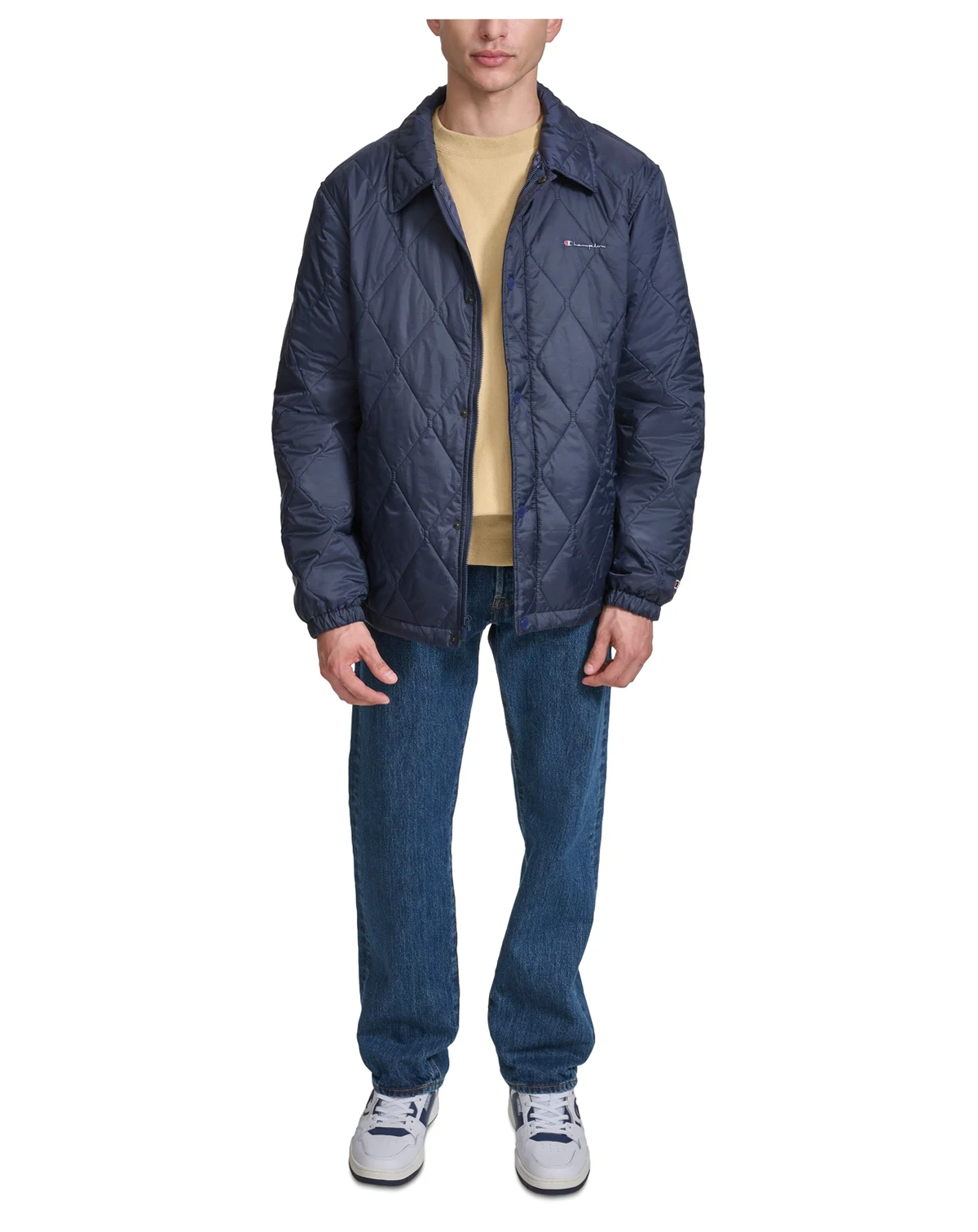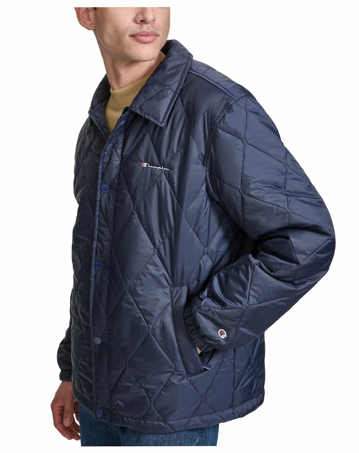 Take a fresh twist on a classic coaches jacket with this new diamond quilted version by Champion. Classic, fun and perfect for Fall.