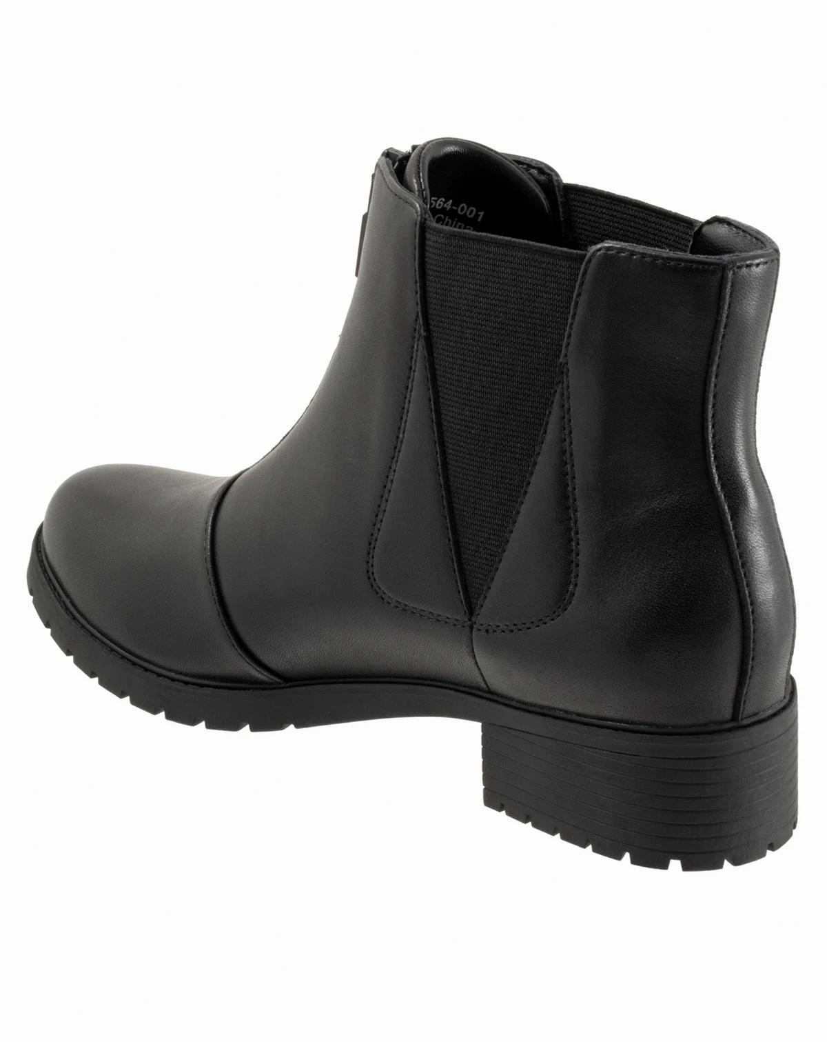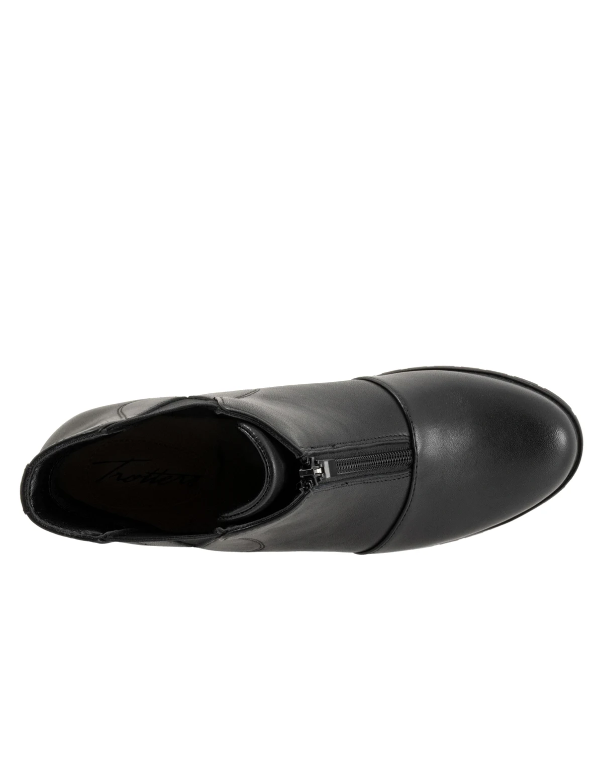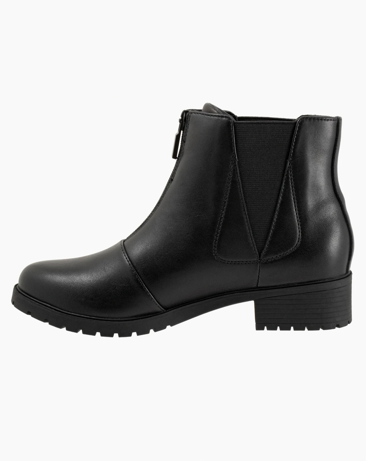 Step into all-day comfort with the Trotters Marni boot, where style meets practicality. Crafted from premium leather, this boot is designed for versatility and ease, featuring a front zipper for quick access and elastic goring for a flexible, snug fit. Its memory foam footbed and removable insert with arch support ensure custom comfort, making it a go-to choice for any occasion. The sleek round toe and modest 1 1/2" heel add a touch of timeless elegance to your look.