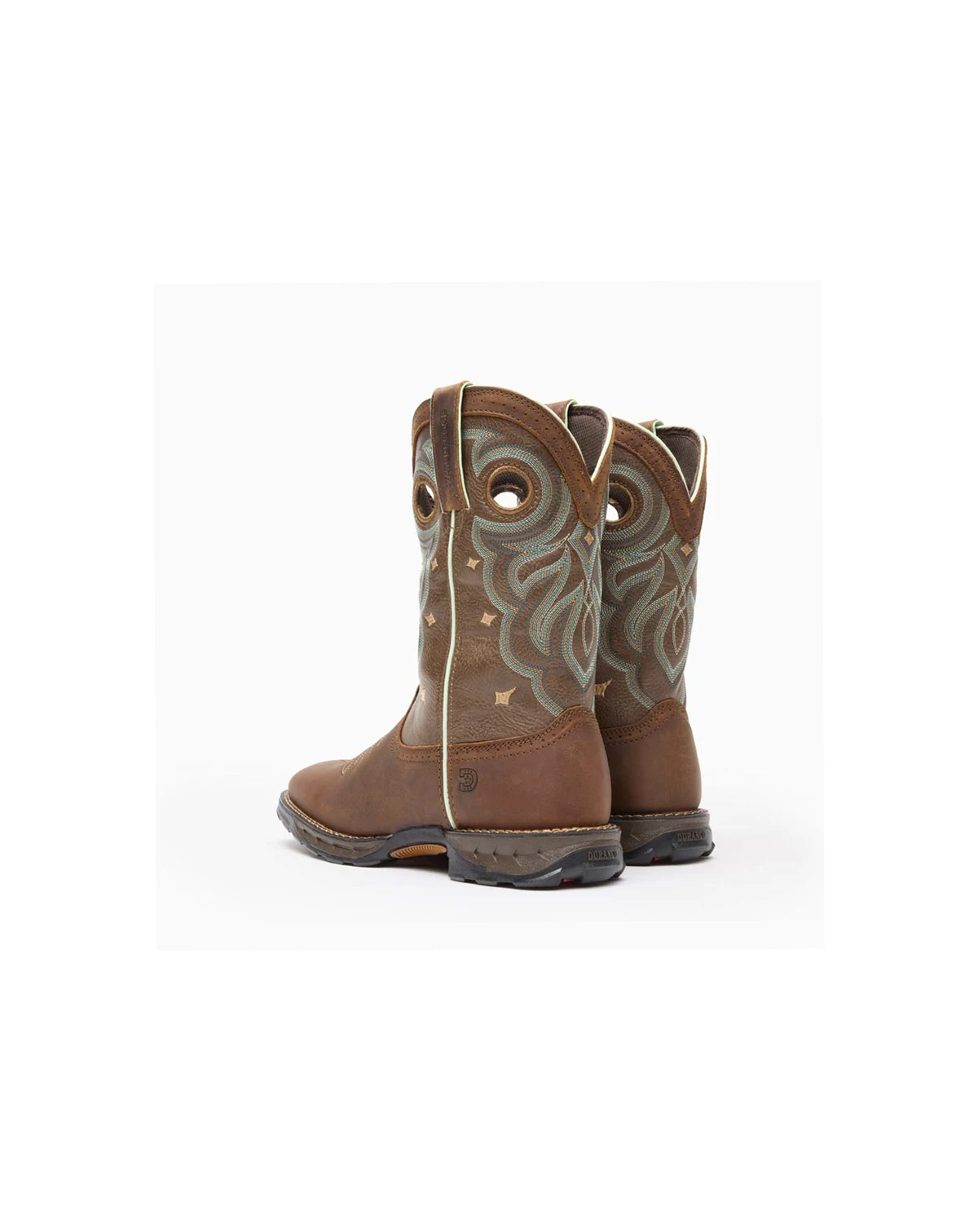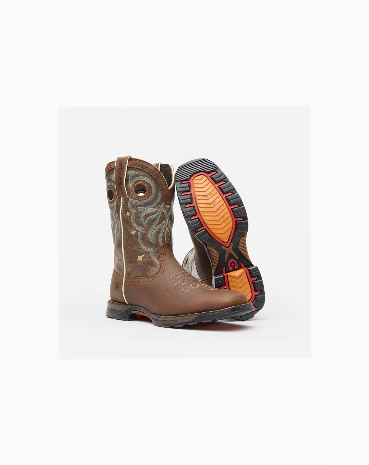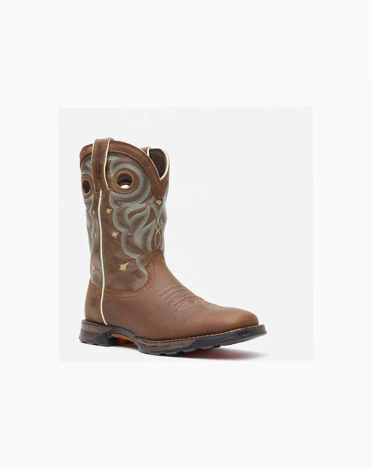 This is the women's 10 Waterproof Western Waterproof Rugged Tan Durango Maverick. This style is full-grain leather with a faux shaft, has a soft mesh lining, waterproof membrane bootie construction and the Durango X-Pand System which is a hidden gore expansion for universal fit and easy on/off. It also includes the Durango X-Treme Comfort Footbed with memory foam for all day comfort and support. This style also features a fiberglass shank which provides lightweight stability, and the rolled shank area allows easy placement in the stirrup. The style is finished off with a slip and oil-resisting rubber outsole, single row sole stitch, 1 1/8 rocker heel and square toe. Pull on all-day work comfort in this women's 10 Western Waterproof Rugged Tan Durango Maverick. Get a pair today!.