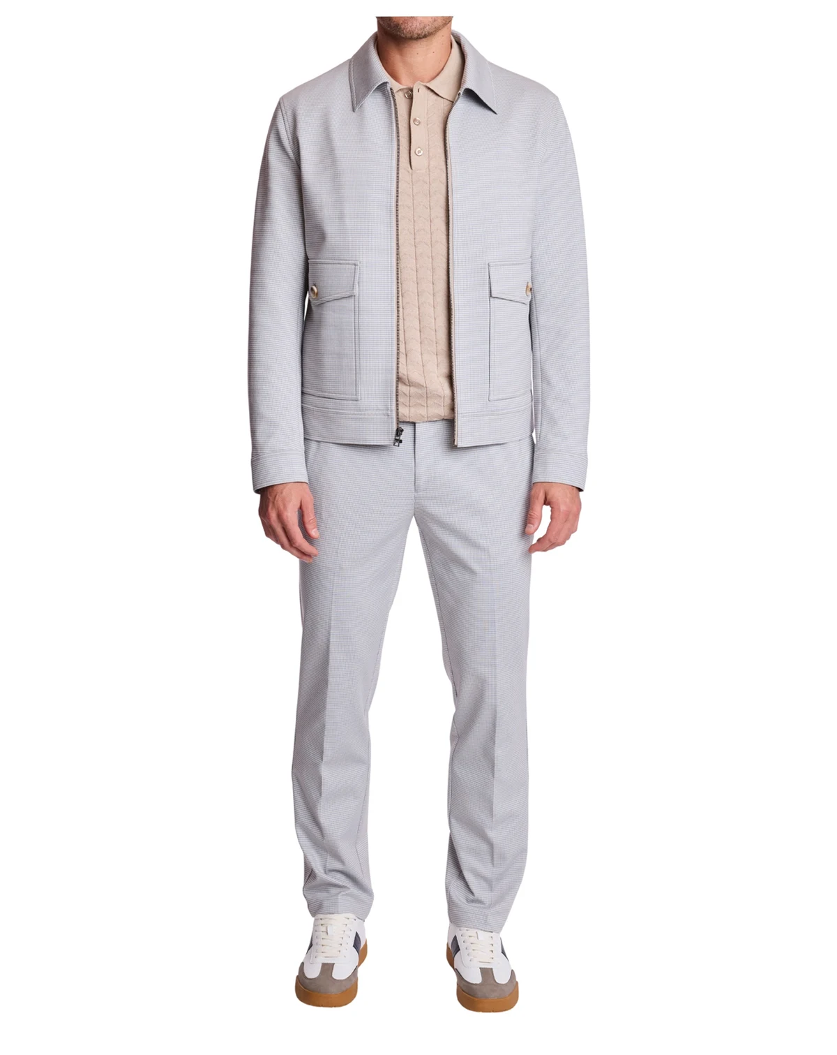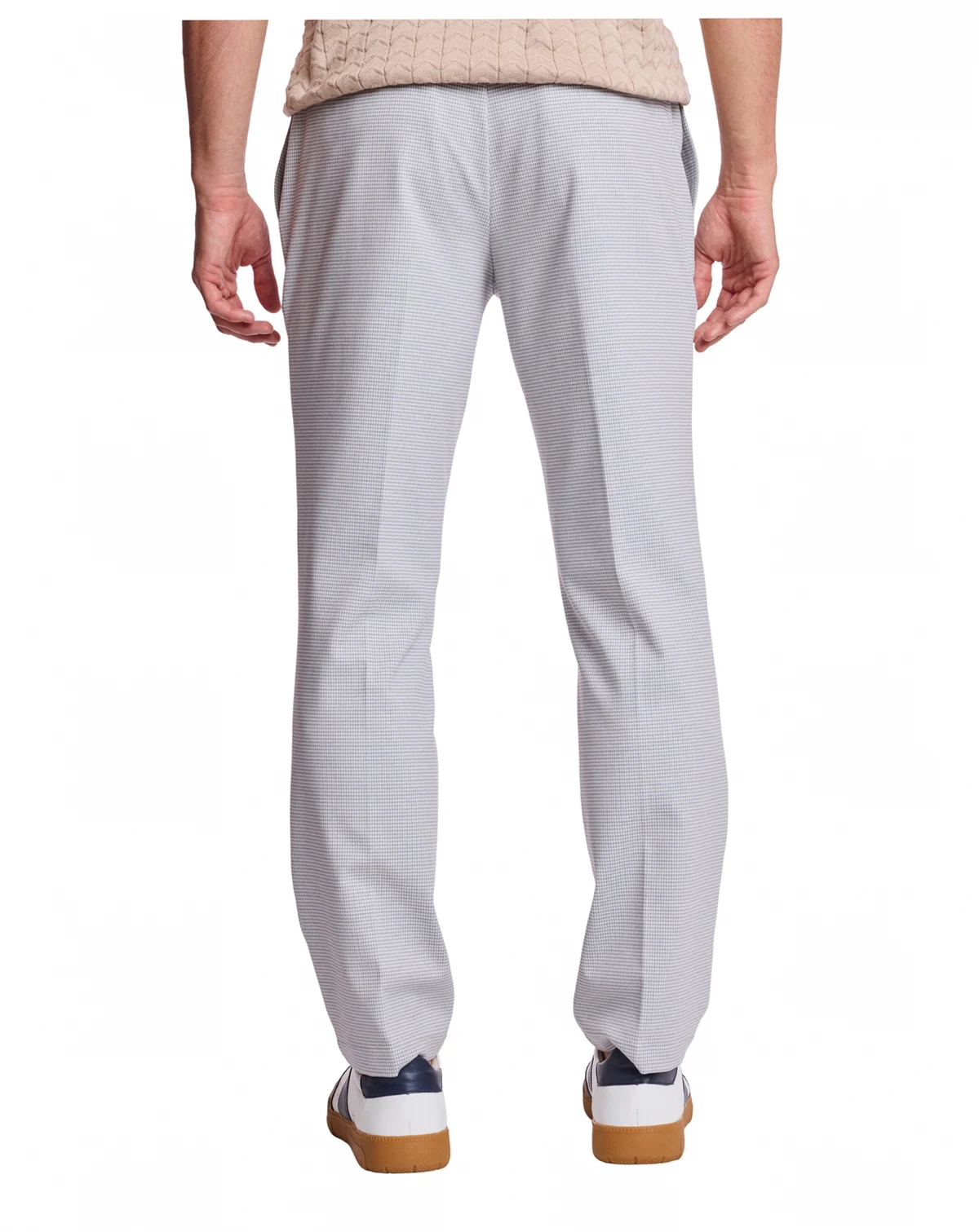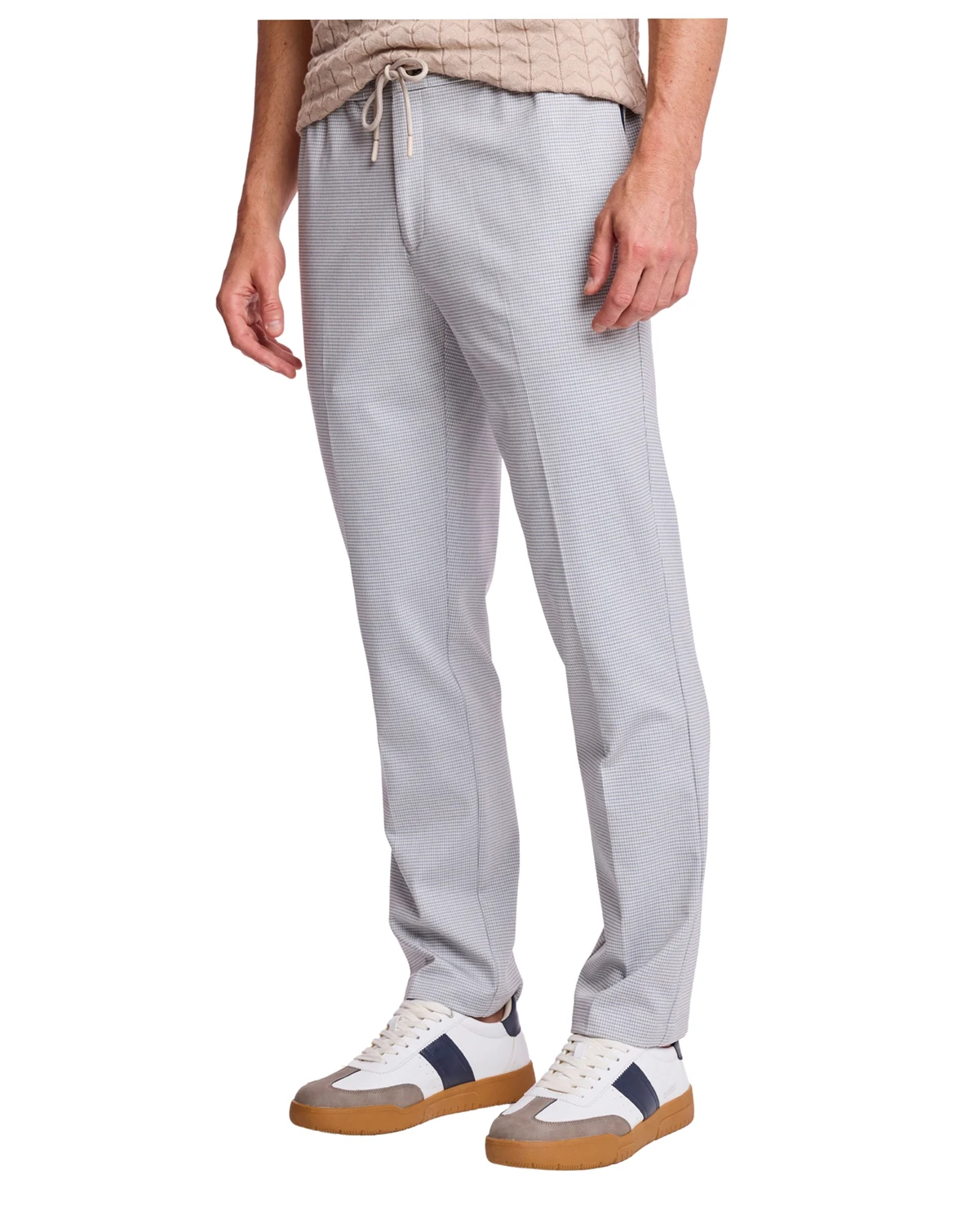 Relaxed tailoring meets refined texture in these Paisley & Gray slim-fit pants, styled with a drawstring waist for adjustable comfort. A houndstooth knit pattern adds dimension and sophisticated appeal to casual looks.