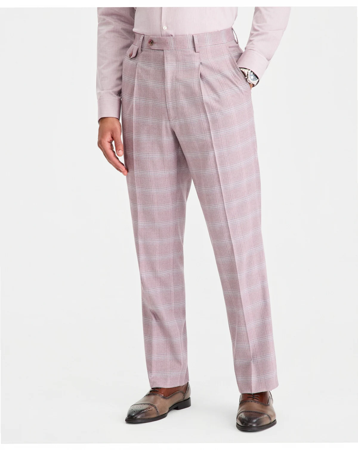 From its light-tone, to its crisp plaid patterning, these suit pants from Tayion Collection exude enlightened sophistication.